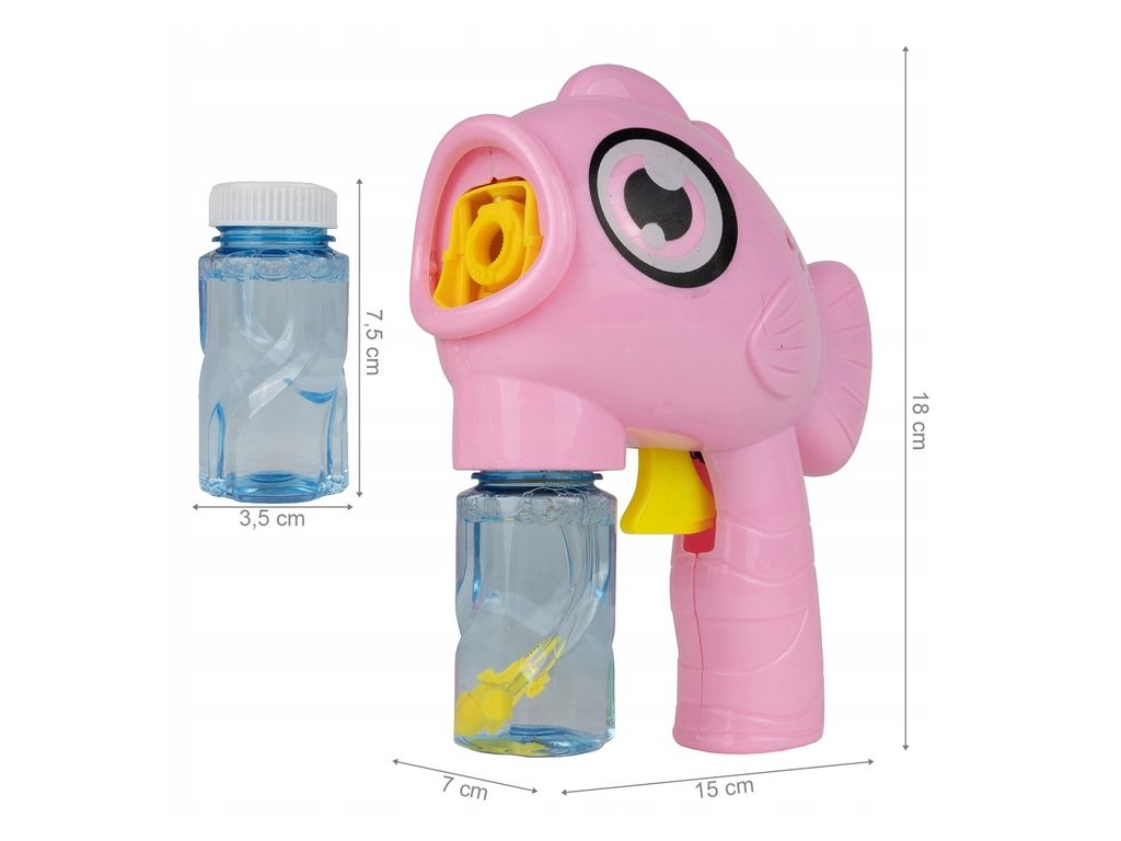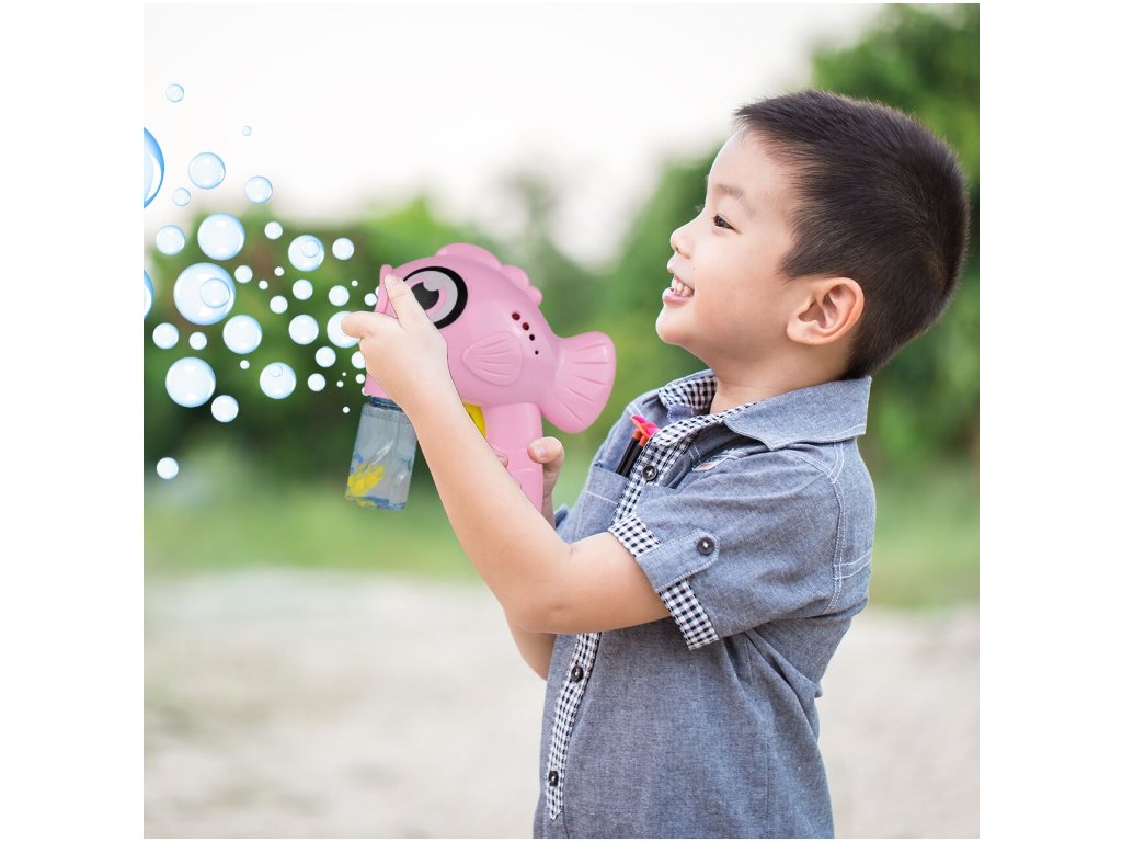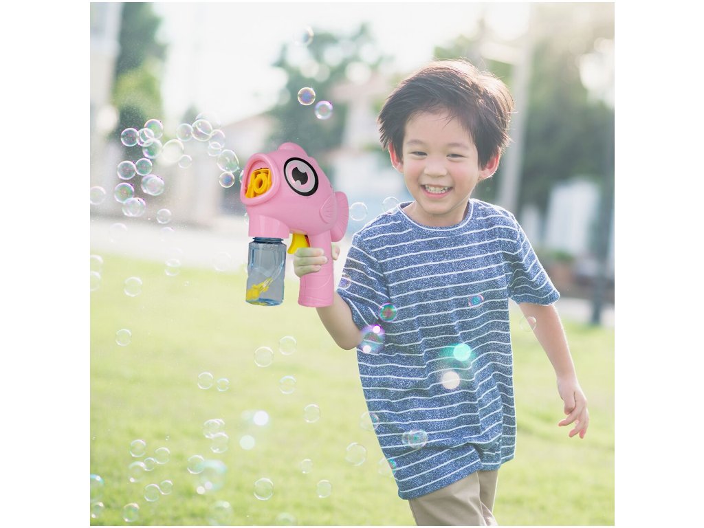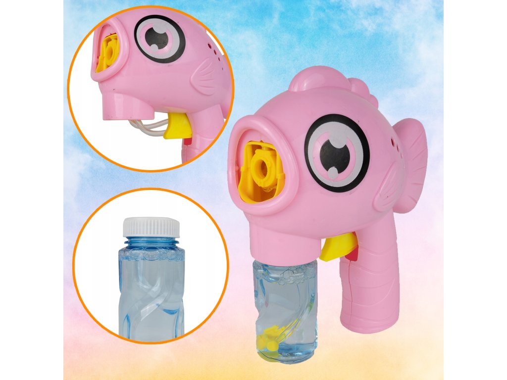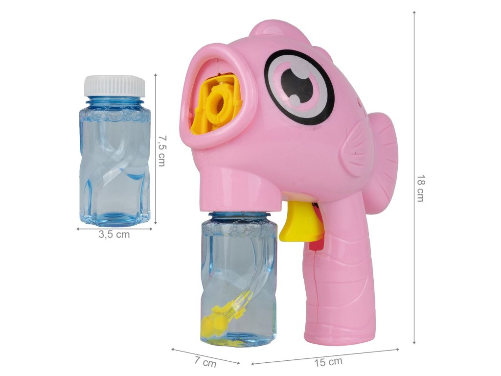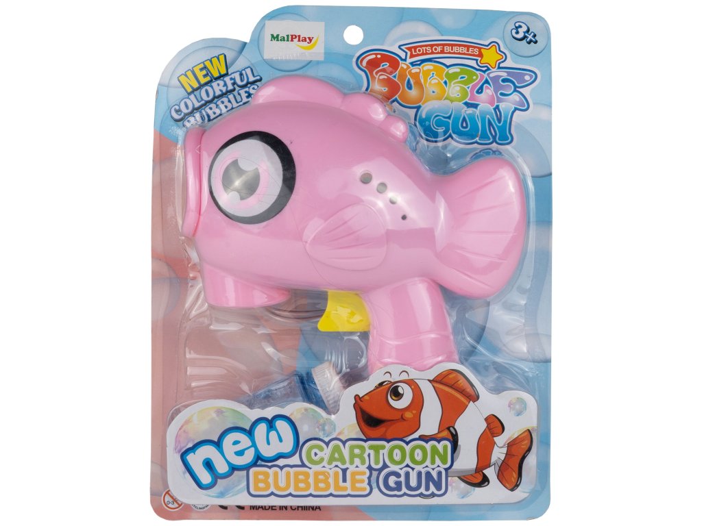 Dětský bublifuk Bubble Fish ve tvaru rybky dokáže vytvořit nekonečné množství bublin. Nejdříve je třeba nasadit lahvičku s mýdlovým roztokem přímo do bublifuku. Zmáčknutím spouště se spouští generátor bublin. Po ukončení hry je třeba lahvičku z bublifuku demontovat a otřít ho suchým hadříkem. Hračka je vyrobena z plastu a je určena pro děti od 36 měsíců věku.