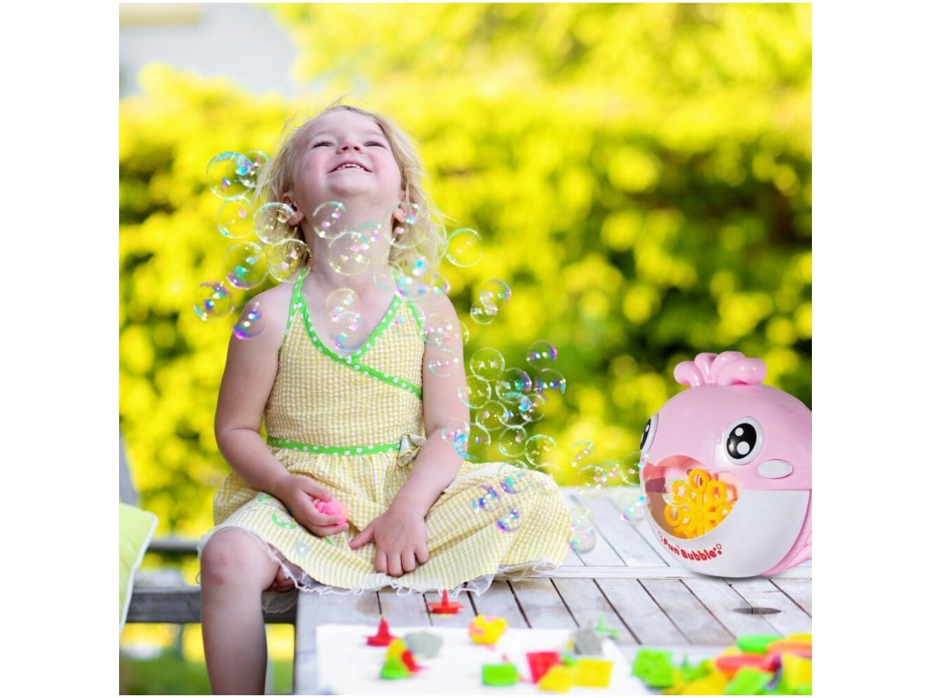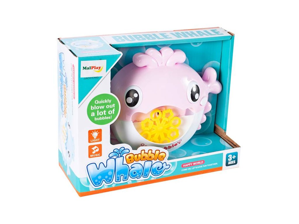 Dětský bublinkovač do vany Bubble Whale ve tvaru rybky dokáže vytvořit nekonečné množství bublin. Bublinkovač se umístí na plochý okraj vany, přilehlé místo nebo ho lze zavěsit. Poté je třeba vlít vodu s mýdlem do otvoru v ústech hračky, po skončení hry je třeba přebytečnou tekutinu vylít. Zmáčknutím tlačítka se spustí generátor bublin. Ve vybavení je také melodie a svítící dioda. Hračka je vyrobena z plastu a je určena pro děti od 36 měsíců věku.