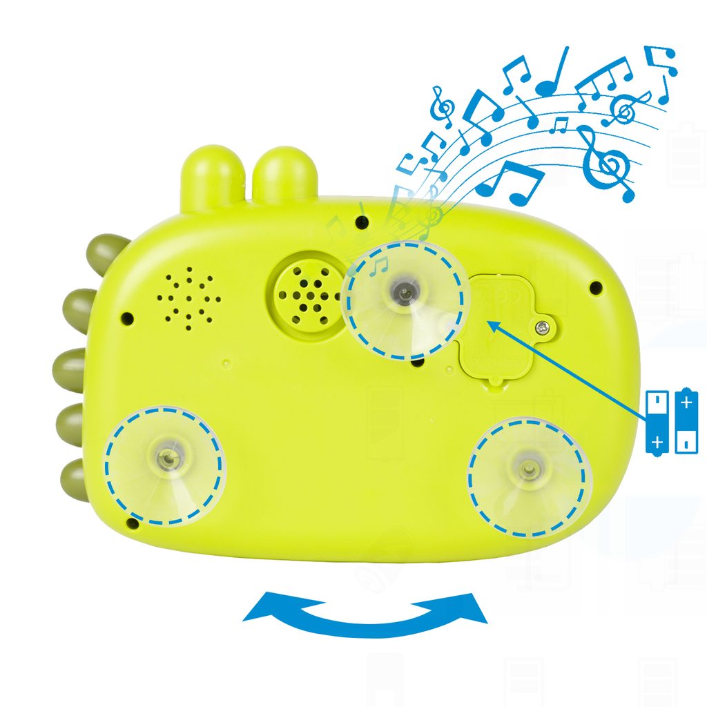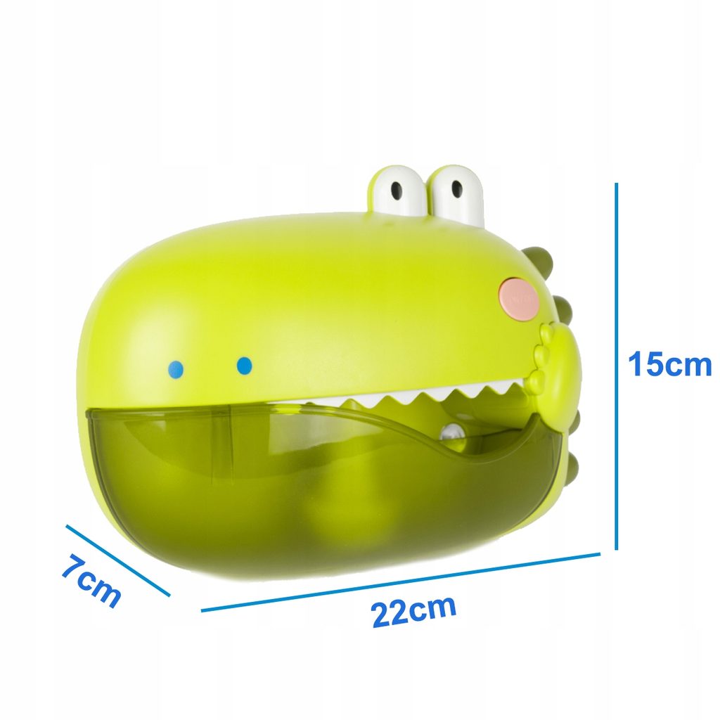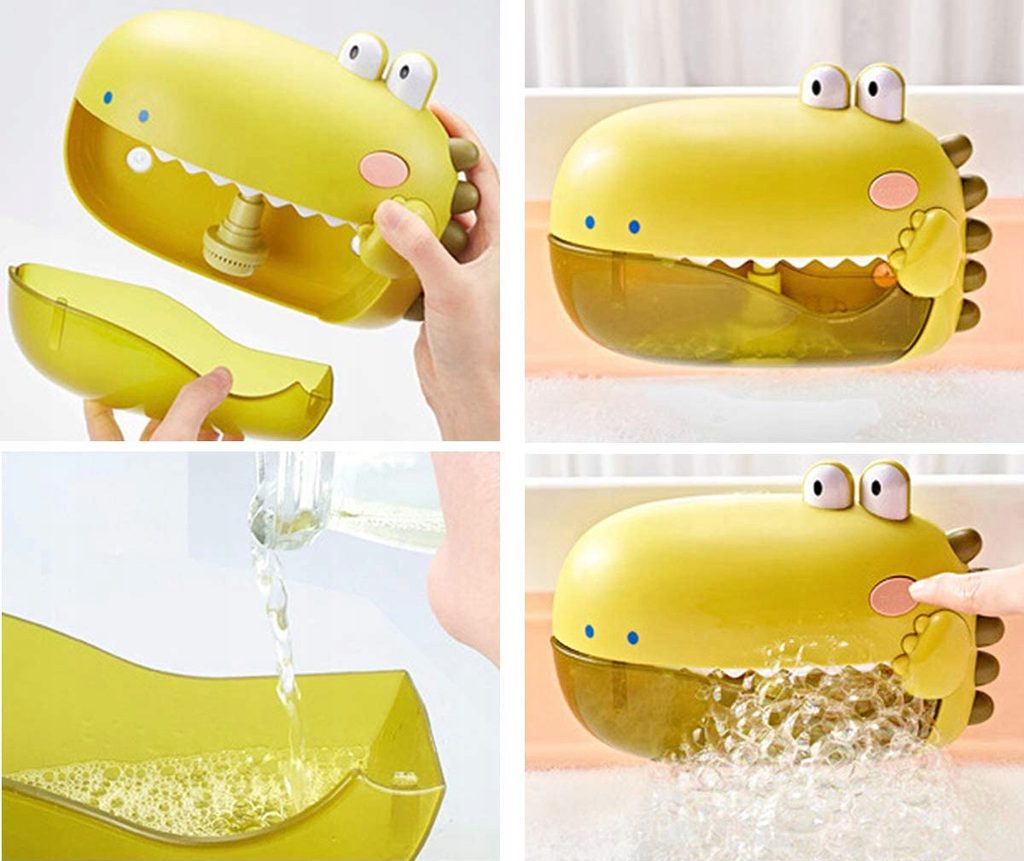 Dětský bublinkovač do vany Bubble Dino ve tvaru zeleného dinosaura dokáže vytvořit nekonečné množství bublin. V zadní části jsou umístěny přísavky pomocí kterých se bublinkovač zavěsí nad vanu. Poté je třeba dovnitř vlít vodu s mýdlem, po skončení hry je třeba přebytečnou tekutinu vylít. Zmáčknutím tlačítka se spustí generátor bublin a melodie. Lze zvolit režim s melodií nebo bez nich. Hračka je vyrobena z plastu a je určena pro děti od 36 měsíců věku.