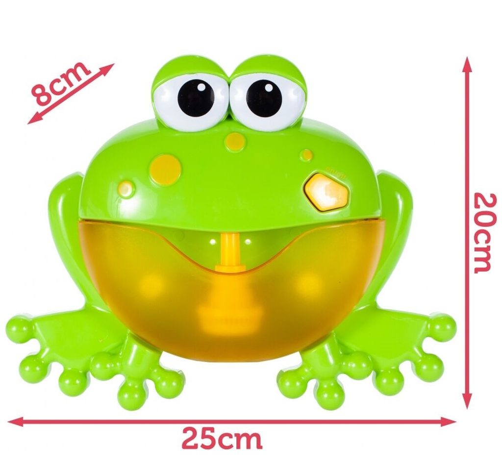 Dětský bublinkovač do vany Bubble Frog ve tvaru zelené žabky dokáže vytvořit nekonečné množství bublin. V zadní části jsou umístěny tři přísavky pro snadné uchycení nad vanu. Poté je třeba dovnitř vlít vodu s mýdlem, po skončení hry je třeba přebytečnou tekutinu vylít. Zmáčknutím tlačítka se spustí generátor bublin a melodie. Hračka je vyrobena z plastu a je určena pro děti od 18 měsíců věku.