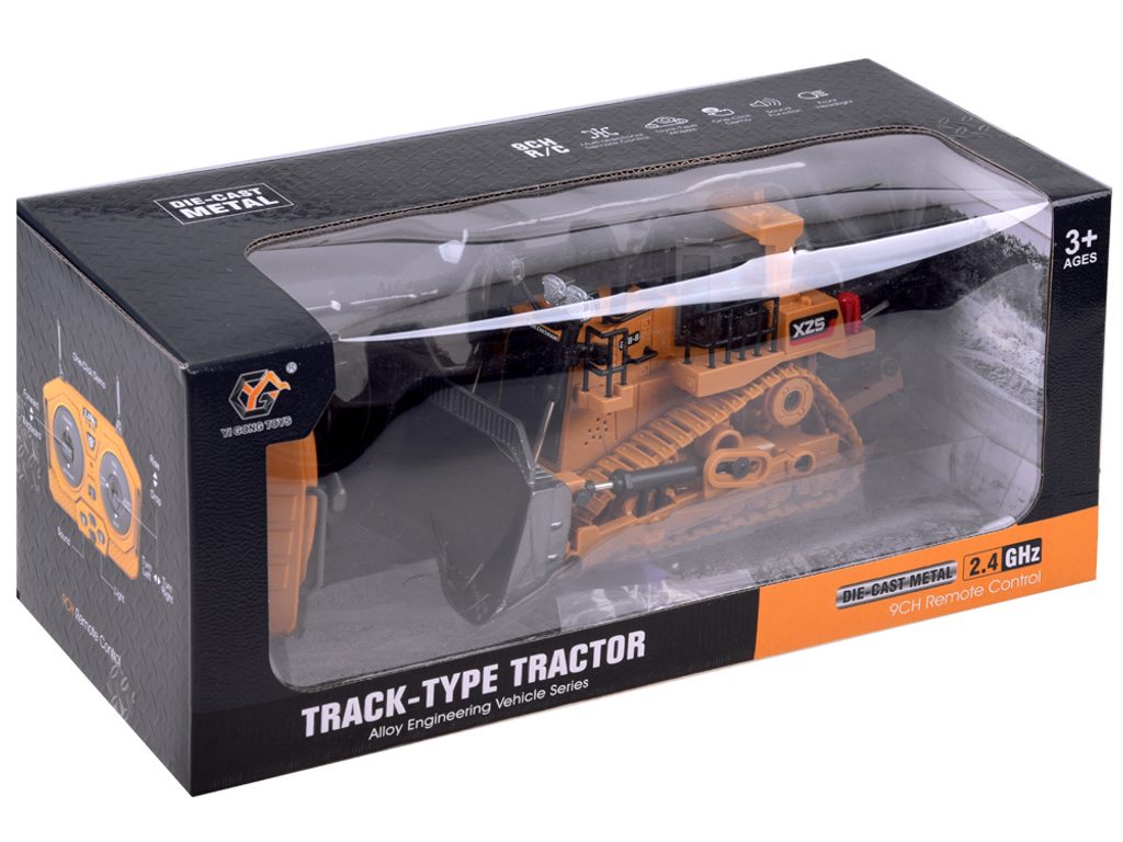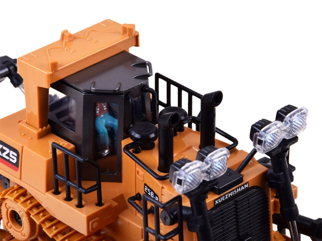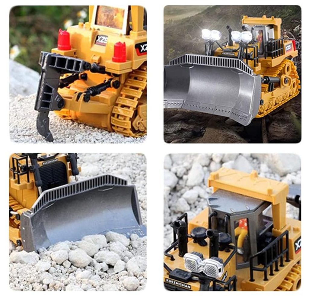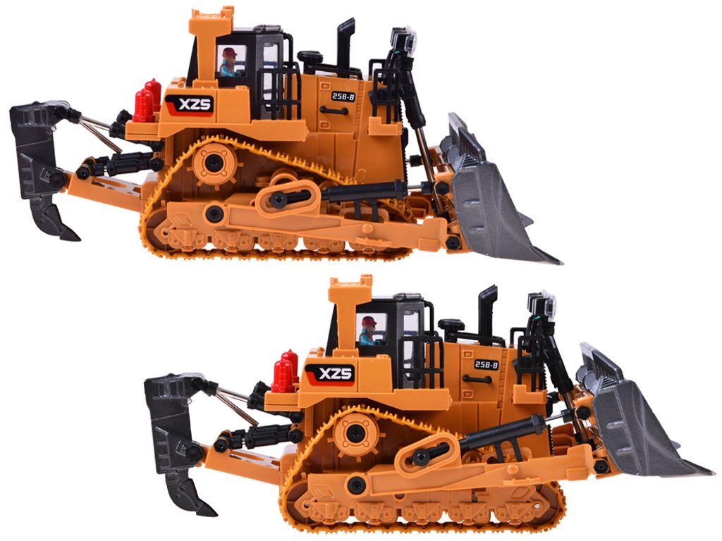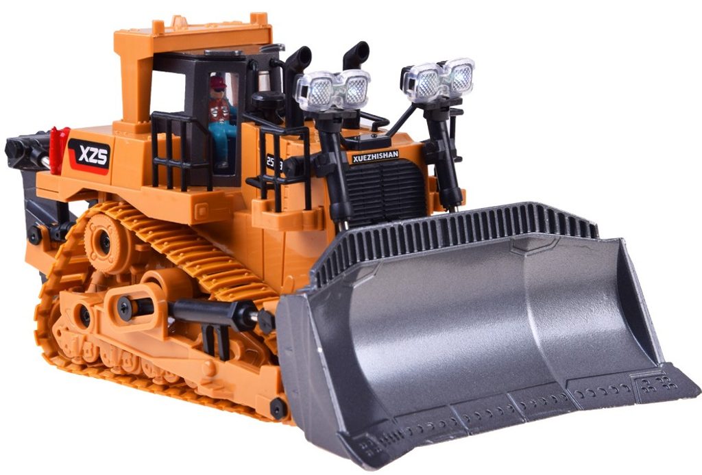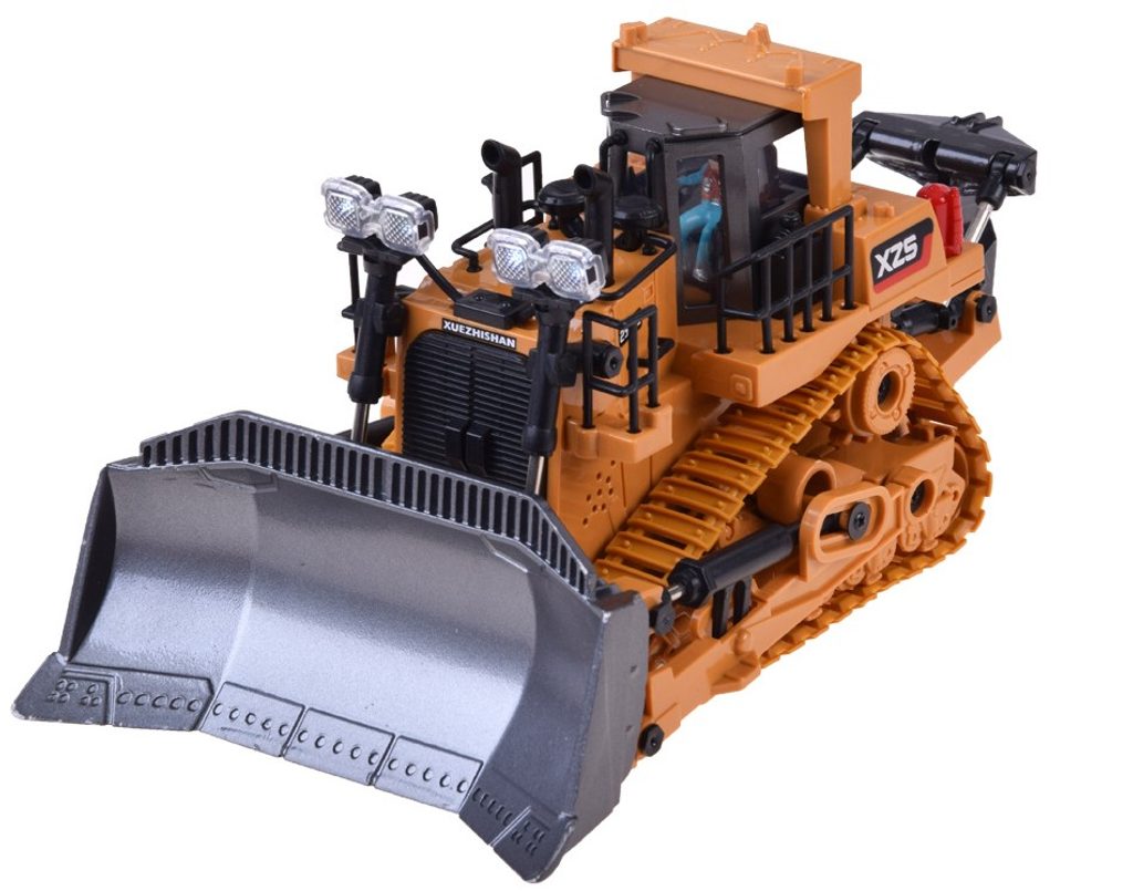 Buldozer XZS Machine s dálkovým ovládáním 2,4GHz je vybavený gumovými pásy, umožnuje jízdu dopředu a dozadu, zatáčí doprava a doleva. Kovovou přední radlici lze zvedata spouštět. Ve výbavě je také přední osvětlení a zvukové efekty. Ovládání je velmi jednoduché pomocí ovladače se 2 páčkami a tlačítky. Dálkové ovládání je napájeno bateriemi, které nejsou součástí balení. Buldozer je vyrobený z plastu a má certifikaci CE.