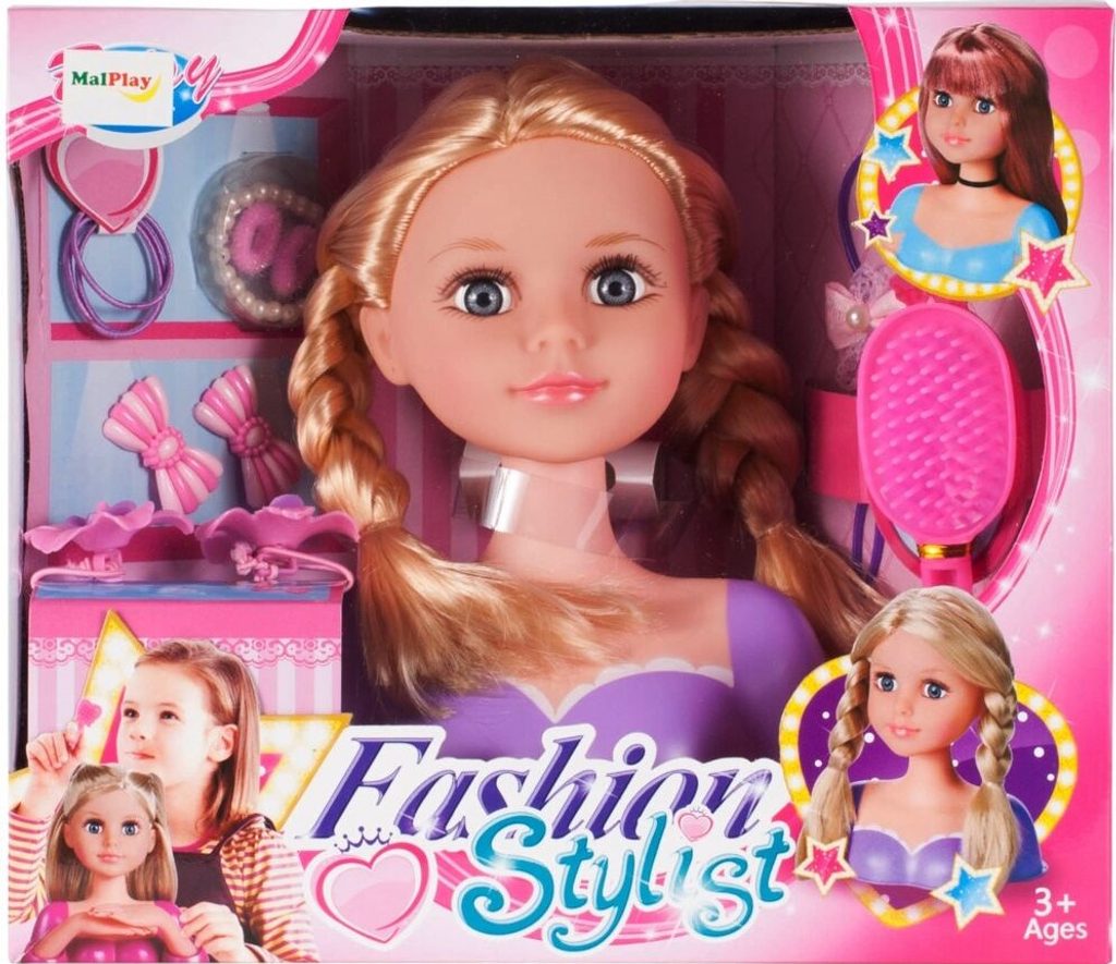 Česací hlava s příslušenstvím Fashion Stylist udělá ohromnou radost každé holčičce a ta si tak může otevřít skutečný kadeřnický salon. Součástí sady je kromě hlavy panenky s blond vlásky také hřeben, náramek, ozdobné gumičky a sponky. Hračka je určena pro děti od 36 měsíců věku.