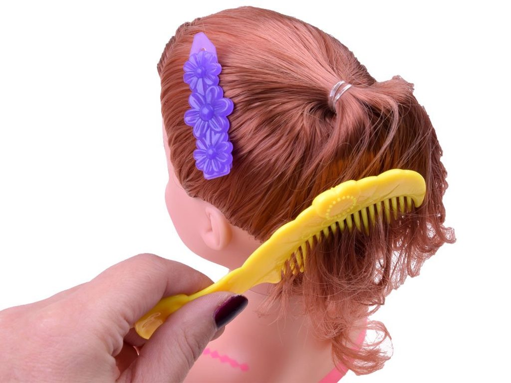 Česací hlava s příslušenstvím udělá ohromnou radost každé holčičce a ta si tak může otevřít skutečný kadeřnický salon. Součástí sady je kromě hlavy panenky s hnědými vlásky také hřeben, vlásenka, ozdobná gumička a sponky. Hračka je určena pro děti od 36 měsíců věku.