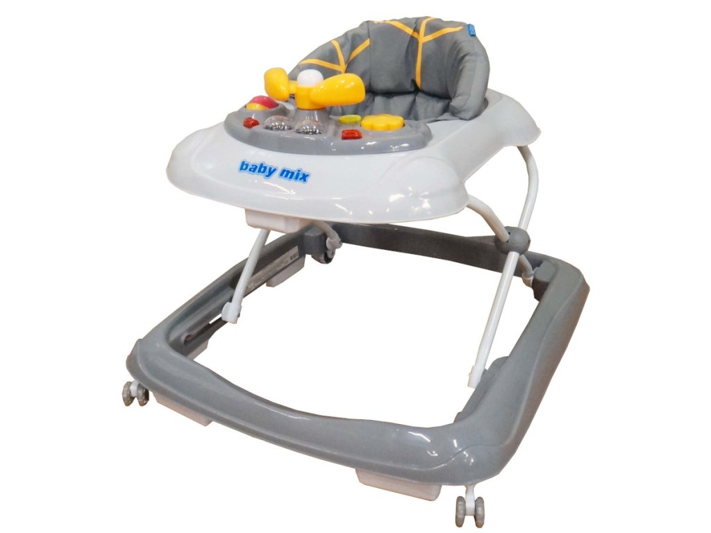 Dětské chodítko Baby Mix s interaktivním hracím panelem je určeno pro děti od 6 měsíců věku. Sedátko je ergonomicky tvarované a zajišťuje tak správné držení páteře. Potah lze sejmout a prát v pračce. V přední části je umístěný interaktivní hrací panel s otočným volantem, klaksonem, melodiemi a světýlky. Přední silikonová kolečka chodítka jsou otočná a jsou vyrobeny z materiálu, který nepoškrábe podlahu. Splňuje veškeré normy které jsou vyžadovány pro dětské chodítka.