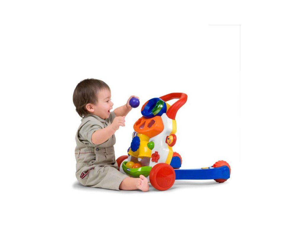 Chodítko Activity 2v1 je skvělá hračka, která bude věrným průvodcem Vašeho dítěte při prvních krůčcích. Je ideálním pomocníkem dítěte na koordinaci pohybů, na stabilizaci postoje a při trénování pohybových a uchopovacích schopností. Chicco chodítko je velmi stabilní, navíc držátko napomáhá dítěti, které stojí mezi dvěma stabilizátory (ramena s kolečky) se pohodlně držet hračky. Chodítko je pro dítě motivační, při chůzi se automaticky aktivuje melodie. Pokud nechcete aby Vás melodie rušila, můžete ji ztlumit nebo úplně vypnout. Až 7 různých aktivit zabaví Vaše dítě na dlouhou dobu, obzvlášť největší zábavou pro Vaše dítě bude, že může přiložené míčky vkládat do horního modrého otvoru, po vložení míčku do otvoru se aktivuje melodie a světelné efekty.