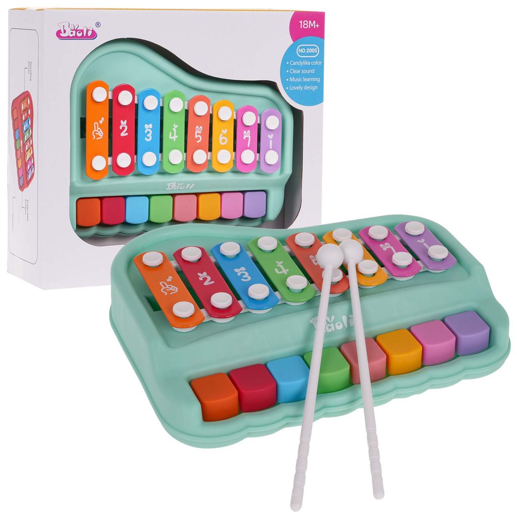 Dětské cimbálky Melody Piano jsou určeny pro ty nejmenší děti. V horní části je umístěno 8 barevných destiček s vyobrazenými číslicemi na které lze hrát pomocí dvou přiložených paliček. V přední části je potom umístěno 8 barevných klávesnic. Cimbálky jsou ideální hračkou pro rozvoj manuálních schopností, zraku, logického myšlení, rozpoznávání barev a číslic. Hračka je určena pro děti od 18 měsíců věku.