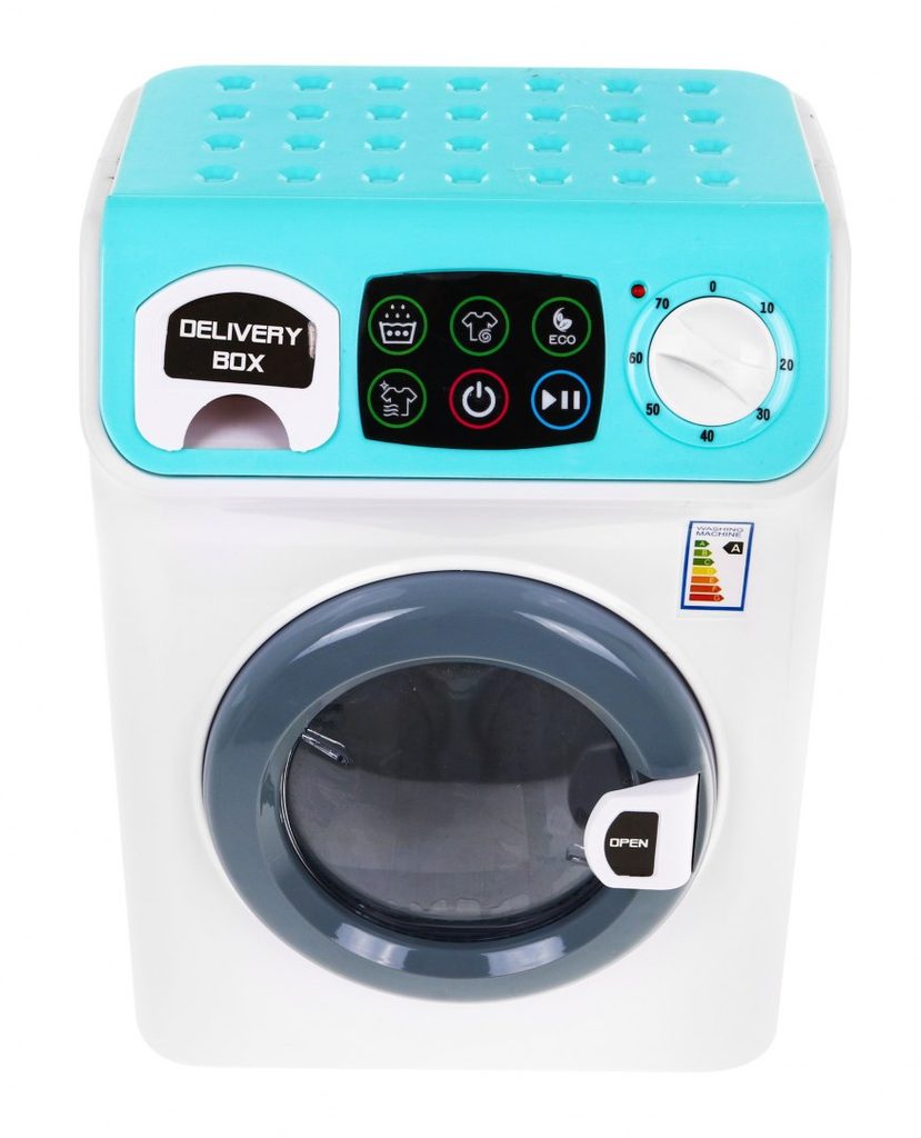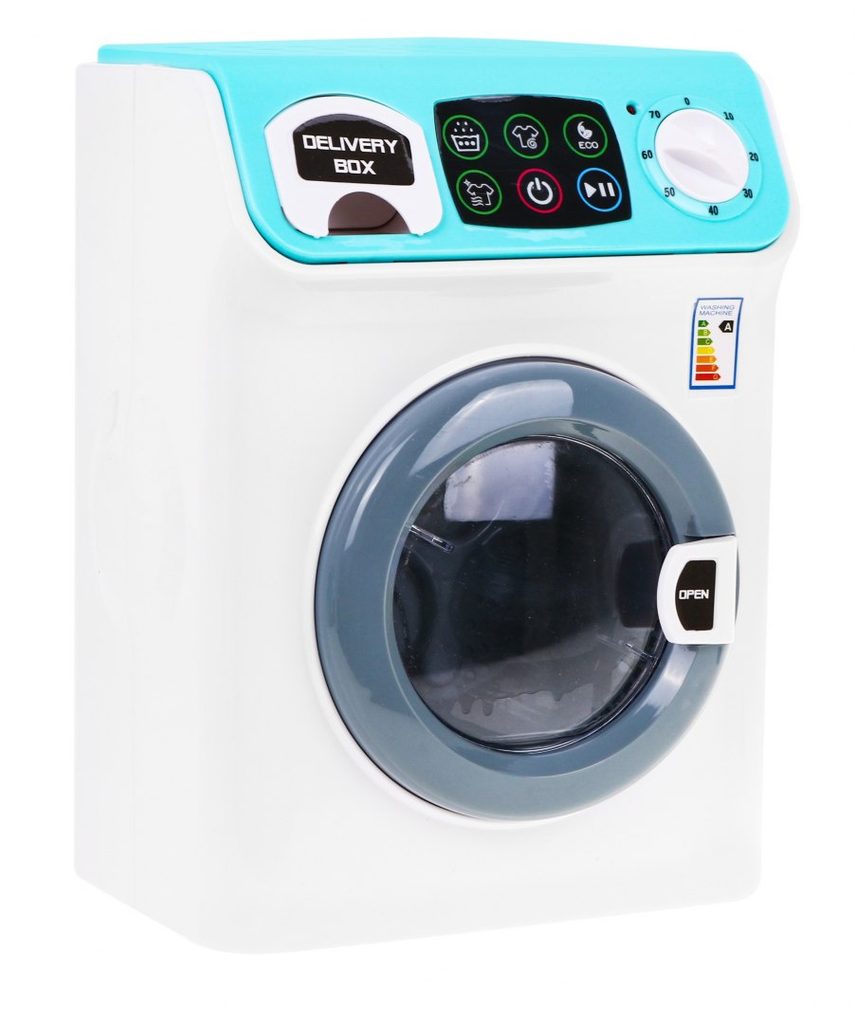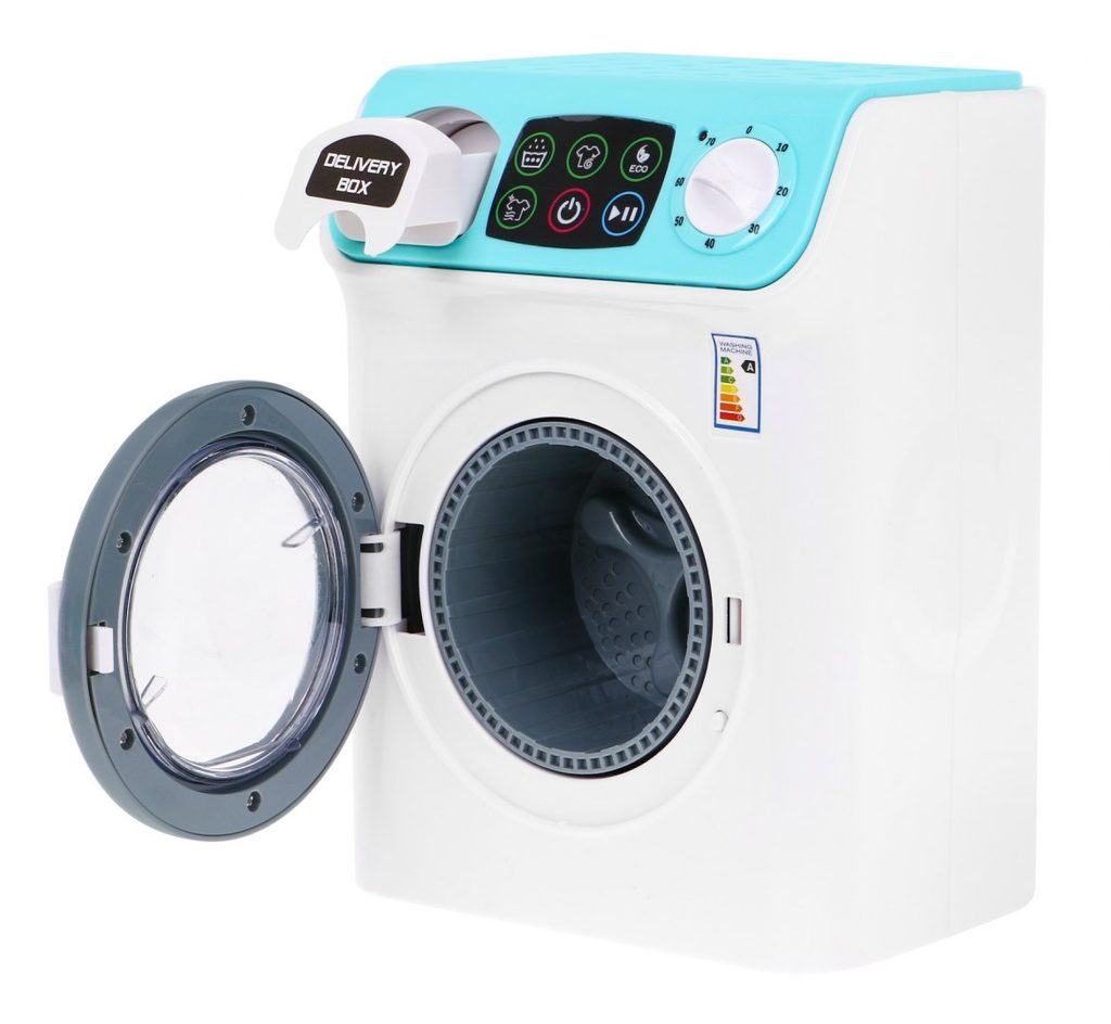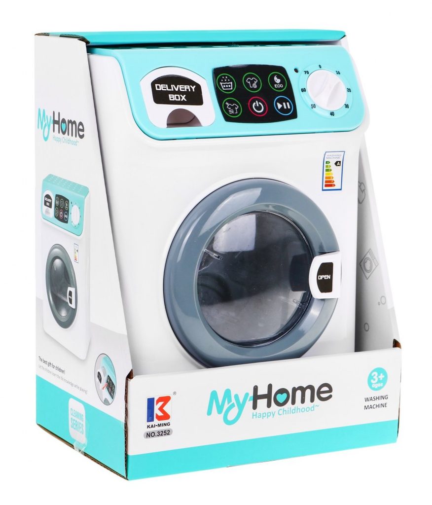 Dětská pračka My Home přemění Vaše dítě v opravdovou paní nebo pána domu a naučí ho pečovat o čistotu. Je vybavena otočným bubnem, přihrádkou na aviváž, dotykovým panelem pro volbu pracího programu a kolečko pro nastavení "teploty". Celé praní doprovází zvuky a svítí červená dioda umístěná na přední straně. Pračka je napájena bateriemi, které nejsou součástí balení. Hračka je určena pro děti od 36 měsíců věku.