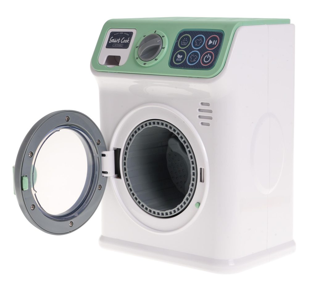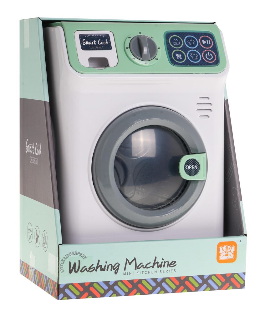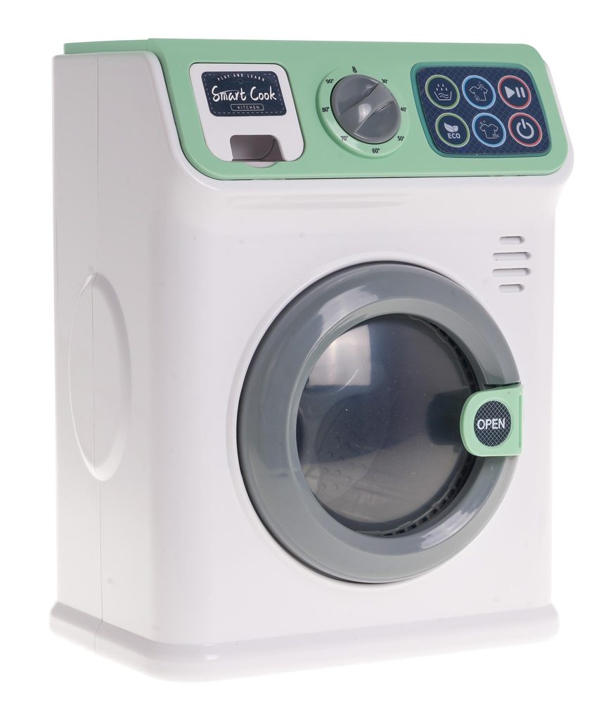 Dětská pračka Smart Wash přemění Vaše dítě v opravdovou paní nebo pána domu a naučí ho pečovat o čistotu. Je vybavena otočným bubnem, přihrádkou na aviváž, dotykovým panelem pro volbu pracího programu a kolečko pro nastavení "teploty". Celé praní doprovází zvuky a svítí červená dioda umístěná na přední straně. Pračka je napájena bateriemi, které nejsou součástí balení. Hračka je určena pro děti od 36 měsíců věku.