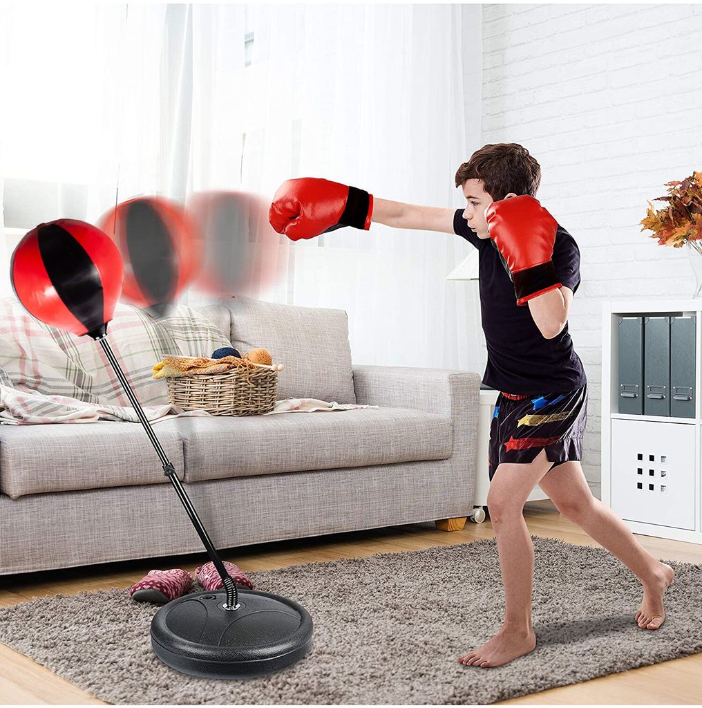 Dětská boxovací hruška je ideální hračkou pro děti které rádi tráví čas aktivně. Podstavec lze naplnit vodiu, hruška je tak stabilnější. Výška lze nastavit dle věku dítěte od 90 do 125 cm. Součástí jsou také boxovací rukavice, pumpička a montážní sada. Hračka je určena pro děti od 6 let věku.