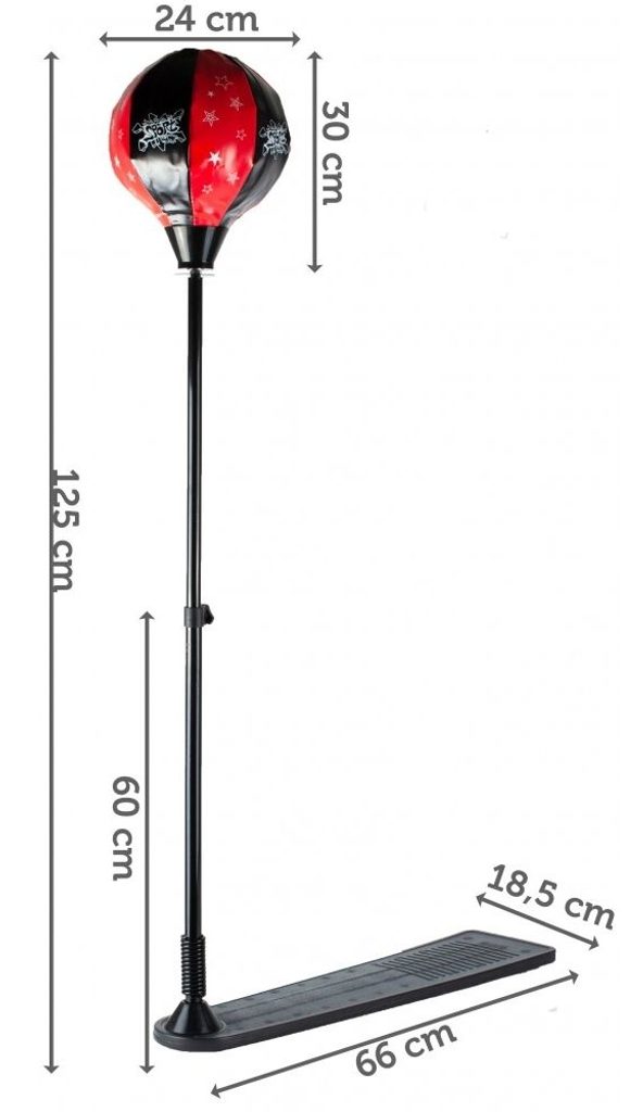 Dětská boxovací hruška je ideální hračkou pro děti které rádi tráví čas aktivně. Podstavec lze naplnit vodiu, hruška je tak stabilnější. Výška lze nastavit dle věku dítěte od 90 do 125 cm. Součástí jsou také boxovací rukavice a pumpička. Hračka je určena pro děti od 6 let věku.