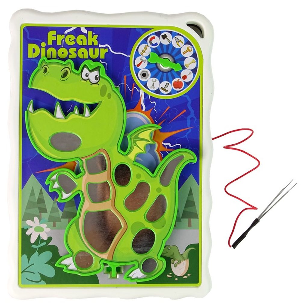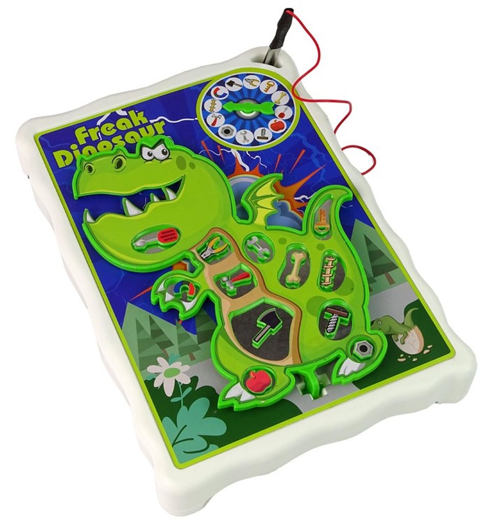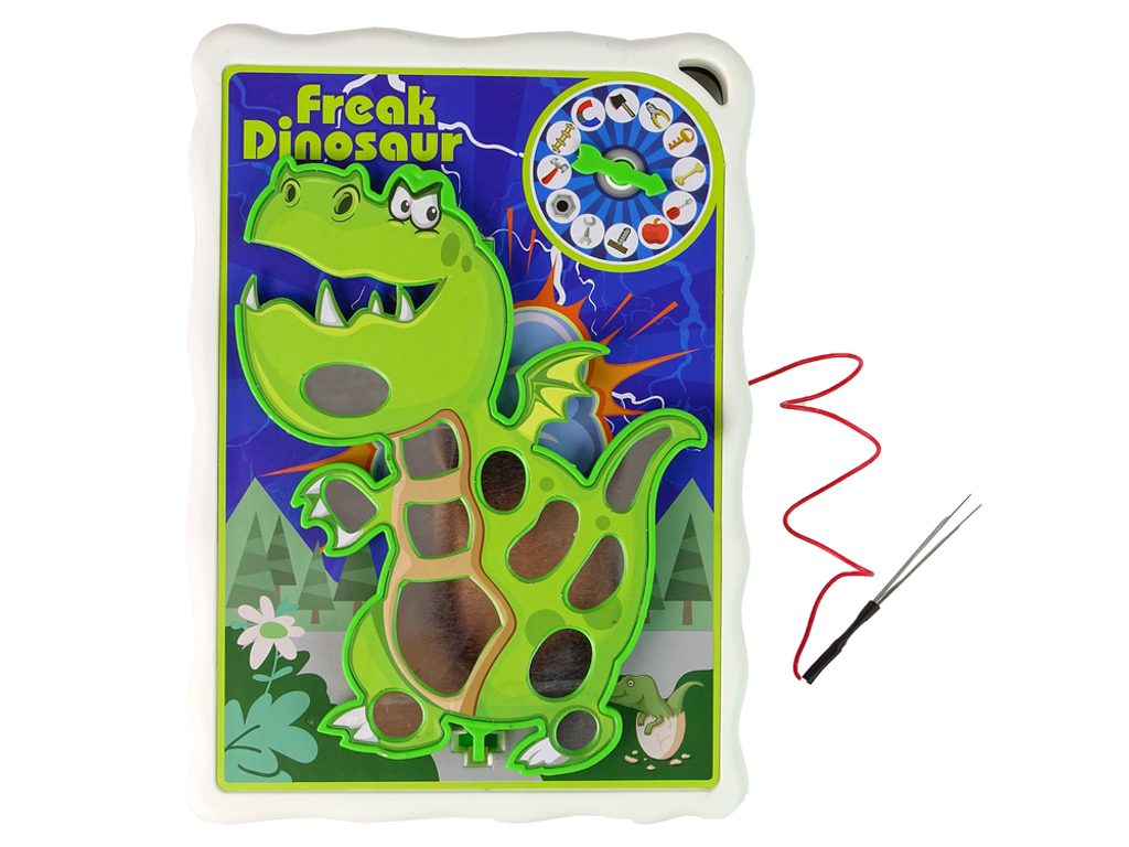 Dovednostní hra Crazy Dinosaurus je určena pro děti od 4 let. V této hře hrajeme na archeologa. Dinosaurus má 12 různých míst na těle, je potřeba v nich správně uspořádat elementy hry. Pak roztočíme kolo a uvidíme, na co ukazuje šipka. Náhodně vybraný element by měl být z dané části jemně odstraněn. Pokud se byť jen lehce dotkneme povrchu dinosaura, zachvěje se, začne bzučet. Hra vyžaduje koncentraci a přesnost a učí koordinaci ruka-oko. Na zadní straně desky je odkládací přihrádka, kam lze umístit veškeré příslušenství.