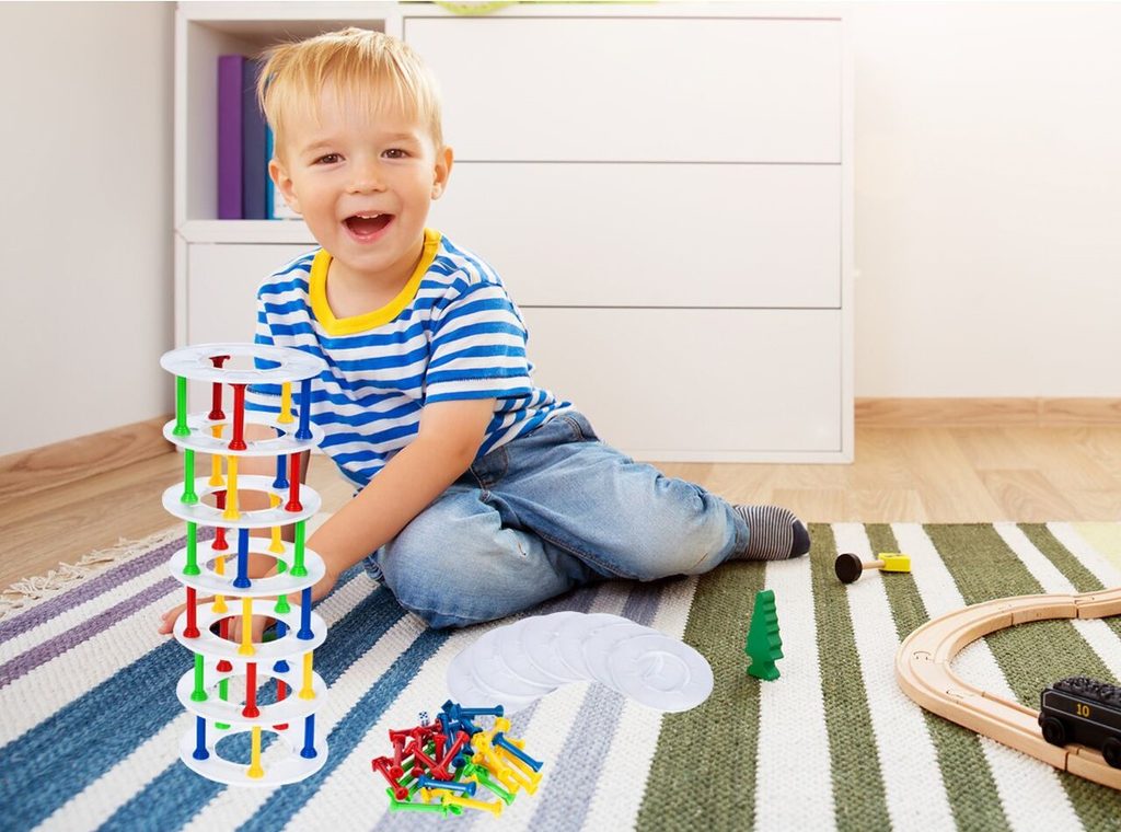 Dětská dovednostní hra Padající věž je určena pro děti a klidně i pro dospělé. Smyslem hry je postavit věž s co nejvíce patry tak aby nespadla. Hráč hodí kostkou a obdrží tolik sloupků kolik ukazuje kostka. Poté začně stavět věž a po úspěšném pokusu ho vystřídá další hráč. Hračka je vyrobená z plastu a určena pro děti od 3 let.