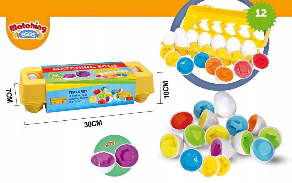 Vzdělávací hra Veselá vajíčka je jedinečná hračka, která vašemu dítěti poskytne mnoho hodin nevšední zábavy. Sada obsahuje obal na vejce a 12 vajíček, které lze rozdělit na dvě poloviny. Každá polovina vajíčka uvnitř obsahuje jiný tvar, jako je trojúhelník, čtverec, kruh, obdélník a mnoho dalších. Vaše dítě bude muset sladit příslušné poloviny, aby vytvořilo úplný celek. Spojování půlek vajíček vyžaduje přesné pohyby, což pomáhá rozvíjet jemnou motoriku dětí. Malí si procvičí své manuální dovednosti. Spojování půlek vajec do úplného celku vyžaduje logické myšlení a schopnost řešit problémy. Hra je vyrobena z odolného a bezpečného materiálu, zajišťujícího dlouhodobé používání.