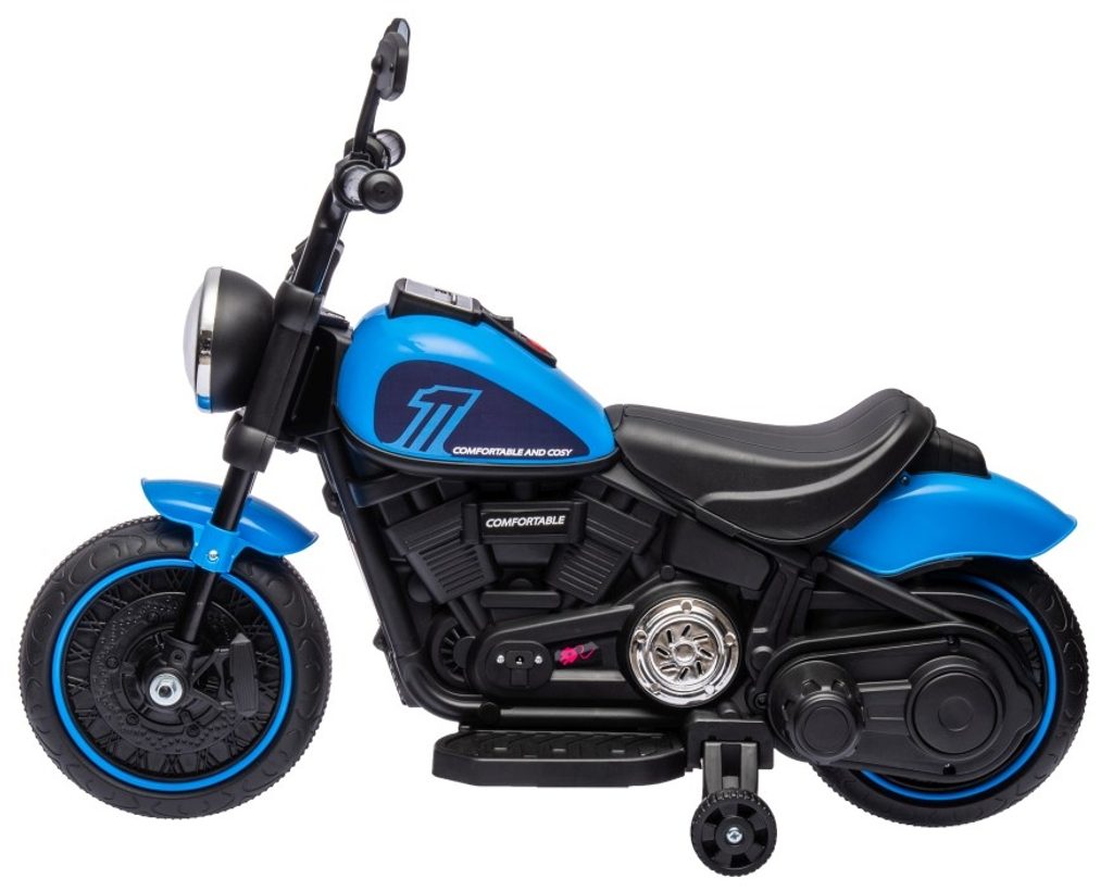 Dětská elektrická motorka Faster s možností sundání podpůrných kol. Efektní startování pomocí tlačítka se zvukem motoru. Plastová kola s páskem o průměru 22 cm. Poháněna motorem 1x20W. Pohon je aktivován plynovým pedálem umístěným v opěrce nohy. Po uvolnění se motorka zastaví. Pokud již dítě udrží rovnováhu lze kolečka sundat. Vybavena předním LED přední světlem a melodiemi. Motorka je dodávána v rozloženém stavu.