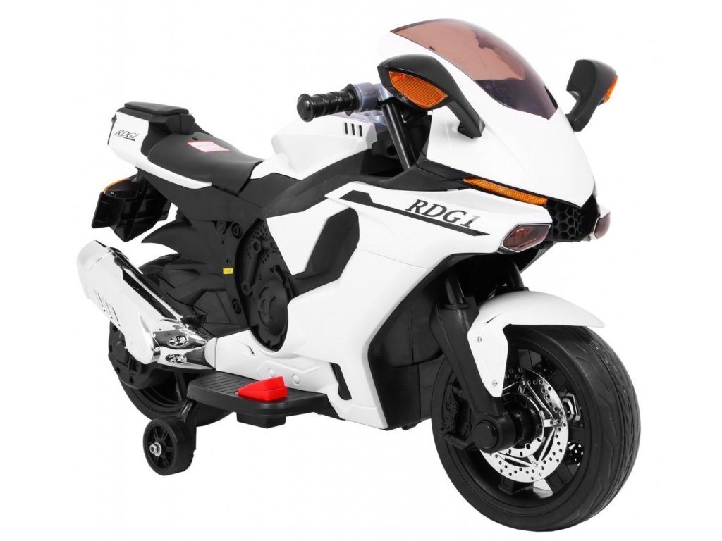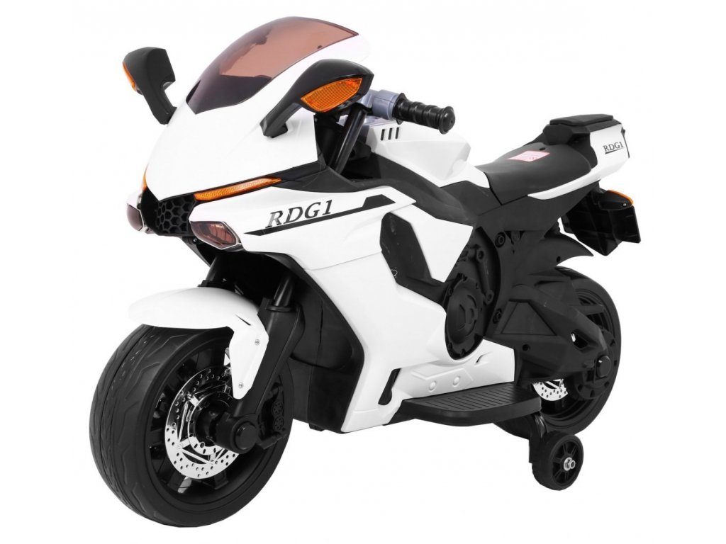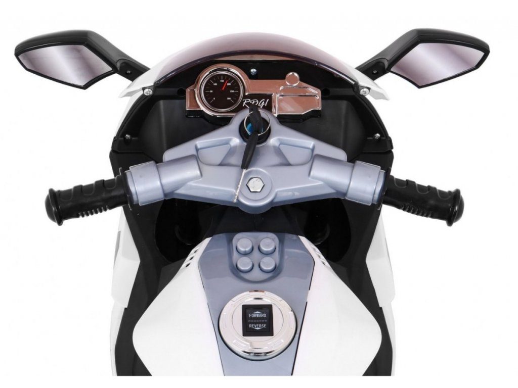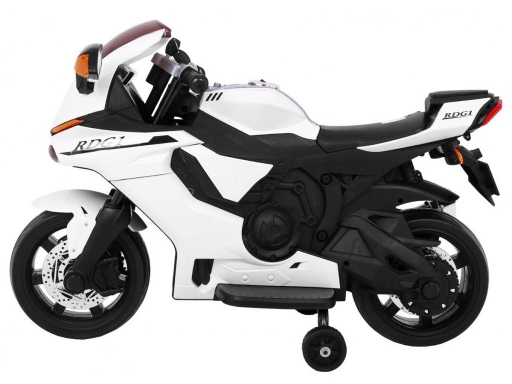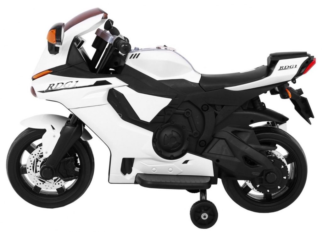 Dětská elektrická motorka Superbike s možností sundání podpůrných kol. Efektní startování pomocí klíčku. Velká plastová kola s gumovým páskem o průměru 28 cm. Poháněna motorem 1x20W. Pohon je aktivován plynovým pedálem umístěným v opěrce nohy. Po uvolnění se motorka zastaví. Pokud již dítě udrží rovnováhu lze kolečka sundat. Vybavena předním LED světlem a zadním světlem. Motorka je dodávána v rozloženém stavu.