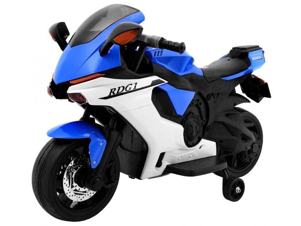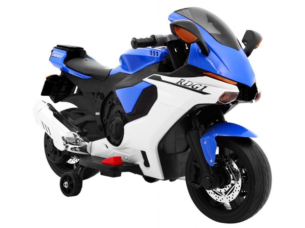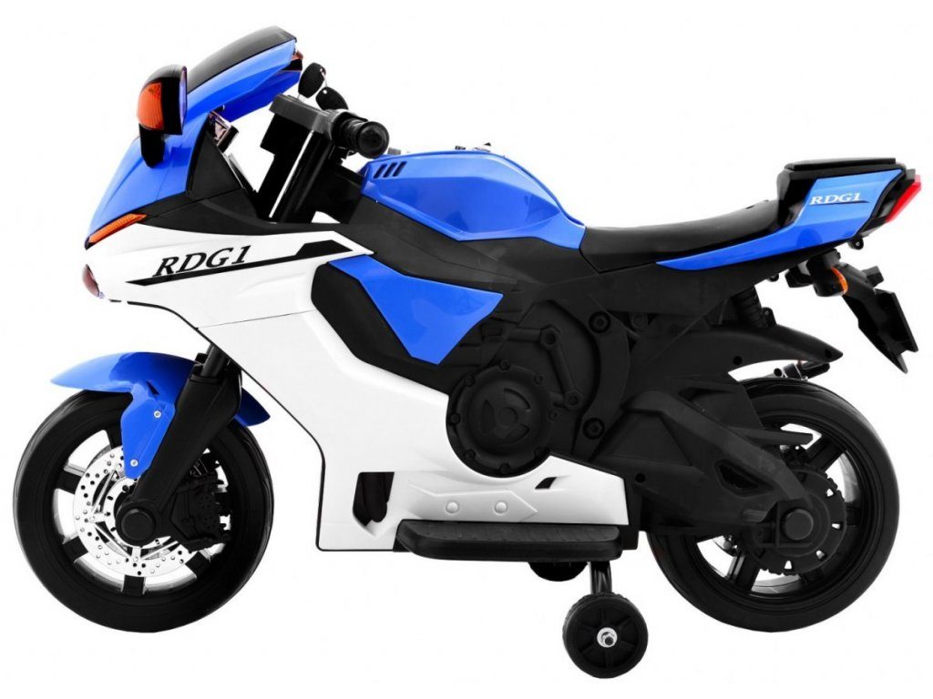 Dětská elektrická motorka Superbike s možností sundání podpůrných kol. Efektní startování pomocí klíčku. Velká plastová kola s gumovým páskem o průměru 28 cm. Poháněna motorem 1x20W. Pohon je aktivován plynovým pedálem umístěným v opěrce nohy. Po uvolnění se motorka zastaví. Pokud již dítě udrží rovnováhu lze kolečka sundat. Vybavena předním LED světlem a zadním světlem. Motorka je dodávána v rozloženém stavu.