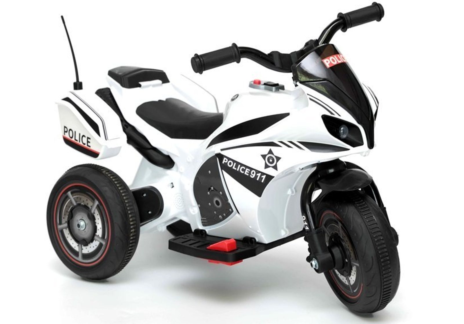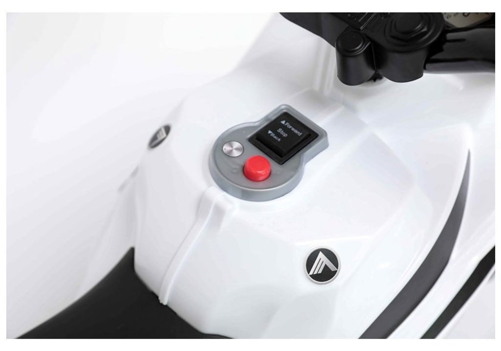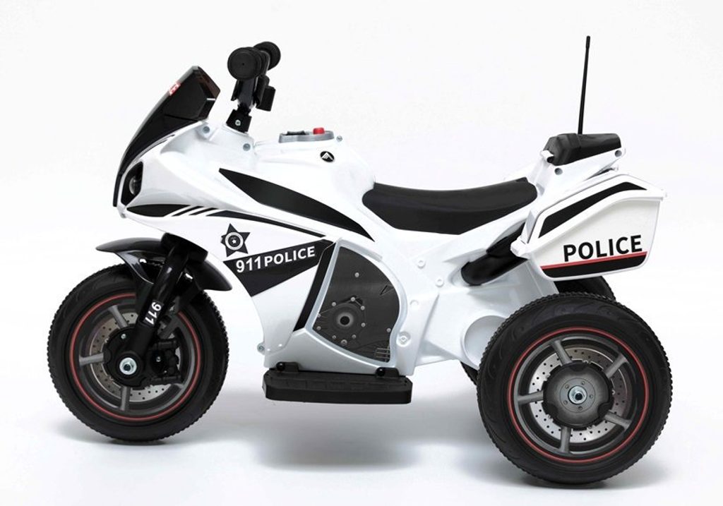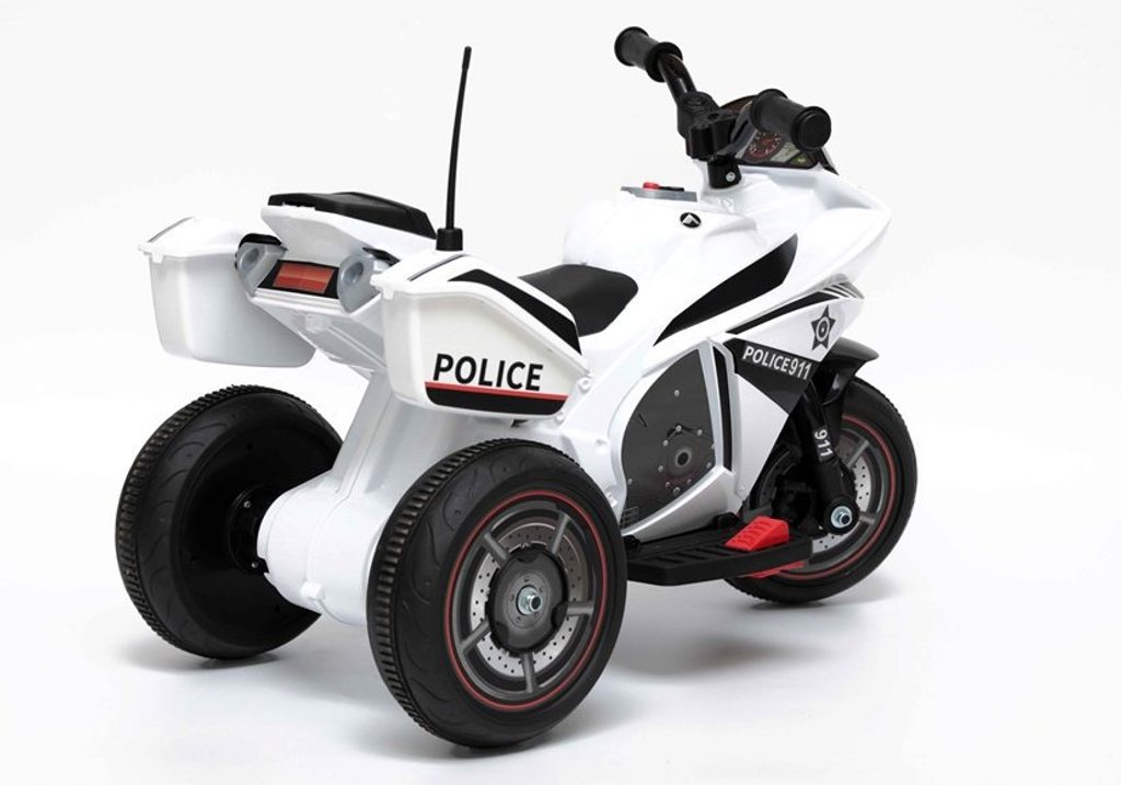 Dětská elektrická tříkolka Future se vzhledem policejního motocyklu. Směr jízdy se mění pomocí tlačítka umístěného na předním panelu. Rychlost jízdy 3 - 4 km/h. Světelné a zvukové efekty. Kola snižující hlučnost jsou opatřena gumovým páskem a mají průměr 19 cm. Tříkolka je vyrobena z kvalitního materiálu a je velmi stabilní. Hrát si s ní je absolutně bezpečné. Určena pro děti od 3 let věku a nosnosti do 20 kg.