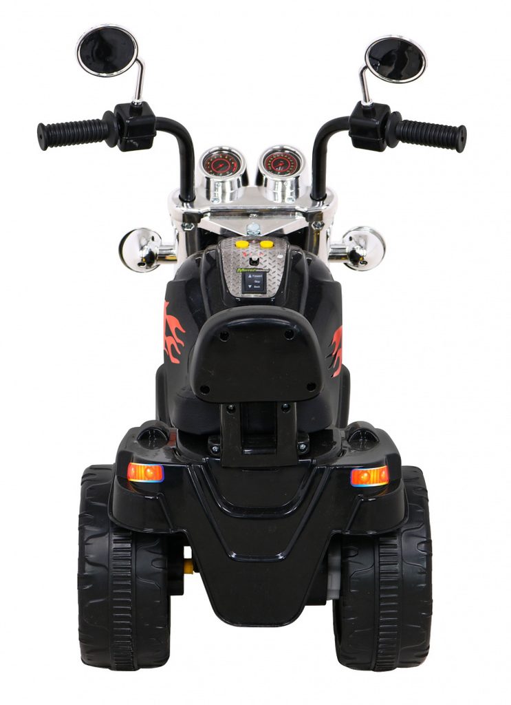 Dětská elektrická tříkolka HotChopper. Všechna kola mají uprostřed rýhovaný pásek. Je poháněna motorem 1x6V/25W. Pohon je aktivován plynovým pedálem umístěným v opěrce nohy. Po uvolnění se motorka zastaví. Vybavena předním LED světlem, které se rozsvítí po nastartování a tlačítky s melodiemi. Sedadlo má rozměry 25 x 13 cm. Tříkolka je dodávána v rozloženém stavu.