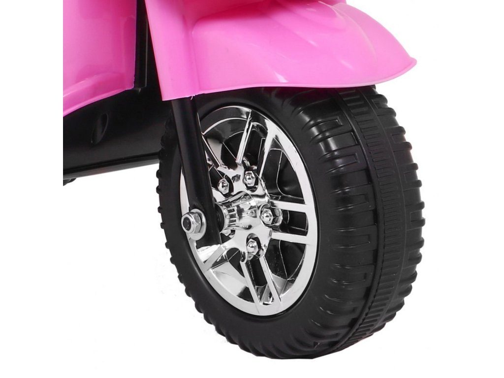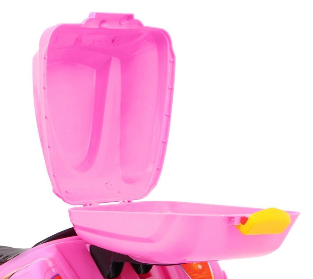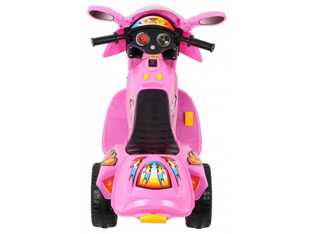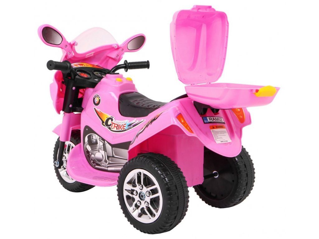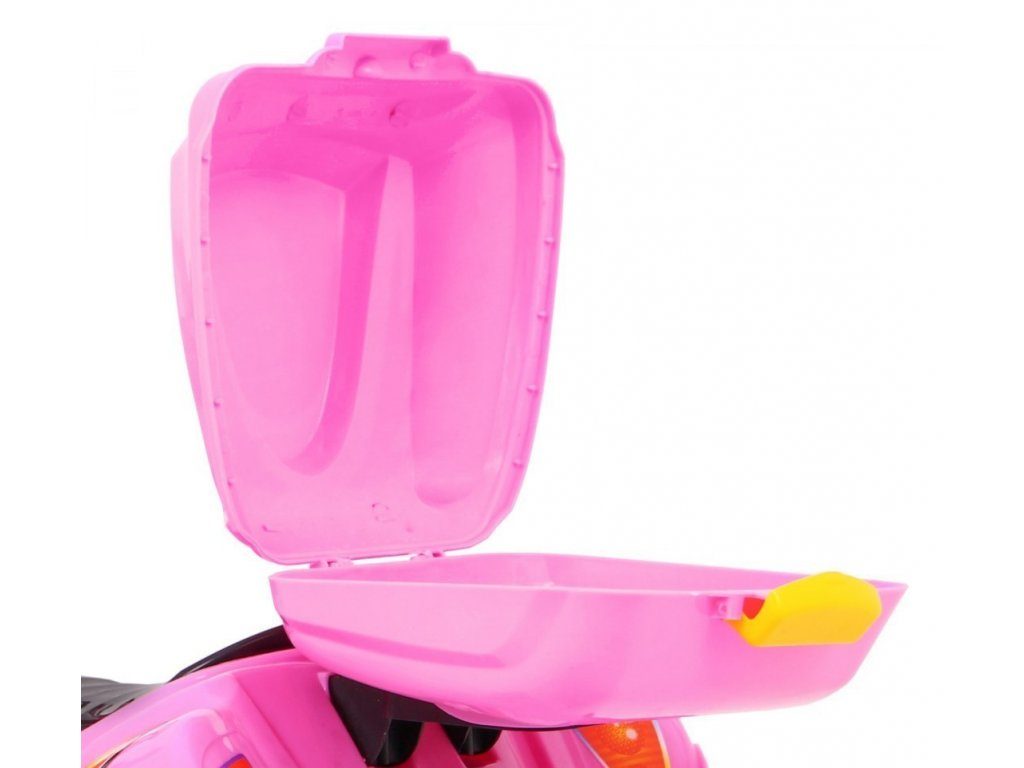 Dětská elektrická tříkolka Racing Pink s atraktivním vzhledem. Směr jízdy se mění pomocí tlačítka umístěného na předním panelu. Rychlost jízdy 3 - 4 km/h. Světelné a zvukové efekty. Kola snižující hlučnost jsou opatřena gumovým páskem a mají průměr 19 cm. Tříkolka je vyrobena z kvalitního materiálu a je velmi stabilní. Hrát si s ní je absolutně bezpečné. Určena pro děti od 3 let věku a nosnosti do 20 kg.