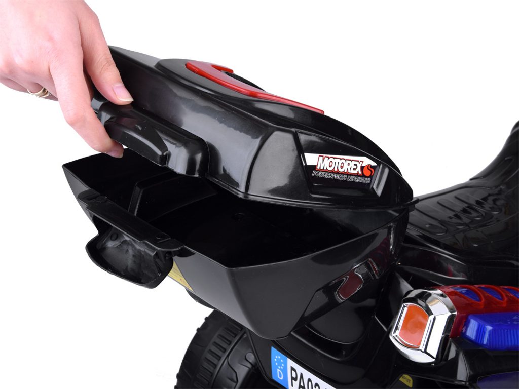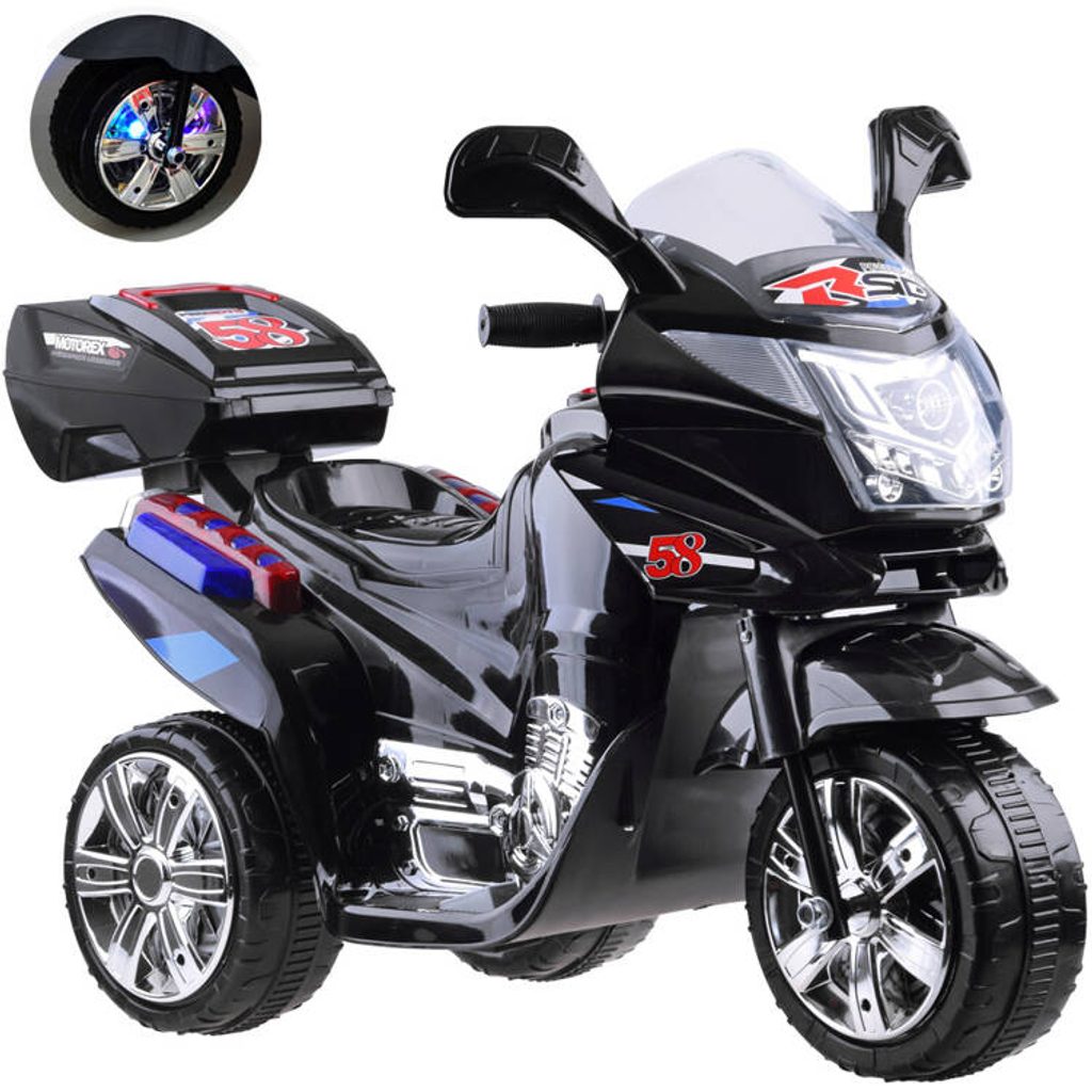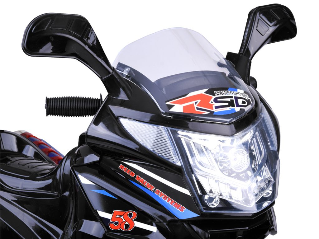 Dětská elektrická tříkolka Speed Star s atraktivním vzhledem je určena pro ty nejmenší děti. Směr jízdy se mění pomocí tlačítka umístěného na předním panelu. Rychlost jízdy je 2 km/h. Motorka je vybavena osvětlením přední části, boků a kol (nutno dokoupit LR44 baterie). Tlačítka ovládají melodie a zvuk motoru. Plastová kola jsou opatřena zubatým páskem a mají průměr 19 cm. Tříkolka je vyrobena z kvalitního materiálu a je velmi stabilní. Hrát si s ní je absolutně bezpečné.