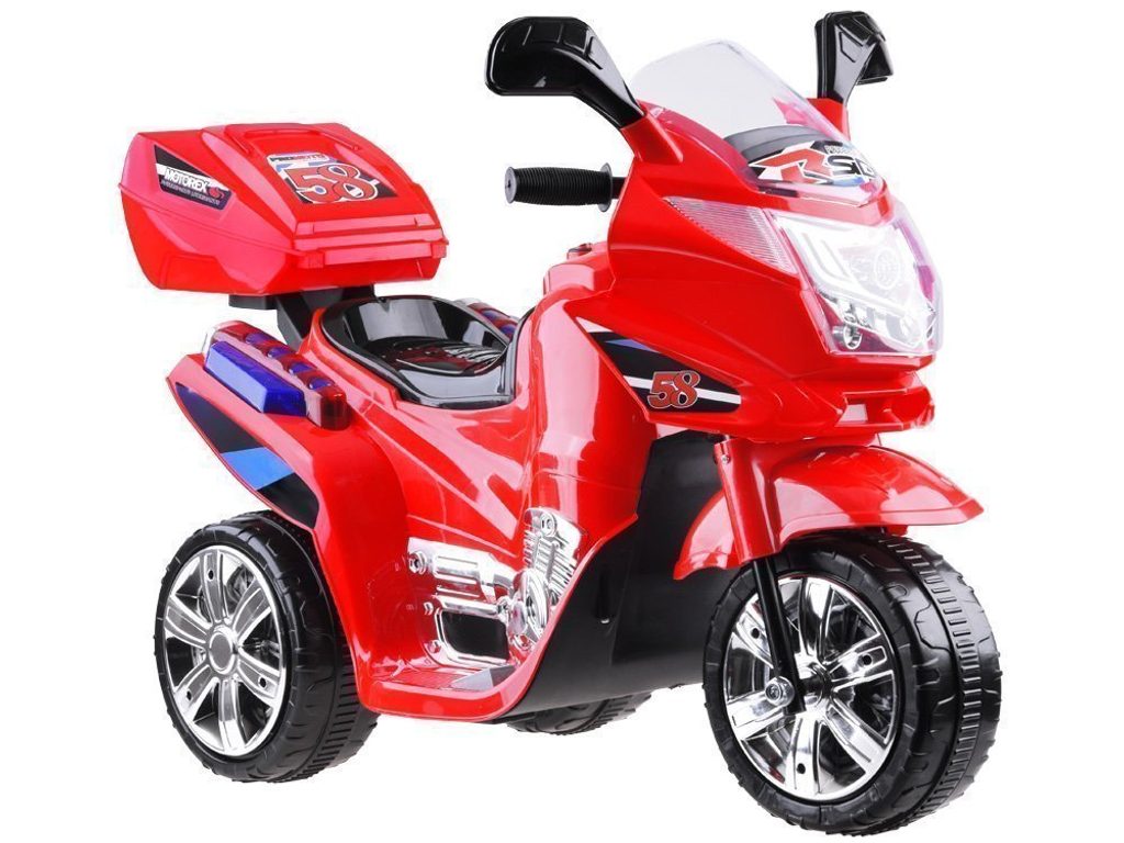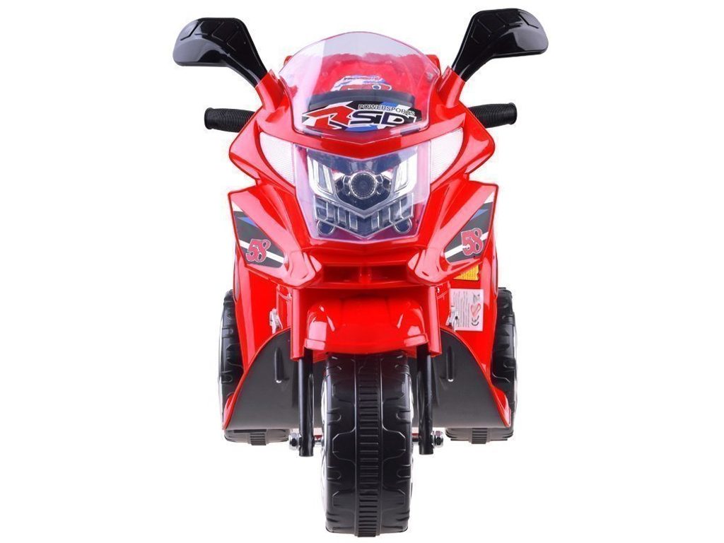 Dětská elektrická tříkolka Speed Star s atraktivním vzhledem je určena pro ty nejmenší děti. Směr jízdy se mění pomocí tlačítka umístěného na předním panelu. Rychlost jízdy je 2 km/h. Motorka je vybavena osvětlením přední části, boků a kol (nutno dokoupit LR44 baterie). Tlačítka ovládají melodie a zvuk motoru. Plastová kola jsou opatřena zubatým páskem a mají průměr 19 cm. Tříkolka je vyrobena z kvalitního materiálu a je velmi stabilní. Hrát si s ní je absolutně bezpečné.