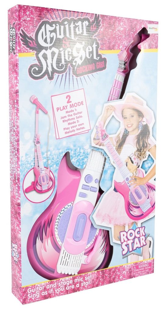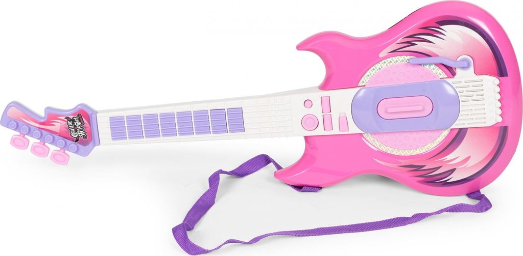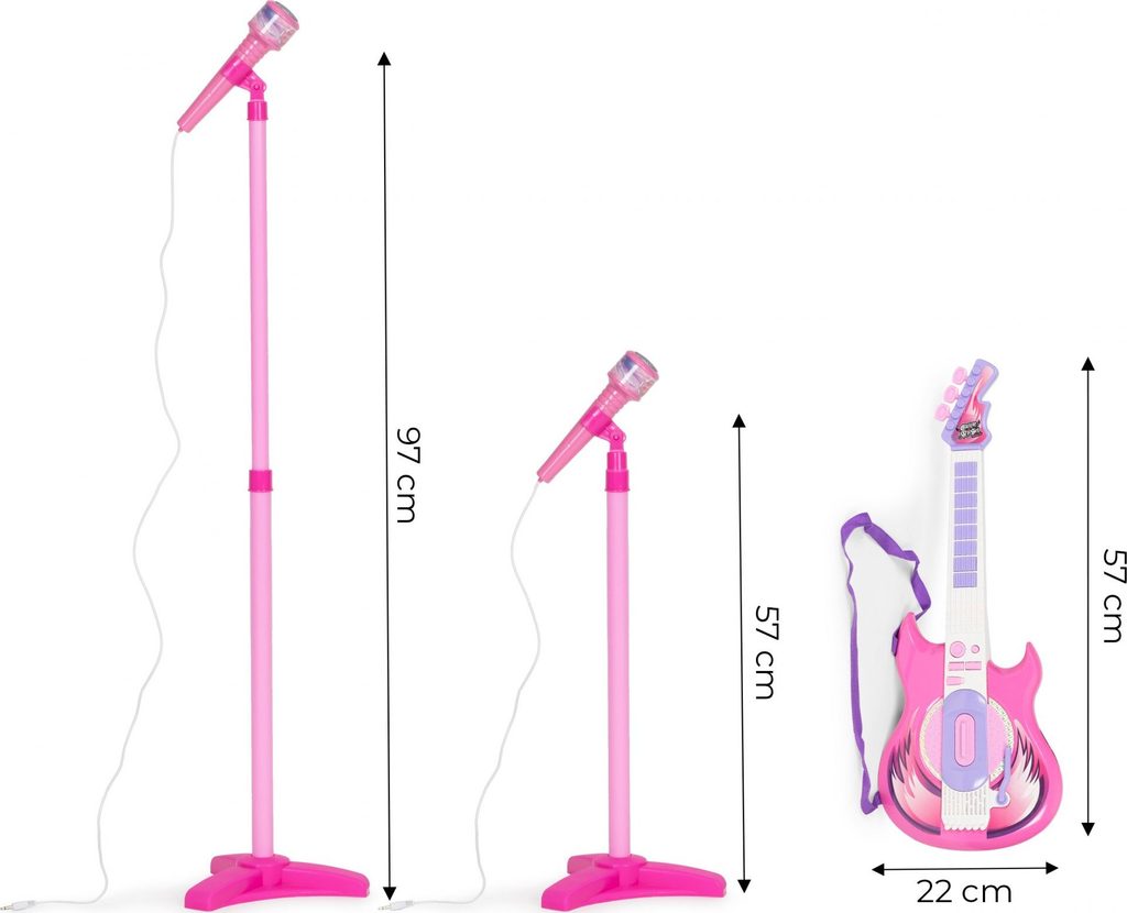 Tato růžová elektrická kytara je ideálním nástrojem pro malé hudební nadšence. S osmi tlačítky na hmatníku může dítě snadno skládat melodie pouhými pohyby prstů. Každé stisknutí tlačítka generuje unikátní kytarové sólo nebo jednotlivý tón, což z ní činí skvělý nástroj pro objevování hudby. Kytara je vybavena dlouhým spínačem u zvukového otvoru, který umožňuje dětem vytvářet různé zvuky kytary jednoduchým pohybem nahoru a dolů. Speciální páka pak přidává rockové efekty, čímž se rozšiřuje možnosti pro kreativitu malých hudebníků. Pro doplnění zábavy můžete kytaru připojit k chytrému telefonu, což umožní dětem hrát a zpívat podle svých oblíbených skladeb s vokály na pozadí. To nejenže pomáhá překonat trému, ale také podporuje jejich hudební rozvoj a fantazii. Stojan na mikrofon je nastavitelný podle výšky dítěte, což zajišťuje pohodlné používání bez ohledu na jejich velikost. Kytara disponuje třístupňovým ovládáním hlasitosti a samostatnými vstupy pro mikrofon a smartphone, což umožňuje flexibilní použití a snadnou integraci s dalším hudebním vybavením. S napájením pomocí baterií je kytara ideální pro cesty k babičce, do školky nebo na narozeninové oslavy, kde děti mohou svou hudbu předvádět bez omezení přístupu k elektrické síti. Tato kytara s mikrofonem je skvělým zdrojem zábavy a inspirace pro nejmenší hudební nadšence.