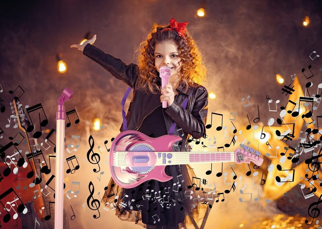 • dětská elektronická kytara s mikrofonem a stativem