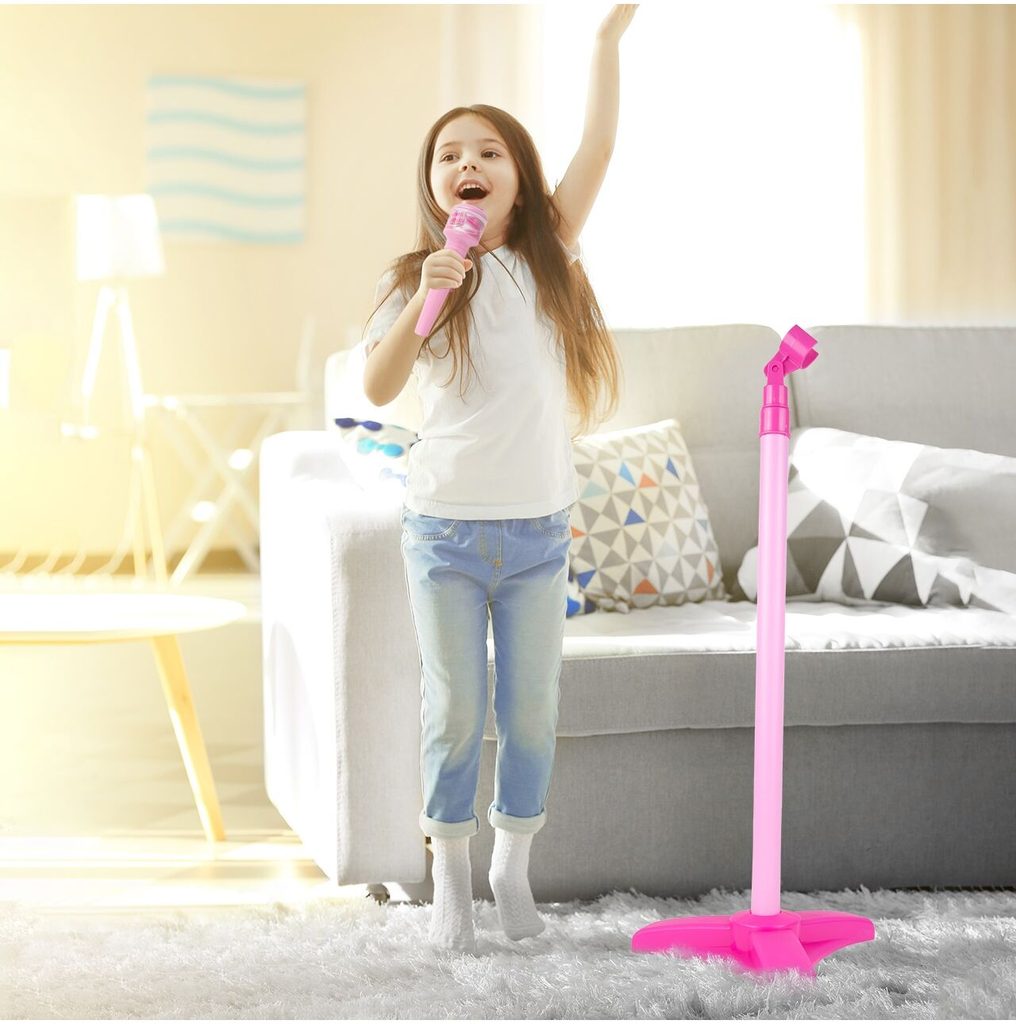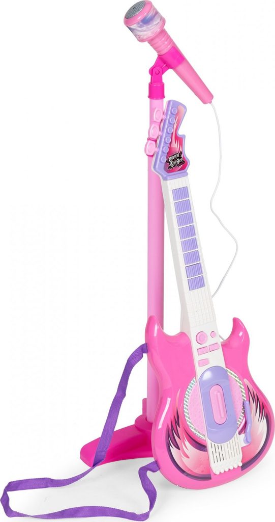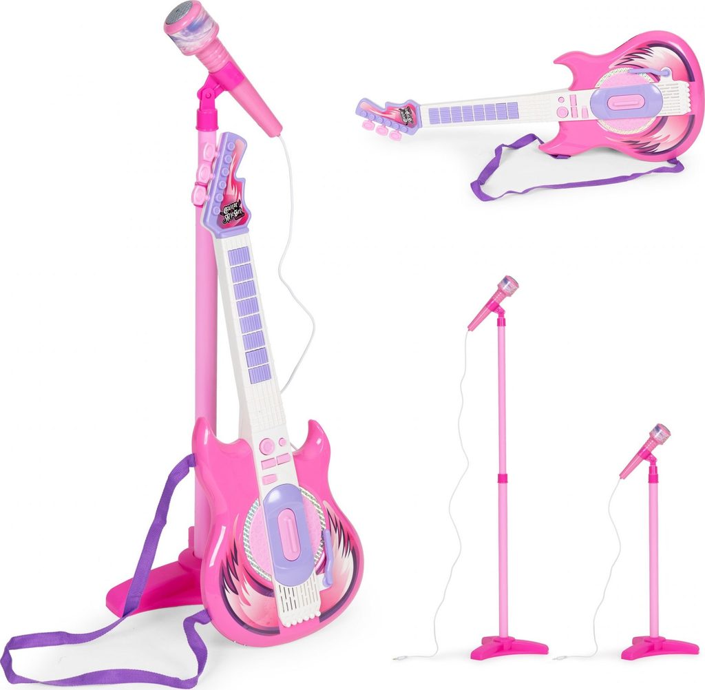 Dětská elektronická kytara se stativem a mikrofonem Guitar Micset - růžová