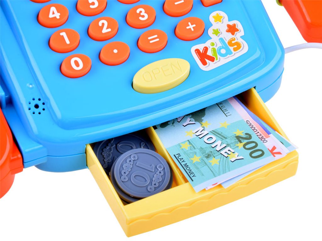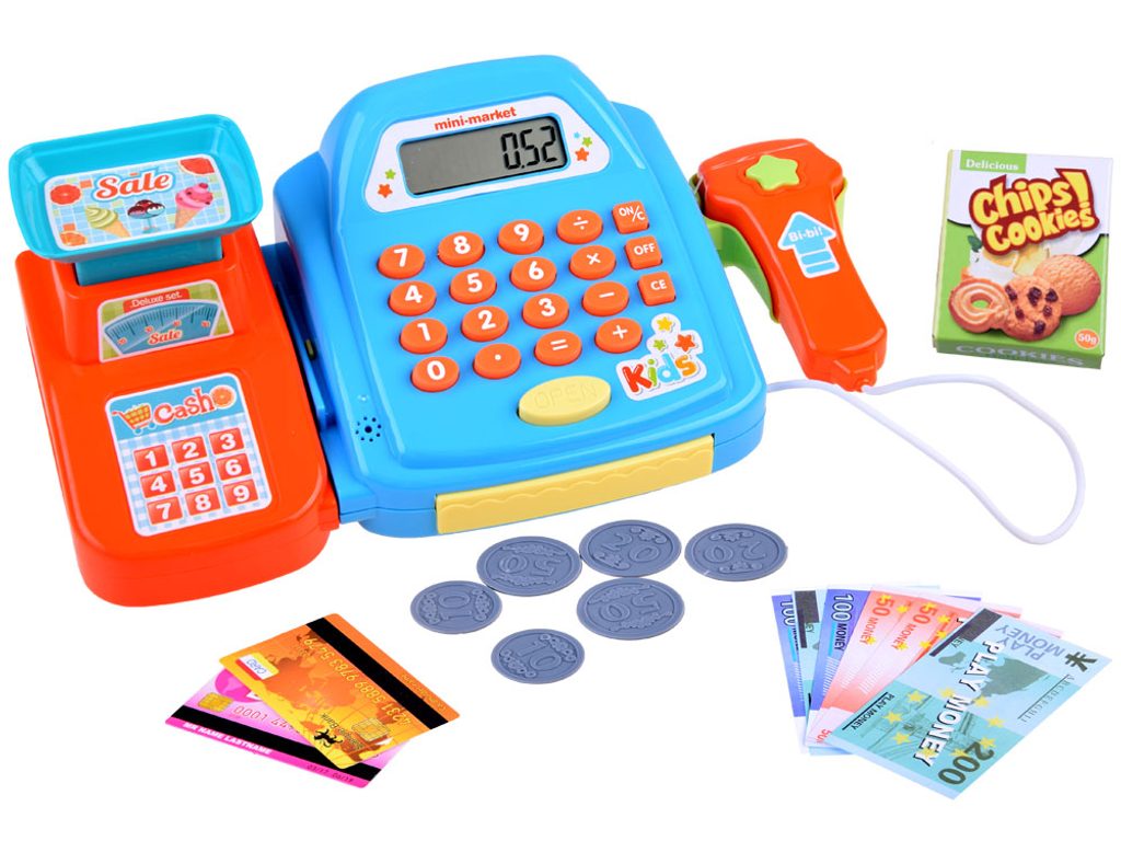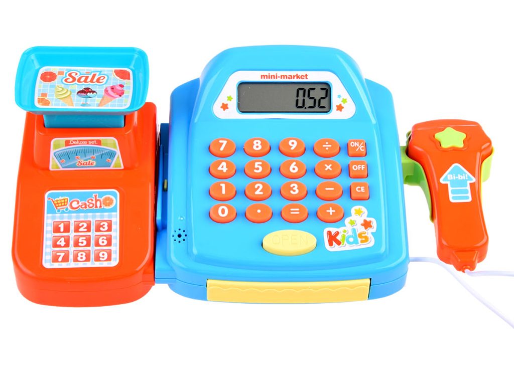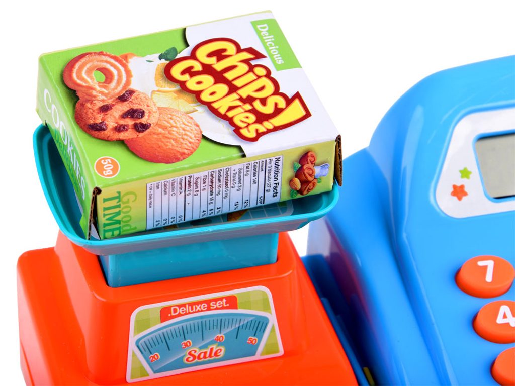 Dětská elektronická pokladna Deluxe Shopping s váhou a displejem přemění Vaše dítě ve skutečnou pokladní. Je vybavena displejem, který má funkci kalkulačky. Ve spodní části je umístěna výsuvná přihrádka na bankovky a mince, které jsou také součástí balení. Pomocí funkčního skeneru lze skenovat zboží, po stisknutí tlačítka se ozve zvuk. V levé části pokladny je umístěna váha. Hračka je určena pro děti od 36 měsíců věku.