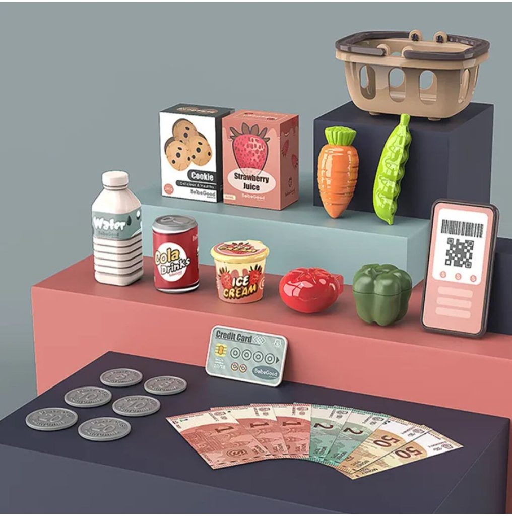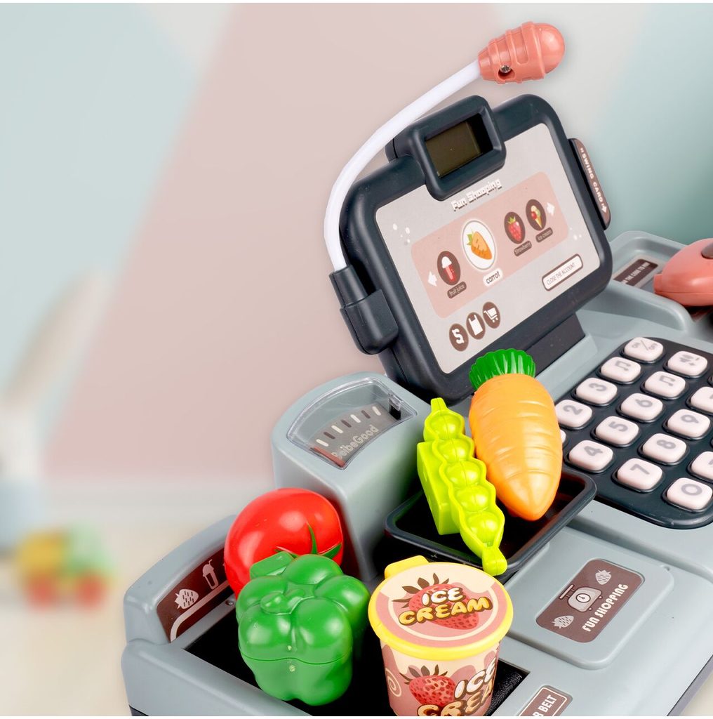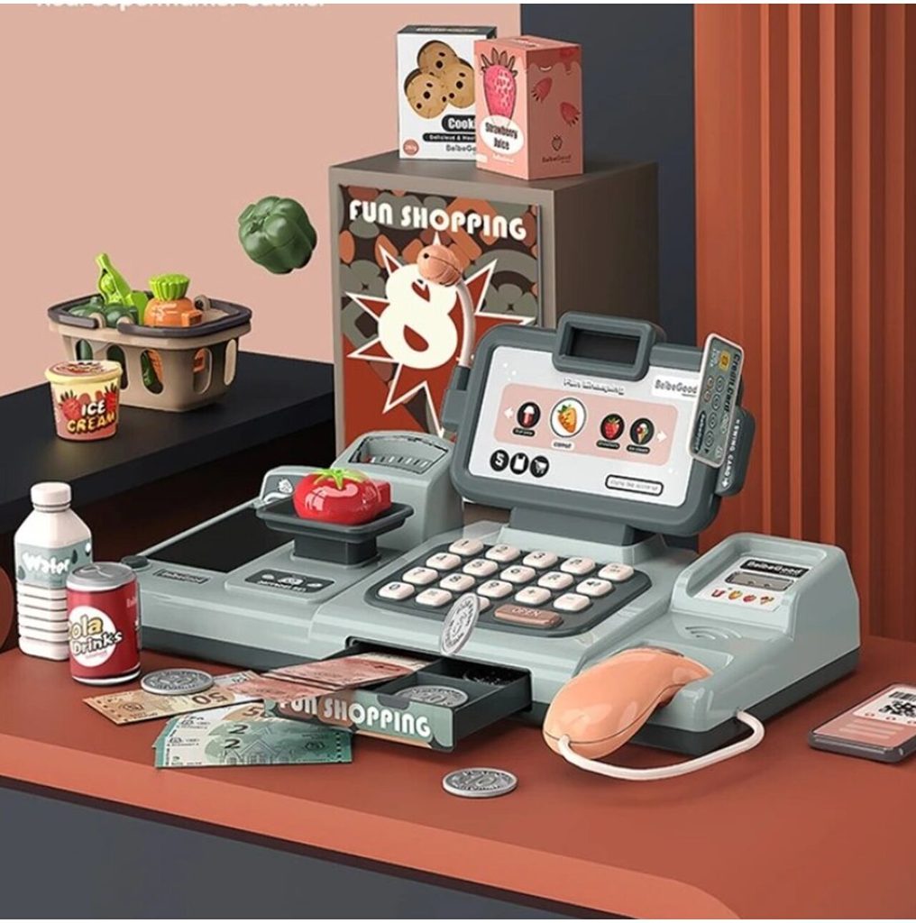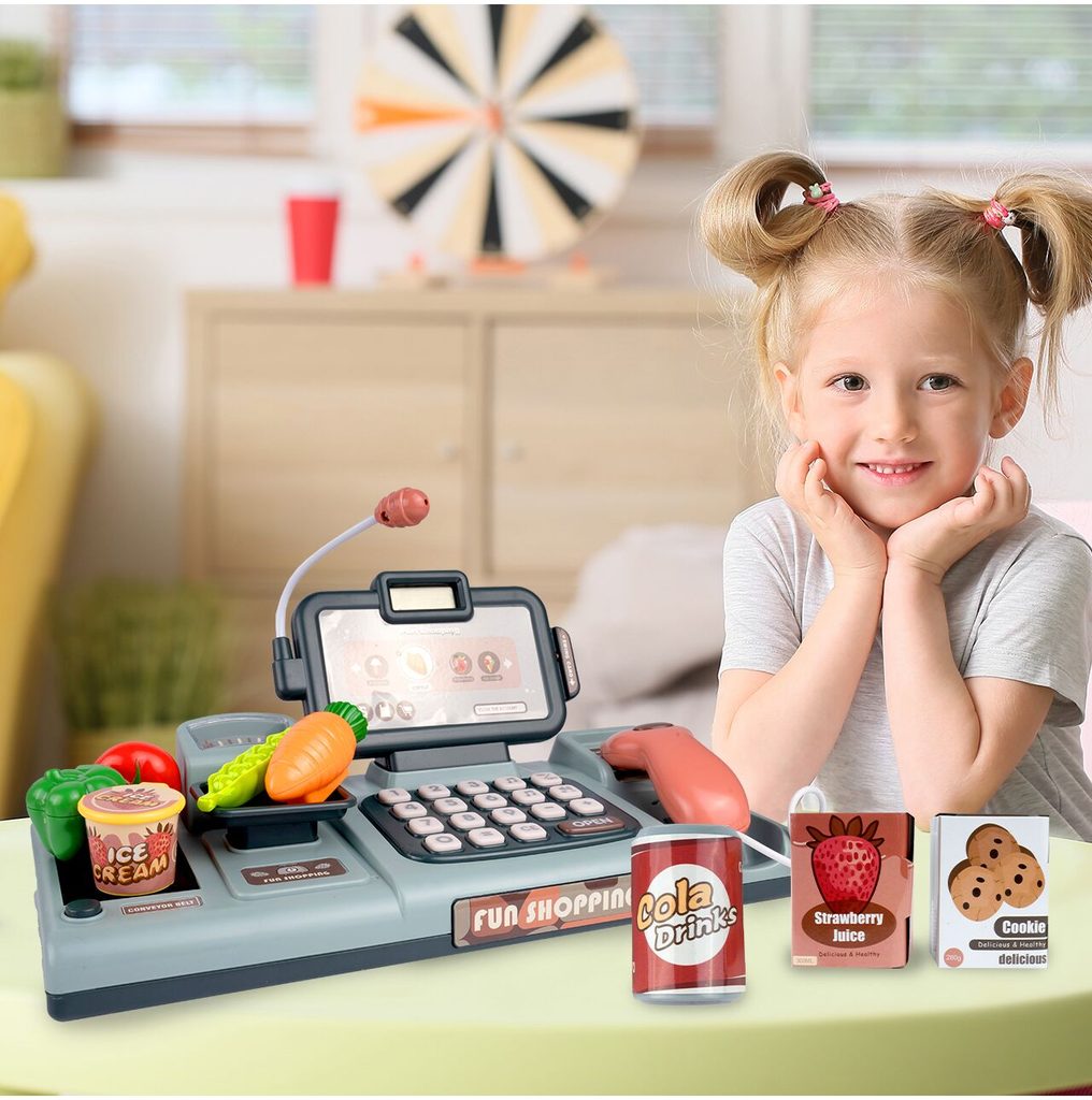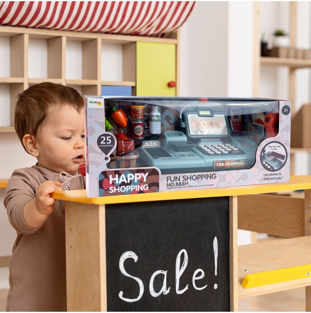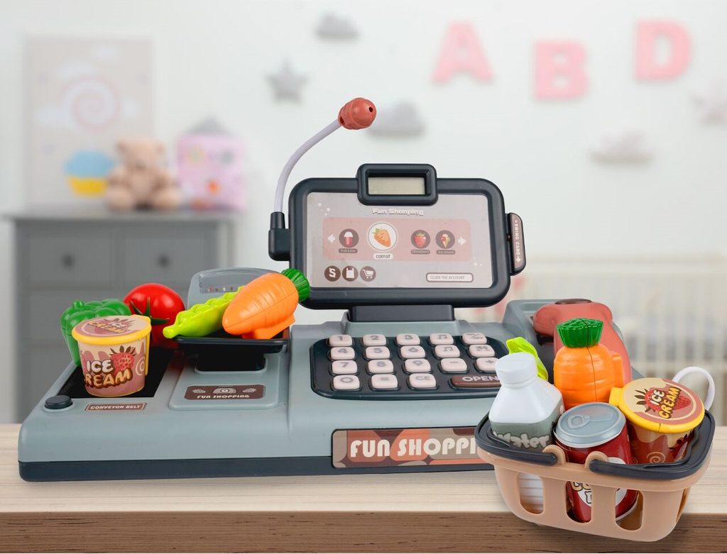 Dětská elektronická pokladna Fun Shopping s váhou a čtečkou čárových kodů přemění Vaše dítě ve skutečného prodavače. Je vybavena klávesnicí s tlačítky, čtečkou platebních karet, pohyblivým pásem na zboží a funkčním mikrofonem s melodiemi. Ve spodní části je umístěna výsuvná přihrádka na bankovky a mince, které jsou také součástí balení. Pomocí funkčního skeneru lze skenovat zboží. Součástí balení je také nákupní košíček a imitace potravin. V levé části pokladny je umístěna váha. Hračka je určena pro děti od 36 měsíců věku.