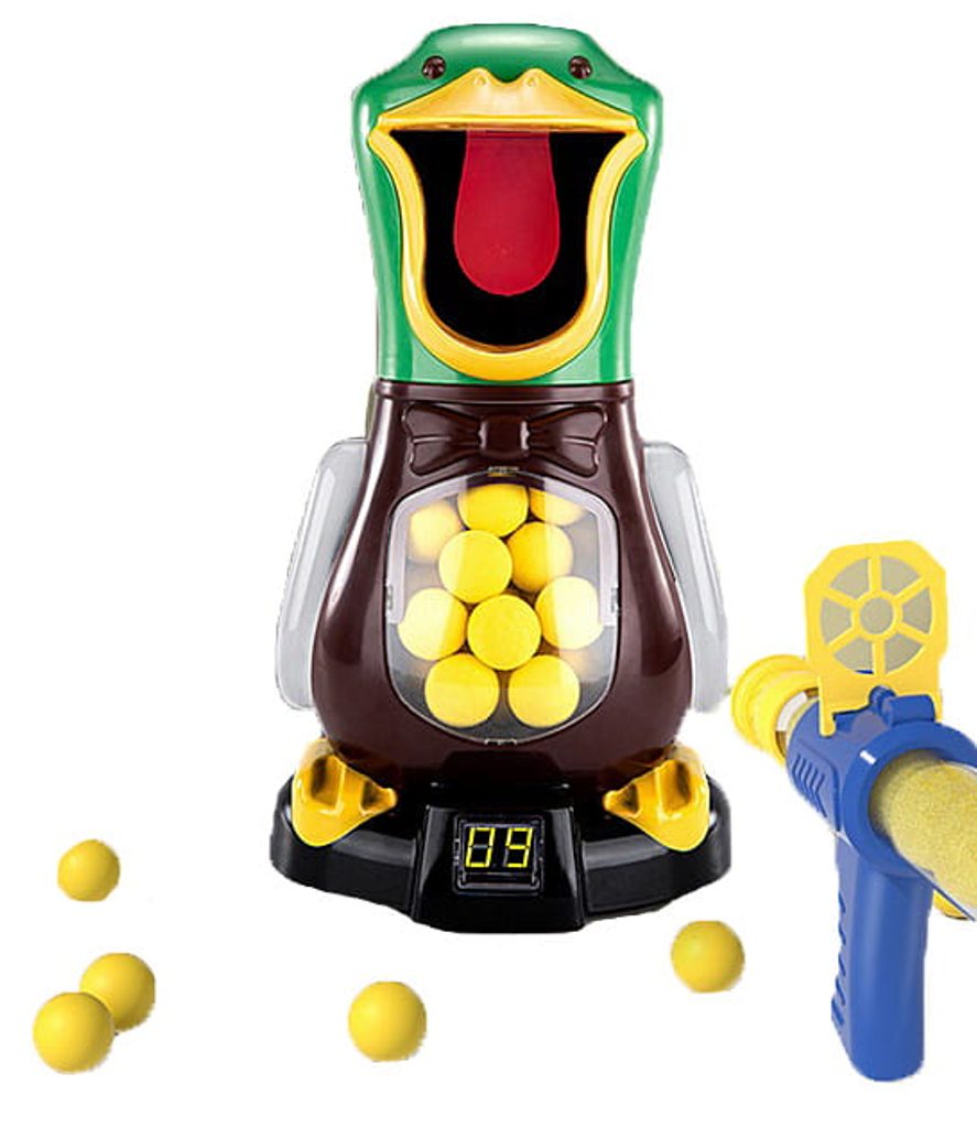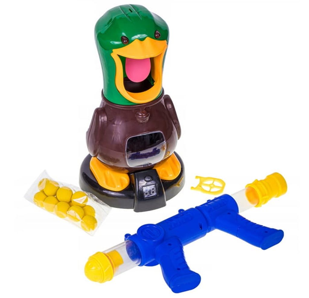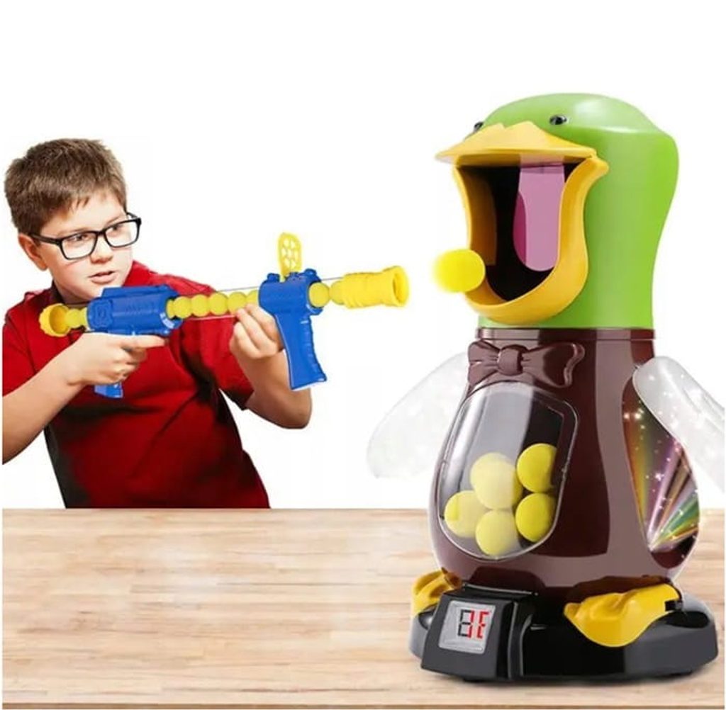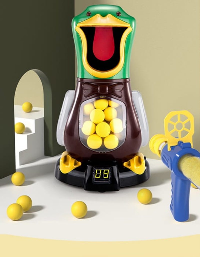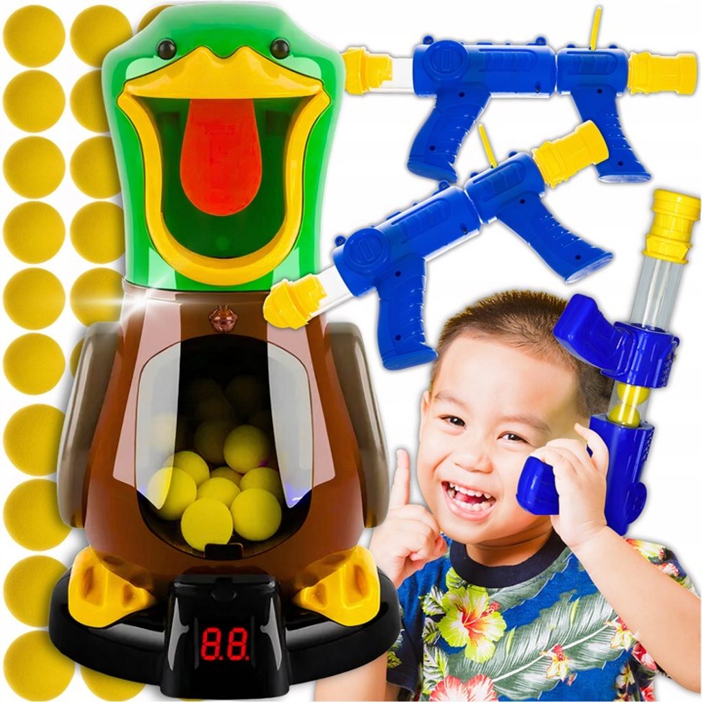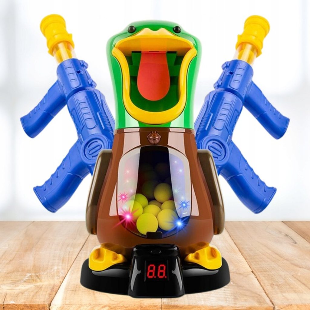 Hladová kachna - střílení na terč s pistolí a míčky je skvělým nápadem na vzrušující zábavu pro vaše dítě. Tato fantastická sada je ideálním řešením pro všechny fanoušky střeleckých her a soutěží. Hra se zaměřuje na přesné zásahy a získávání bodů za každý úspěšný pokus. Je to skvělý prostředek k rozvíjení koncentrace a motorických koordinačních schopností.Hračka je navržena s důrazem na zábavu pro děti i dospělé. Kachna disponuje LCD displejem zobrazujícím aktuální skóre, které je zvýrazněno červenou barvou. Kachna automaticky počítá zásahy míčků a každý úspěch ohlásí svým charakteristickým kvákáním.