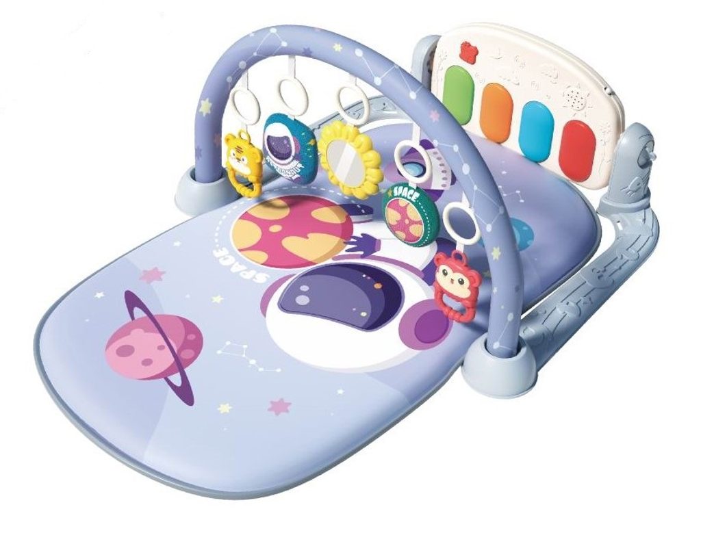 Barevná hrací deka Vesmír je určena Vašemu dítěti už od narození. Součástí deky je hrazdička se zavěšenými kousátky, hračkami a malinkým zrcadlem a také pianko, které svítí a hraje melodie. Dítě si může v leže hrát s chrastítky a sledovat se u toho v zrcátku a pianko může být využito jako uspávací melodie (0-12 měsíců). Na břiše se dítě naučí zvedat hlavičku a pozorovat věci kolem sebe, pomůže mu k prvním krůčkům a zároveň odděluje dítě od chladné podlahy (6-18 měsíců). Pokud již dítě samostatně sedí může hrát na pianko nebo ho využít jako interaktivní stoleček. Zároveň se tím prohlubuje motorika dítěte, rozvíjí se sluch a zrak (6-36 měsíců).