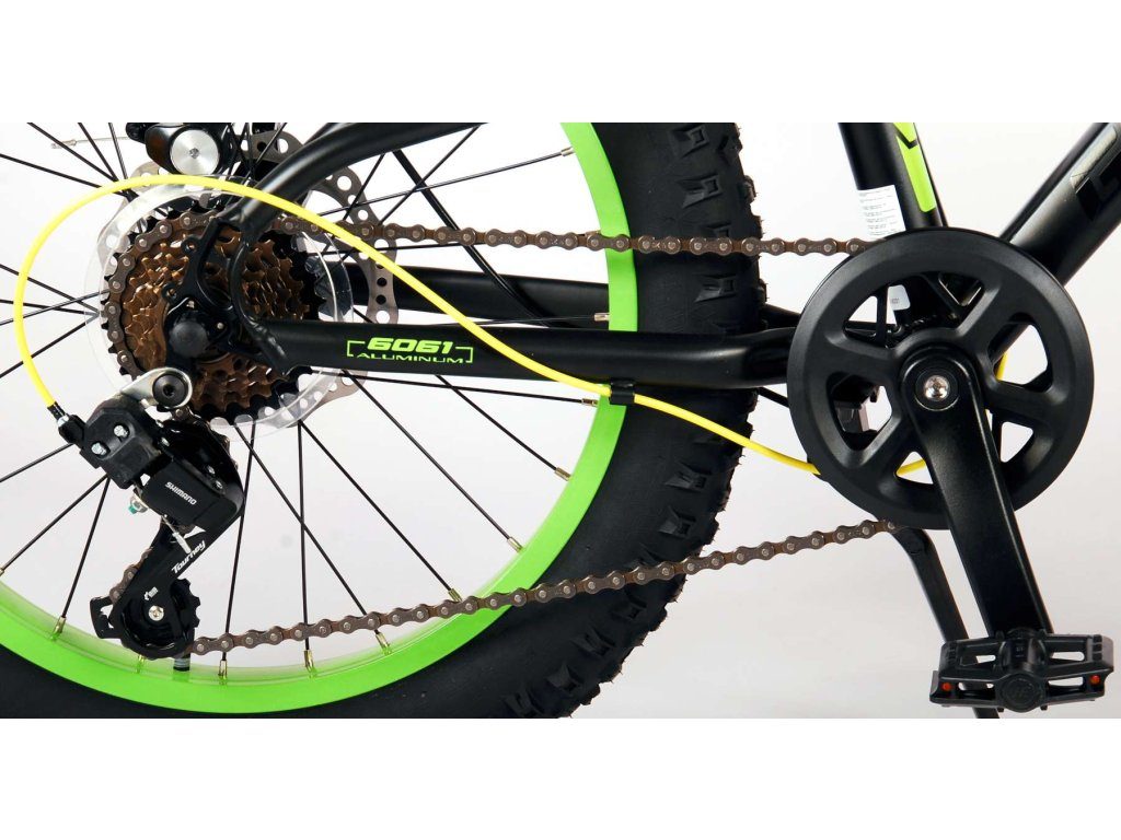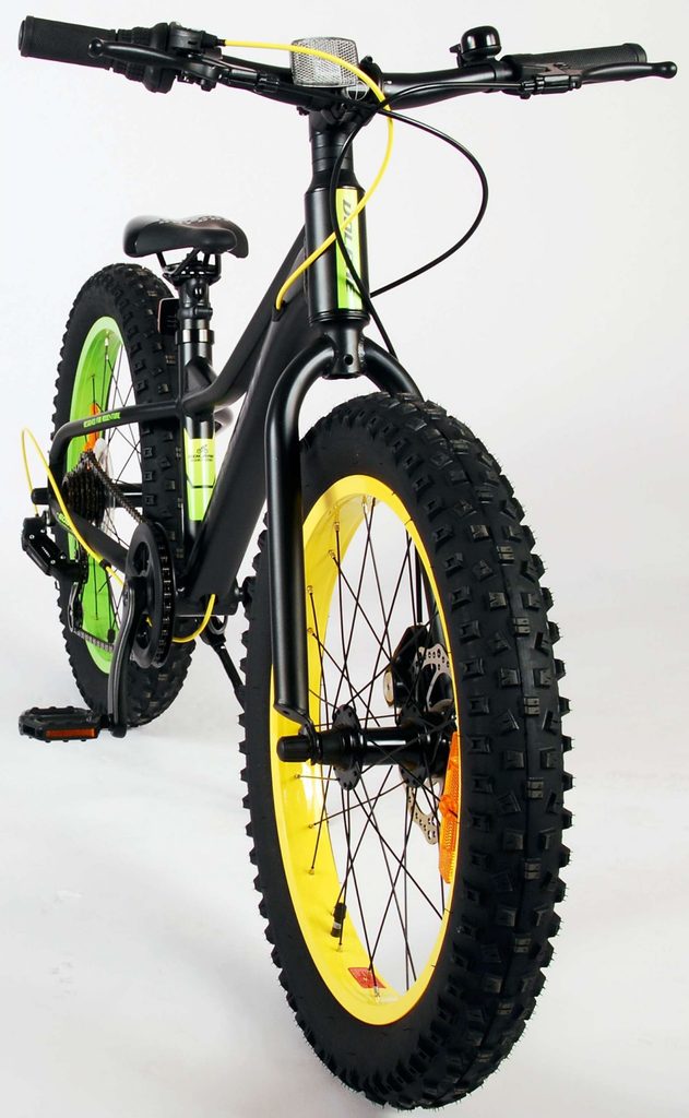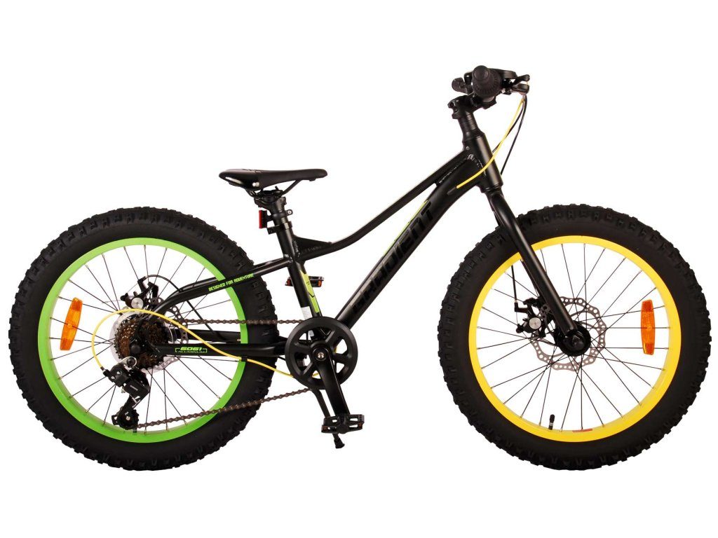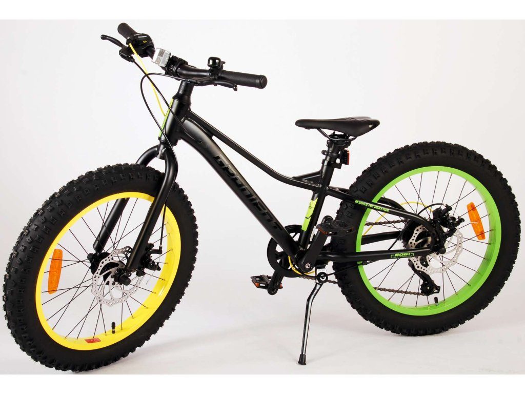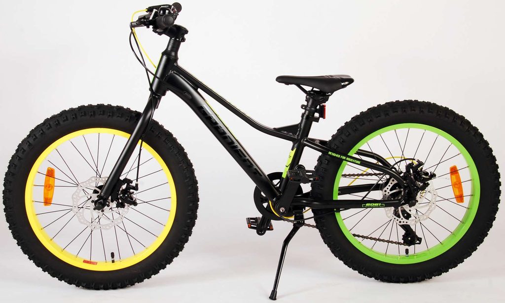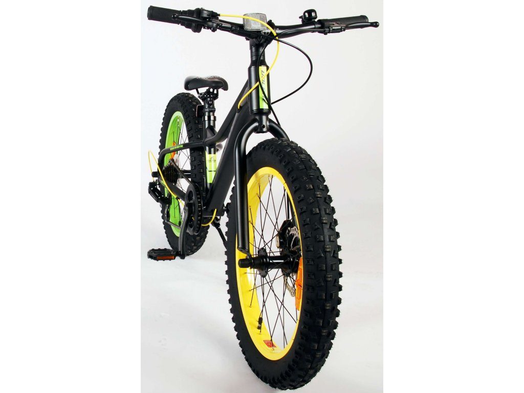 Kvalitní černé kolo s nápaditými žlutými a zelenými prvky, které poskytne vašemu dítěti radost z jízdy po mnoho let!