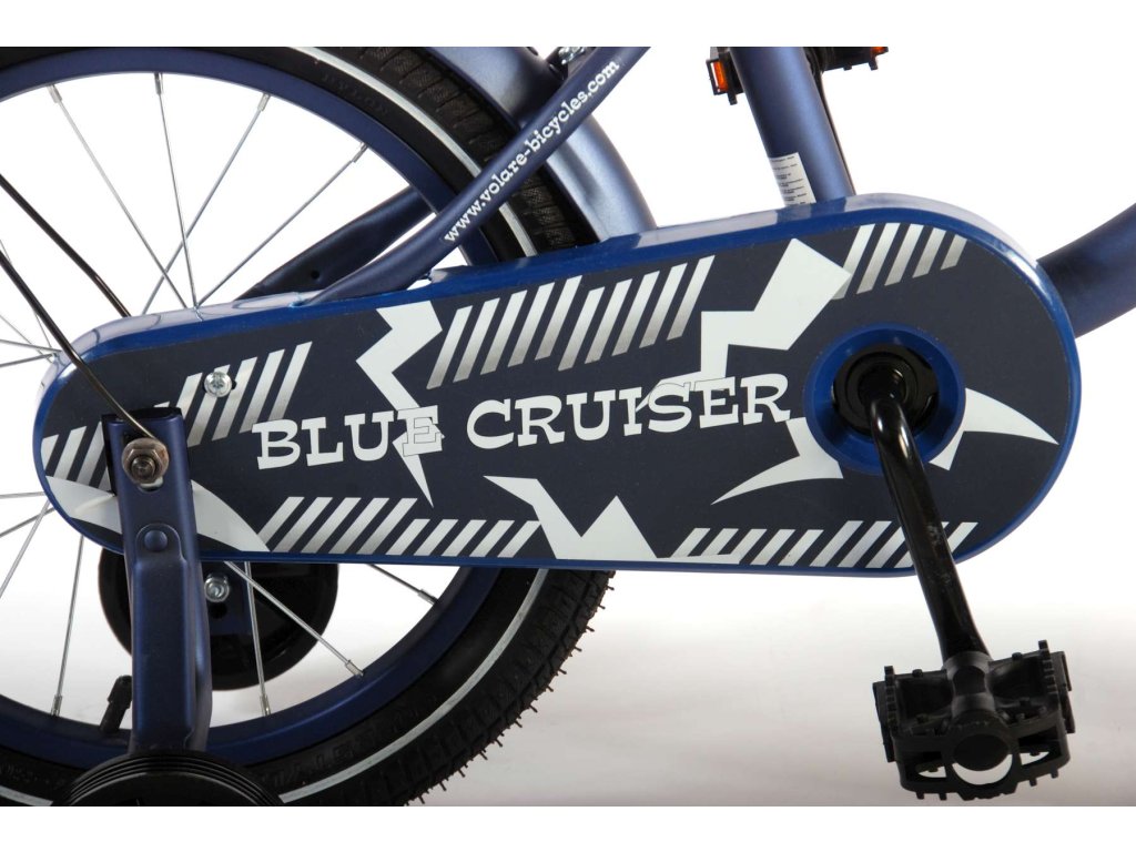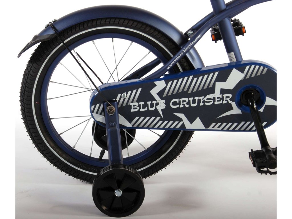 Originální dětské kolo od holandského výrobce Volare Blue Cruiser s velikostí ráfků 16 palců je určeno pro děti ve věku od 4 do 6 let s výškou do 105 cm. Kolo je opatřeno demontovatelnými balančními kolečky, dítě se tedy bude cítit hned od první jízdy bezpečně a stabilně. Kolo je vybaveno 2 druhy brzd. Brždění probíhá buď protisměrnou zadní brzdou "torpédem",která možnuje brzdit zpětným záběrem pedálů nebo lze použít přední pákovou brzdu. Proti nechtěnému namotání nohavice nebo tkaničky do řetězu má kolo kryt s barevným potiskem, který zakrývá celý řetěz. Sedadlo i řídítka jsou výškově nastavitelné.