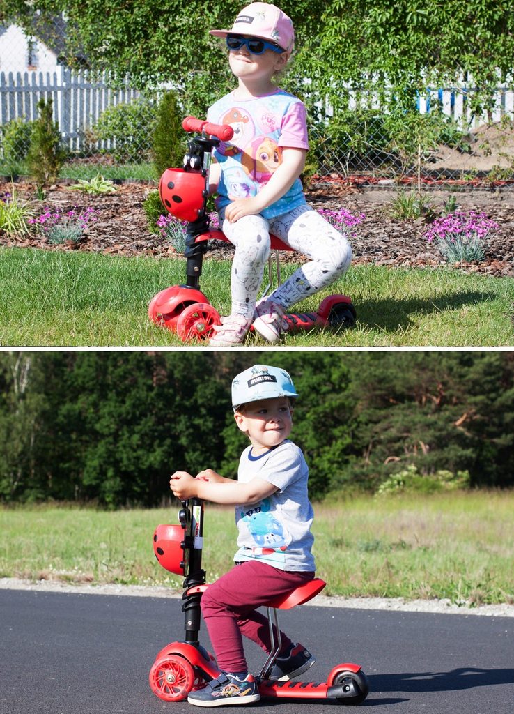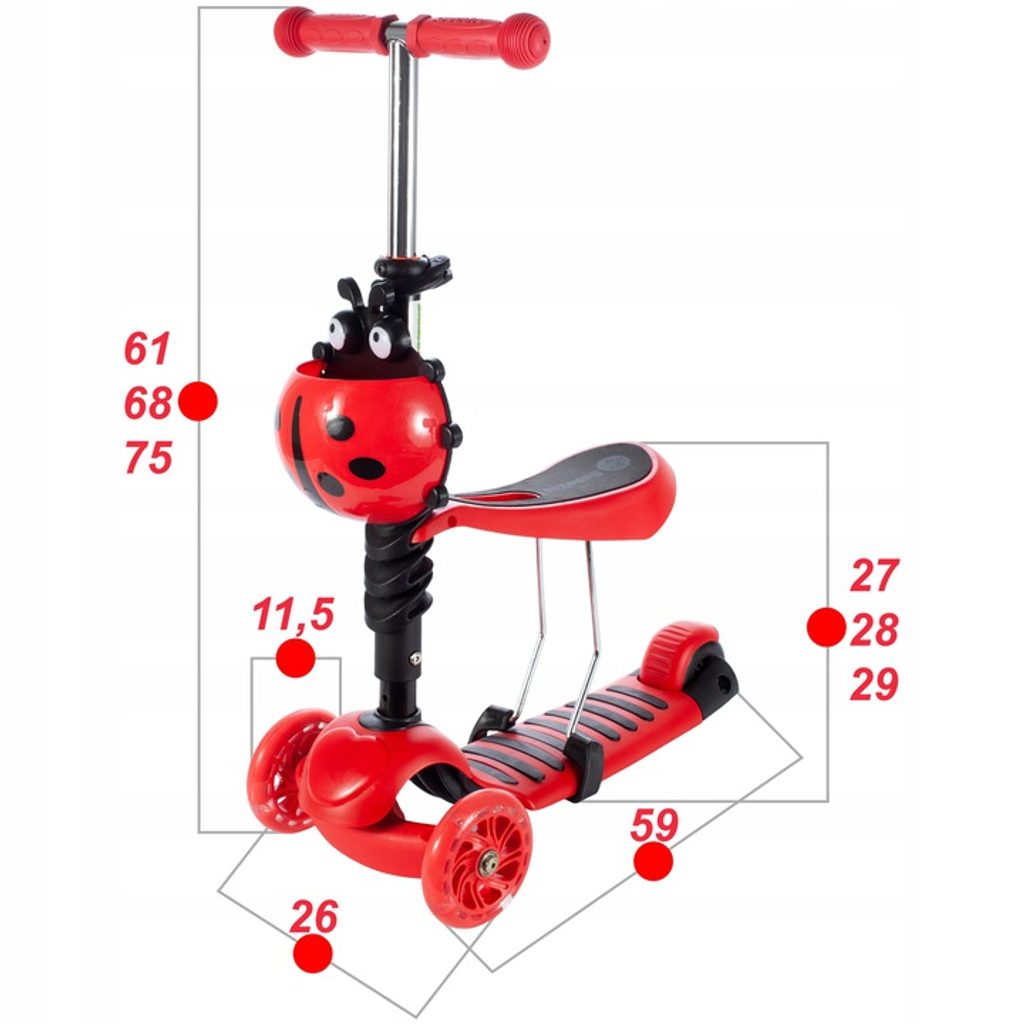 Dětská balanční koloběžka se svítícími koly a demontovatelným sedátkem. Koloběžku lze tak využít i jako odrážedlo. Je osazena tichými protiskluzovými koly s LED světly, které svítí během jízdy. Zatáčení probíhá na principu pohybu těla - nakláněním. Řídítka mají nastavitelnou výšku a protiskluzovou úpravu rukojeťí. V zadní části je umístěn blatník, který slouží jako nožní brzda. Koloběžka je určena pro děti od 3 let věku a 25 kg hmotnosti.