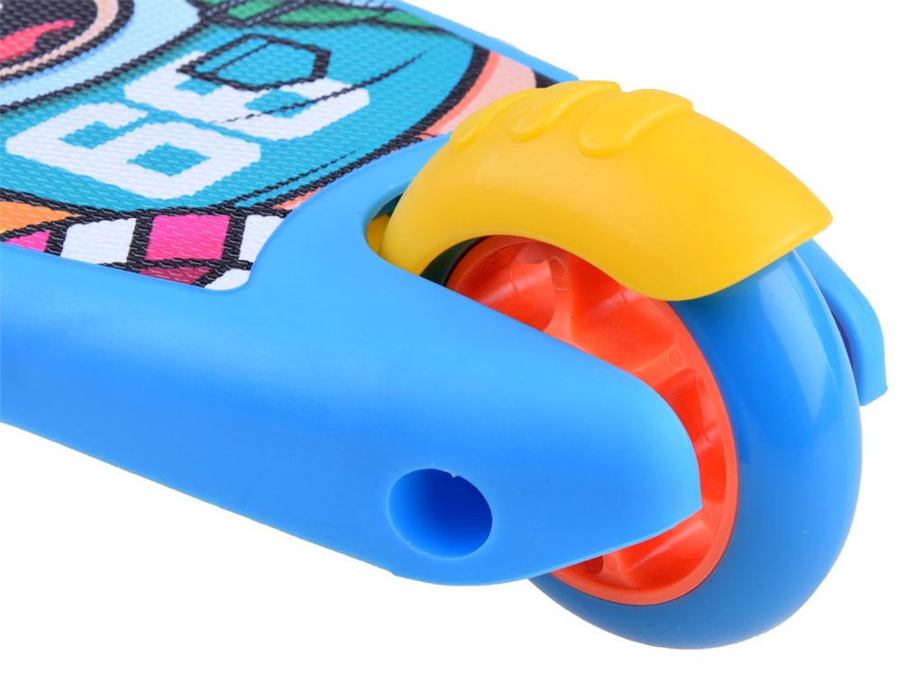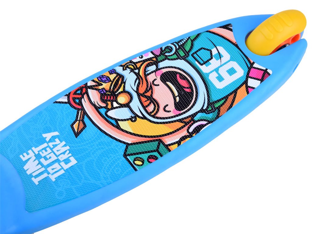 Dětská balanční koloběžka Crazy Scooter se svítícími koly. Je osazena tichými protiskluzovými koly s LED světly, které svítí během jízdy. Řídítka mají nastavitelnou výšku ve čtyřech polohách. Zatáčení probíhá na principu pohybu těla - nakláněním. V zadní části je umístěn blatník, který slouží jako nožní brzda. Koloběžka je určena pro děti od 3 let věku a 40 kg hmotnosti.