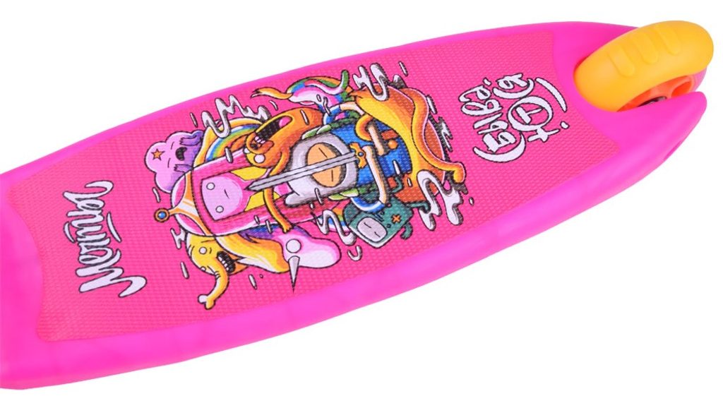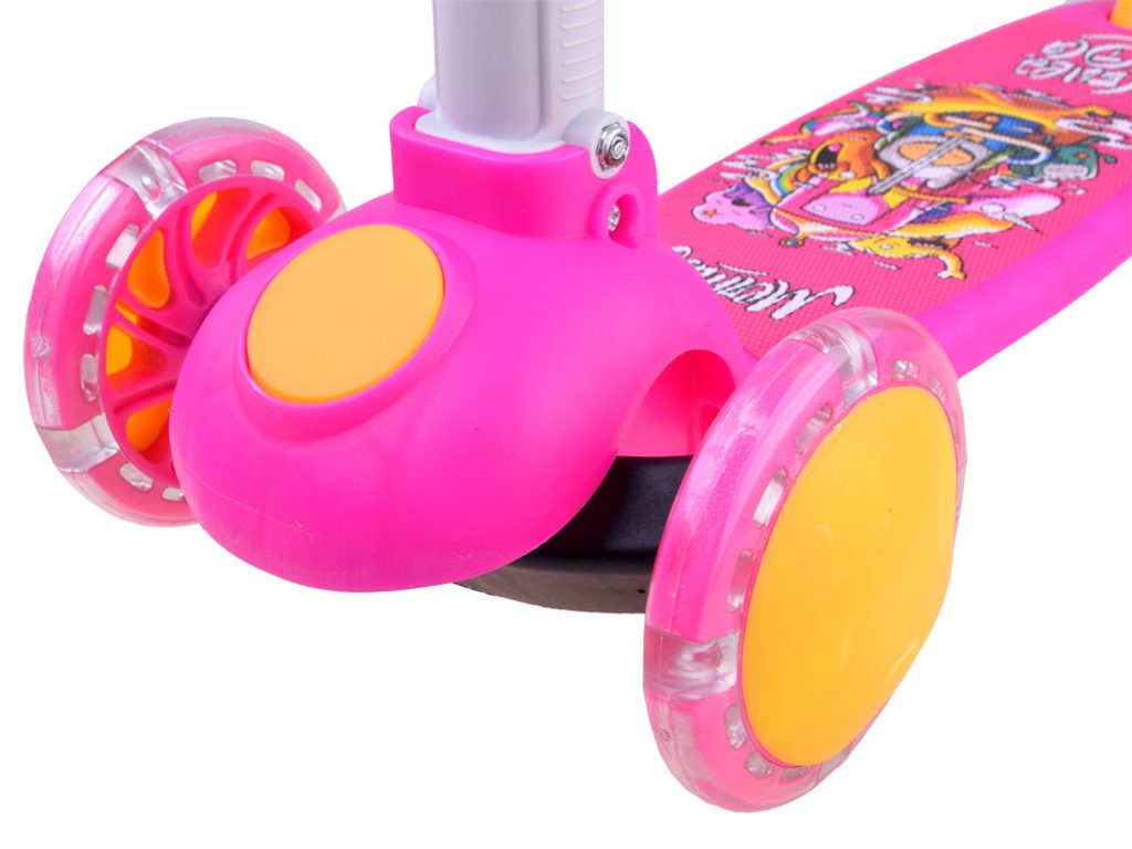Dětská balanční koloběžka Crazy Scooter se svítícími koly. Je osazena tichými protiskluzovými koly s LED světly, které svítí během jízdy. Řídítka mají nastavitelnou výšku ve čtyřech polohách. Zatáčení probíhá na principu pohybu těla - nakláněním. V zadní části je umístěn blatník, který slouží jako nožní brzda. Koloběžka je určena pro děti od 3 let věku a 40 kg hmotnosti.