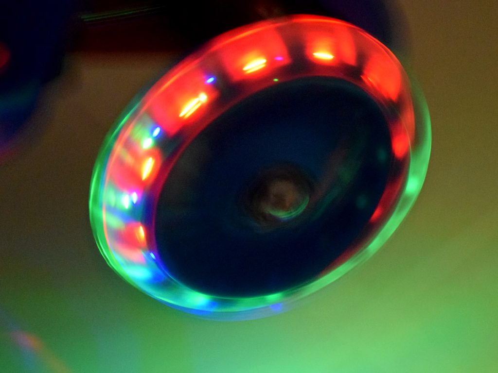 • tichá kaučuková kolečka s LED světly, které svítí během jízdy