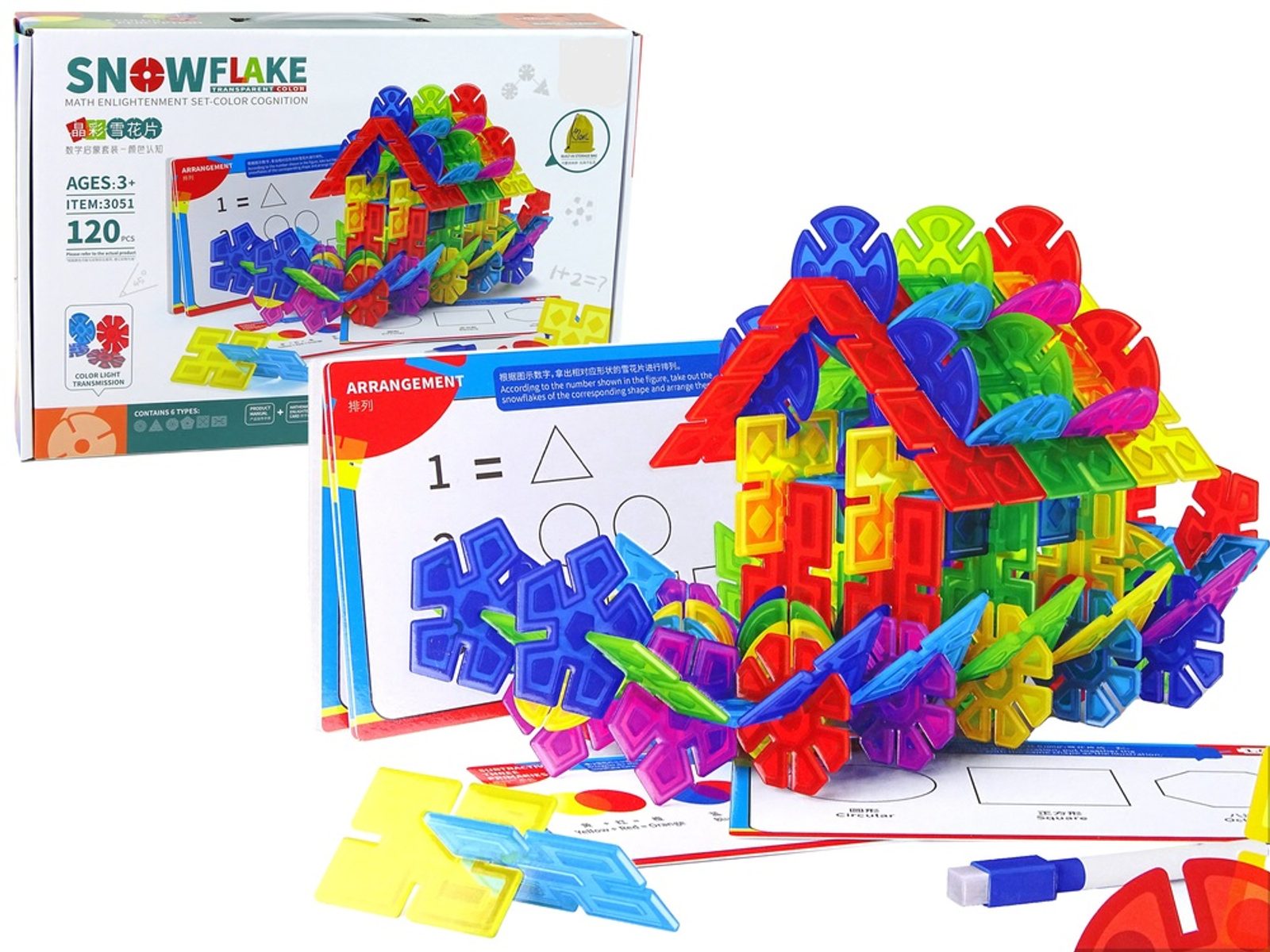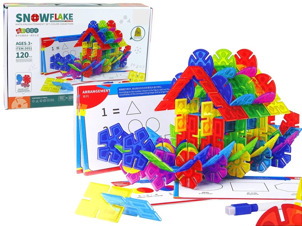 Barevná konstrukční stavebnice Snowflakes je ideální hračkou pro všechny malé konstruktéry. Skládá se z celkem 120 součástí ve tvaru různých sněhových vloček. Všechny součásti se velmi snadno propojují a lze z nich vytvořit velké množství plošných a 3D tvarů. Hračka je určena pro děti od 3 let věku.