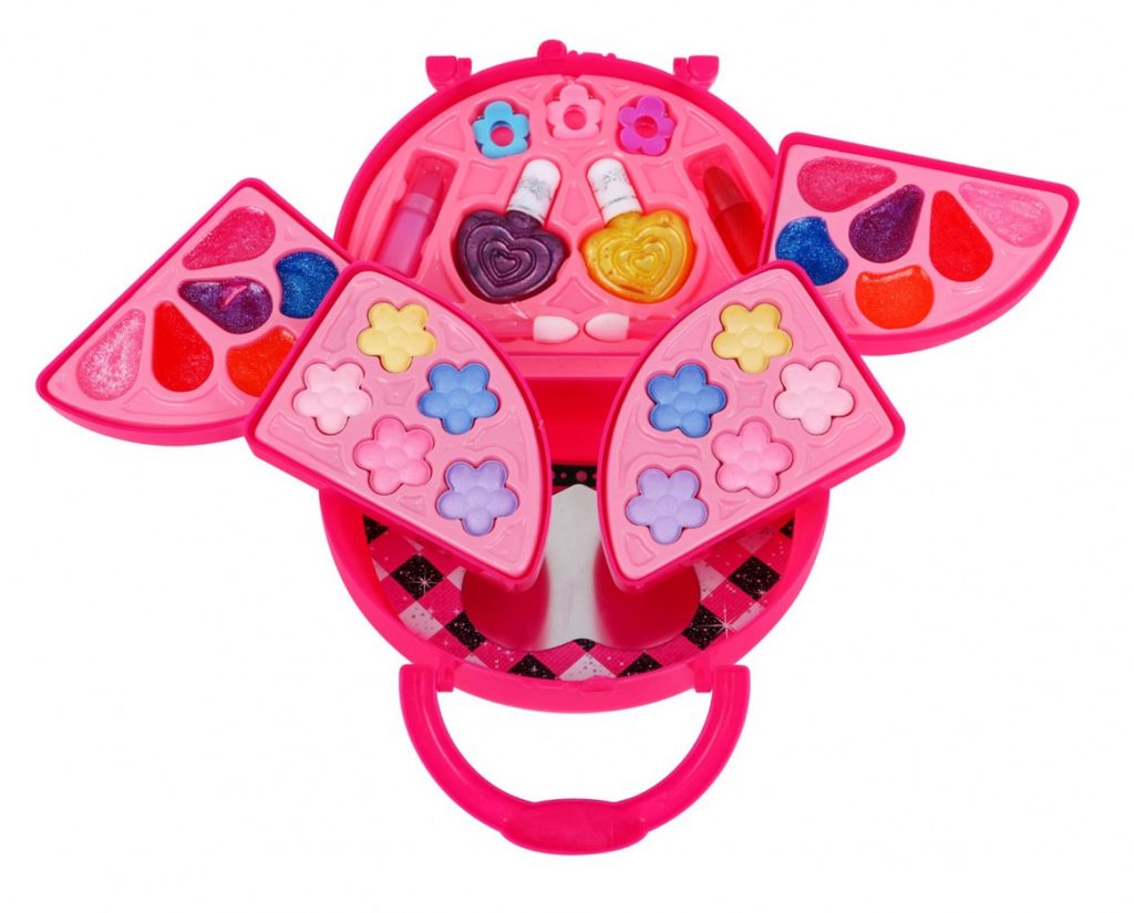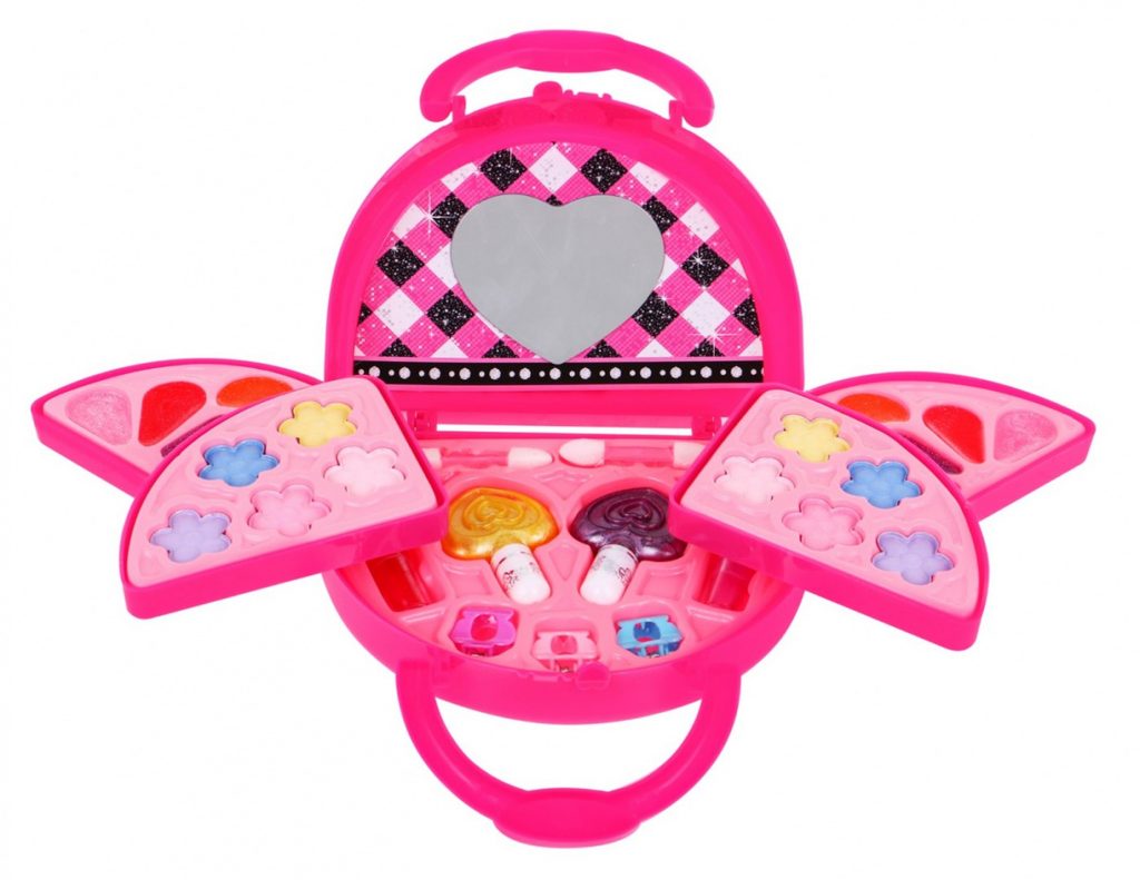 Kompletní sada dětského líčení v kabelce je ideální hračkou pro každou malou princeznu, která zde najde vše potřebné pro líčení. Kabelku lze jednoduše složit a přenášet. Součástí setu jsou rtěnky, lesky na rty, oční stíny, štětečky a zrcátko. Vše je vyrobeno z bezpečných materiálů. Make-up lze jednoduše odstranit vatovými tampónky namočenými v mýdlovém roztoku. Hračka je vyrobená z plastu v pestrobarevném provedení a určena pro děti od 5 let.