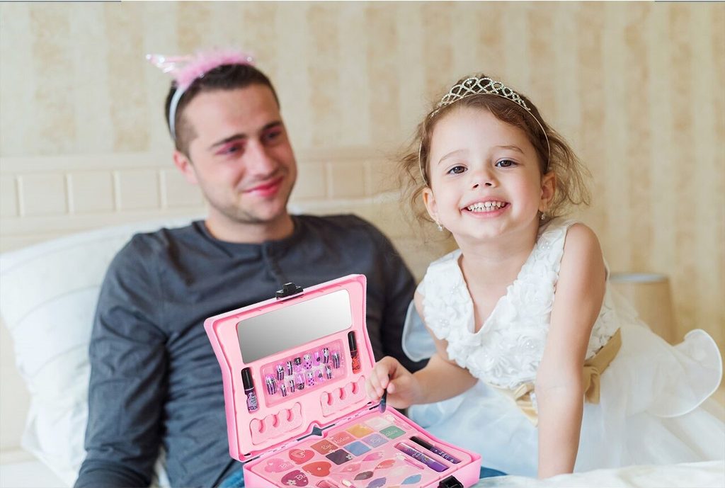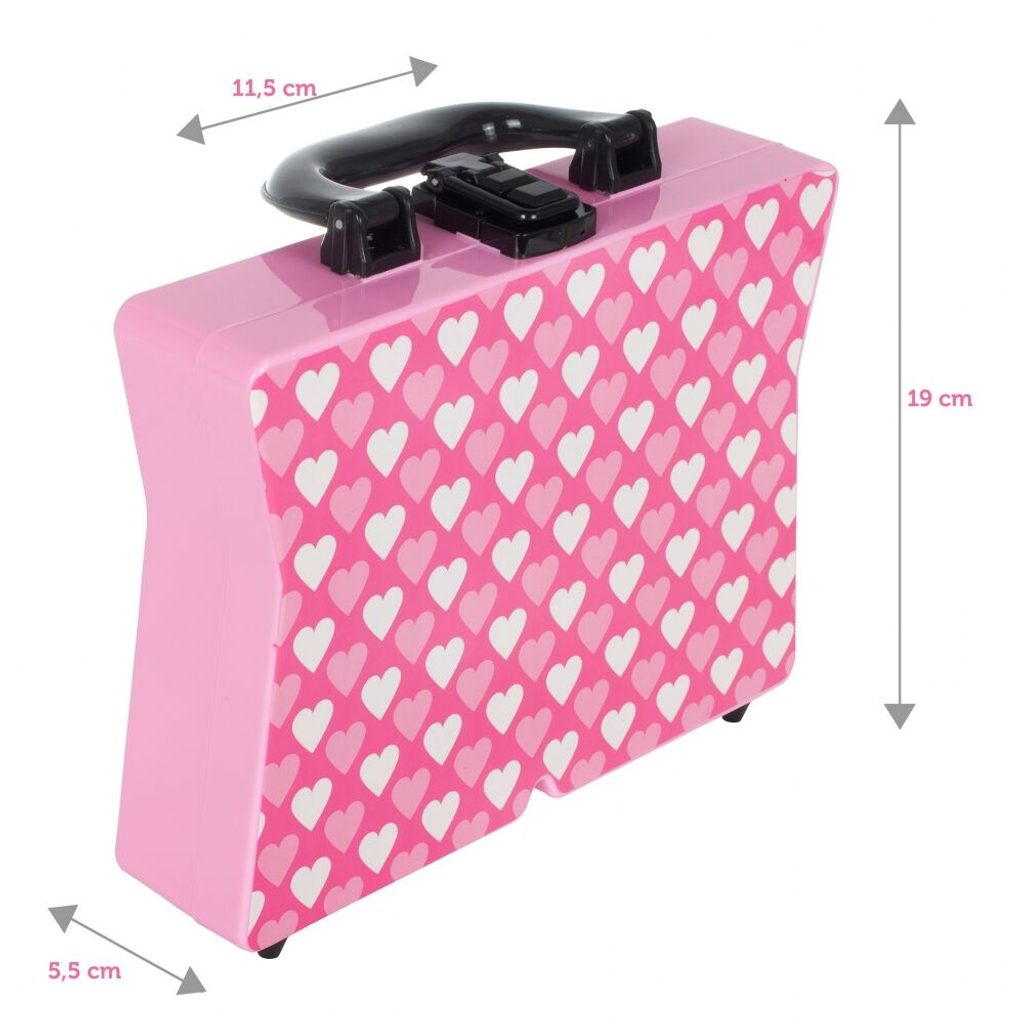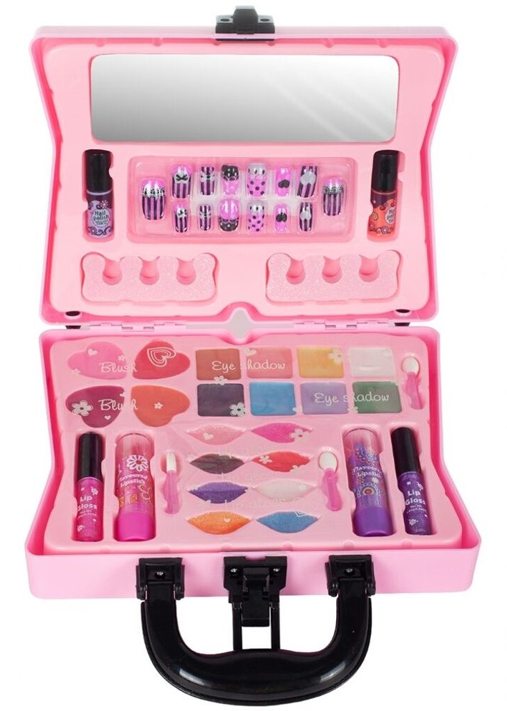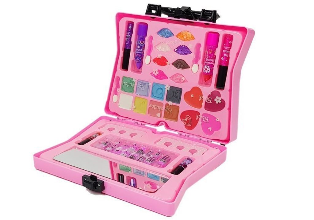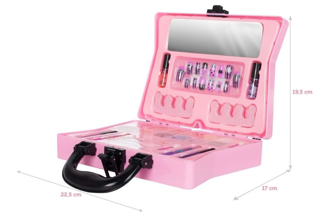 Kompletní sada dětského líčení je ideální hračkou pro každou malou princeznu, která zde najde vše potřebné pro líčení. Rozkládací kufřík s přihrádkami lze jednoduše složit a přenášet. Součástí setu jsou lesky na rty, oční stíny, tvářenky, umělé nehty, oddělovače a zrcátko. Vše je vyrobeno z bezpečných materiálů. Make-up lze jednoduše odstranit vatovými tampónky namočenými v mýdlovém roztoku. Hračka je vyrobená z plastu v pestrobarevném provedení a určena pro děti od 5 let.