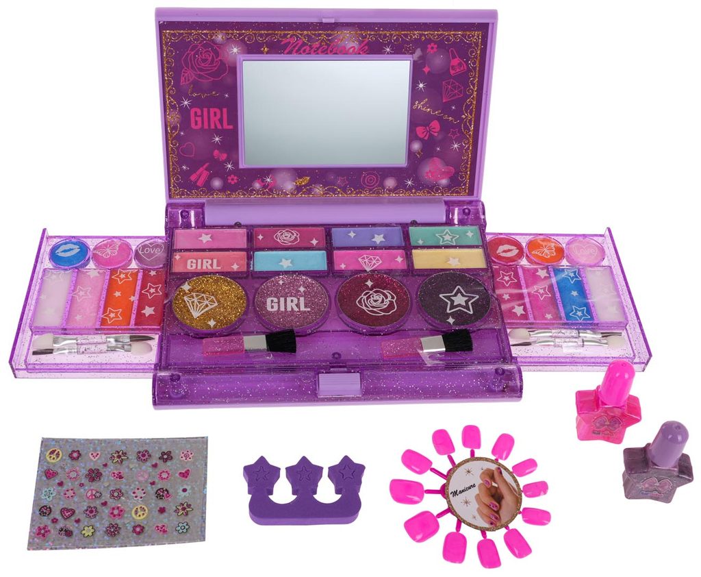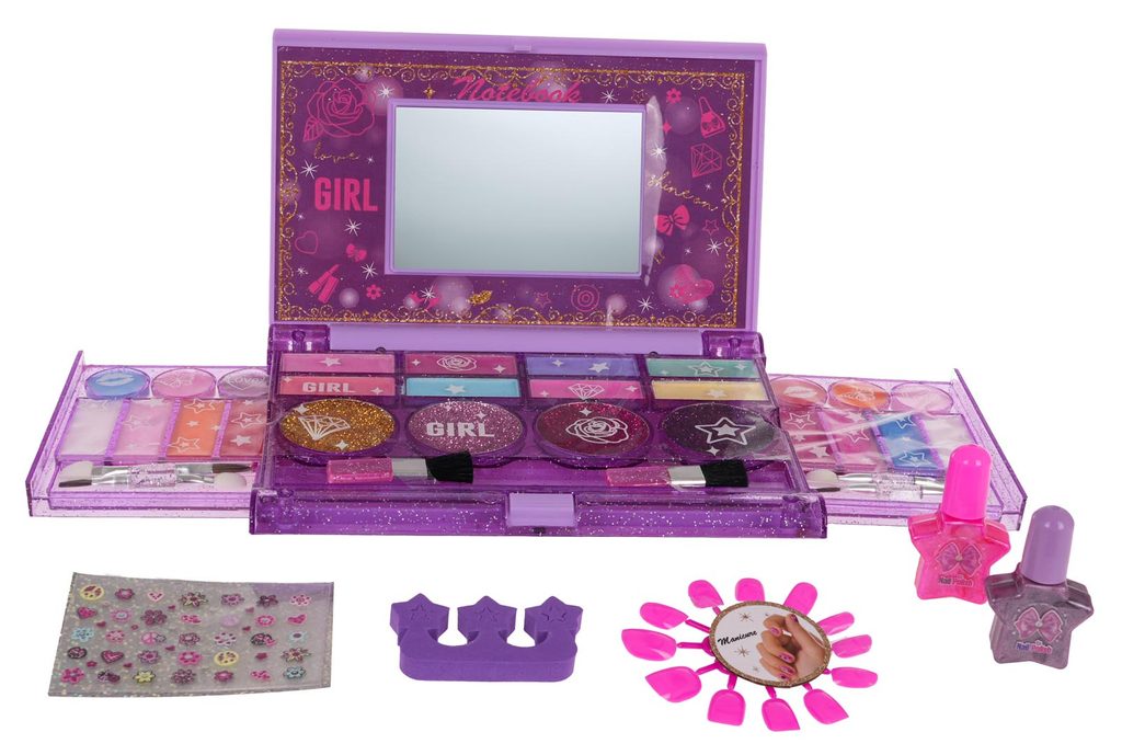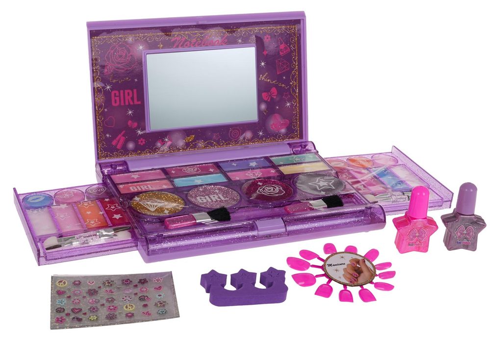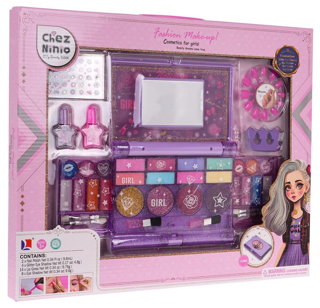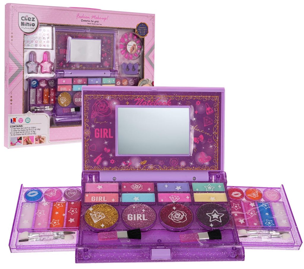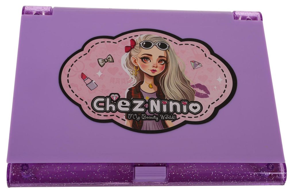 Kompletní sada dětského líčení v kazetě se zrcadlemNinio Makeup je ideální hračkou pro každou malou princeznu, která zde najde vše potřebné pro líčení. Kabelka má zrcátko a úchyt, lze ji tak jednoduše přenášet. Součástí setu jsou rtěnky, lesky na rty, oční stíny, umělé nehty a štětečky Vše je vyrobeno z bezpečných netoxických materiálů. Make-up lze jednoduše odstranit vatovými tampónky namočenými v mýdlovém roztoku. Hračka je vyrobená z plastu v pestrobarevném provedení a určena pro děti od 5 let.