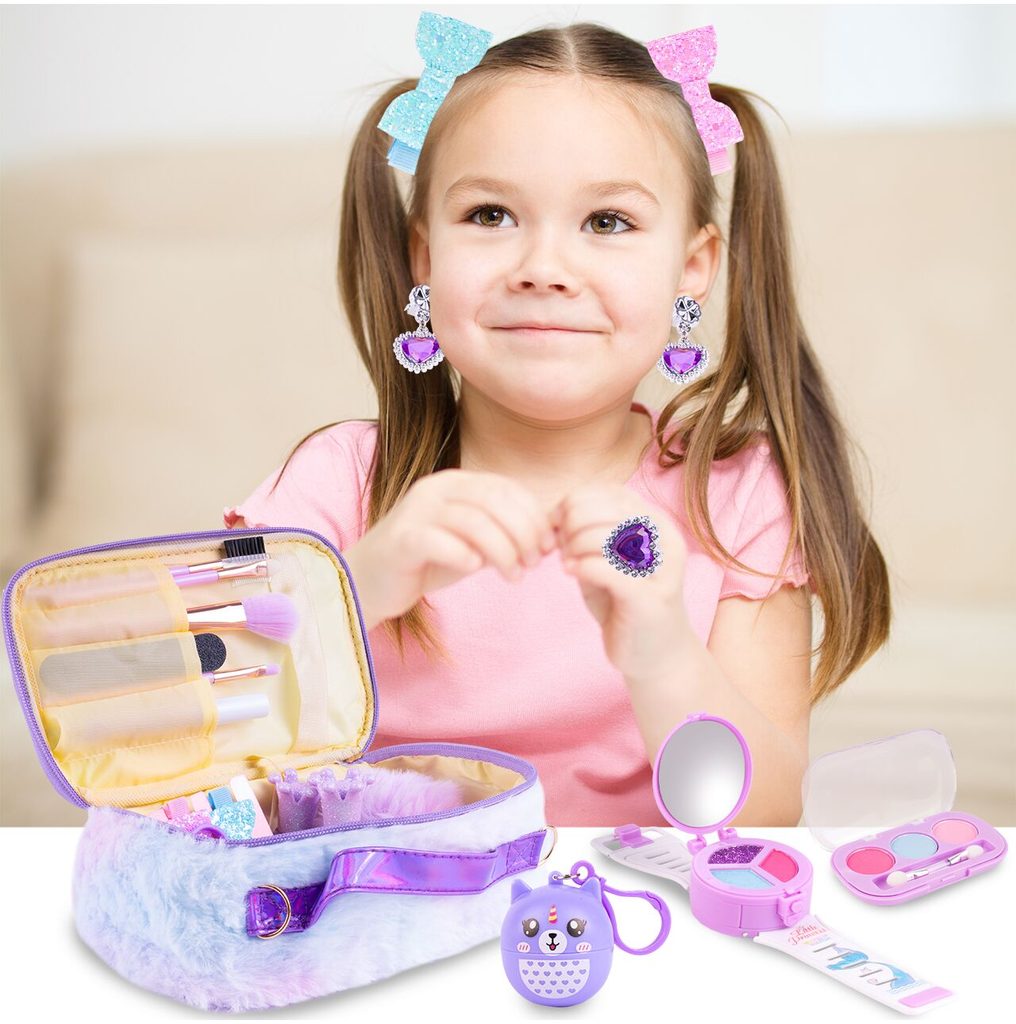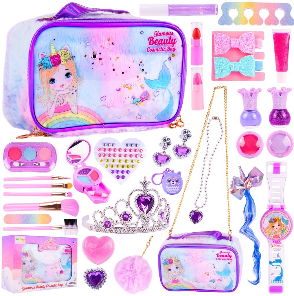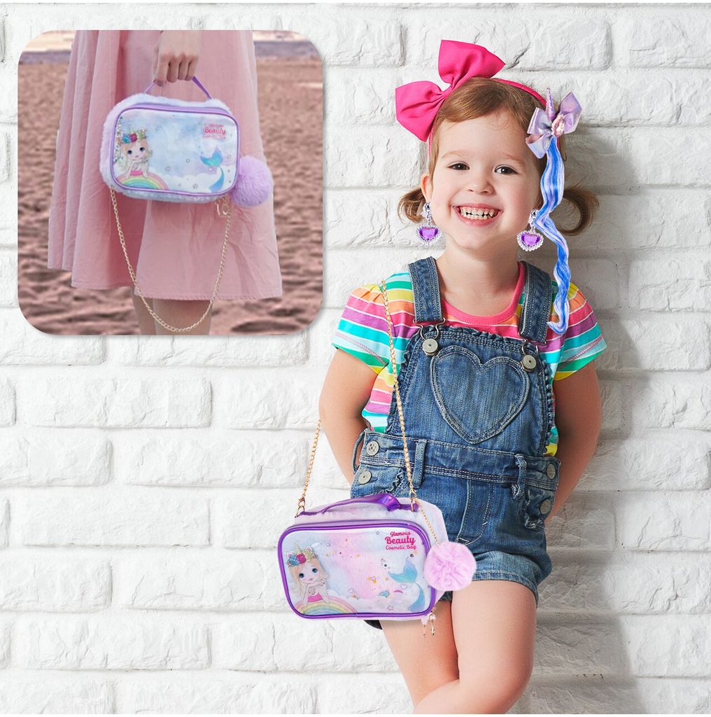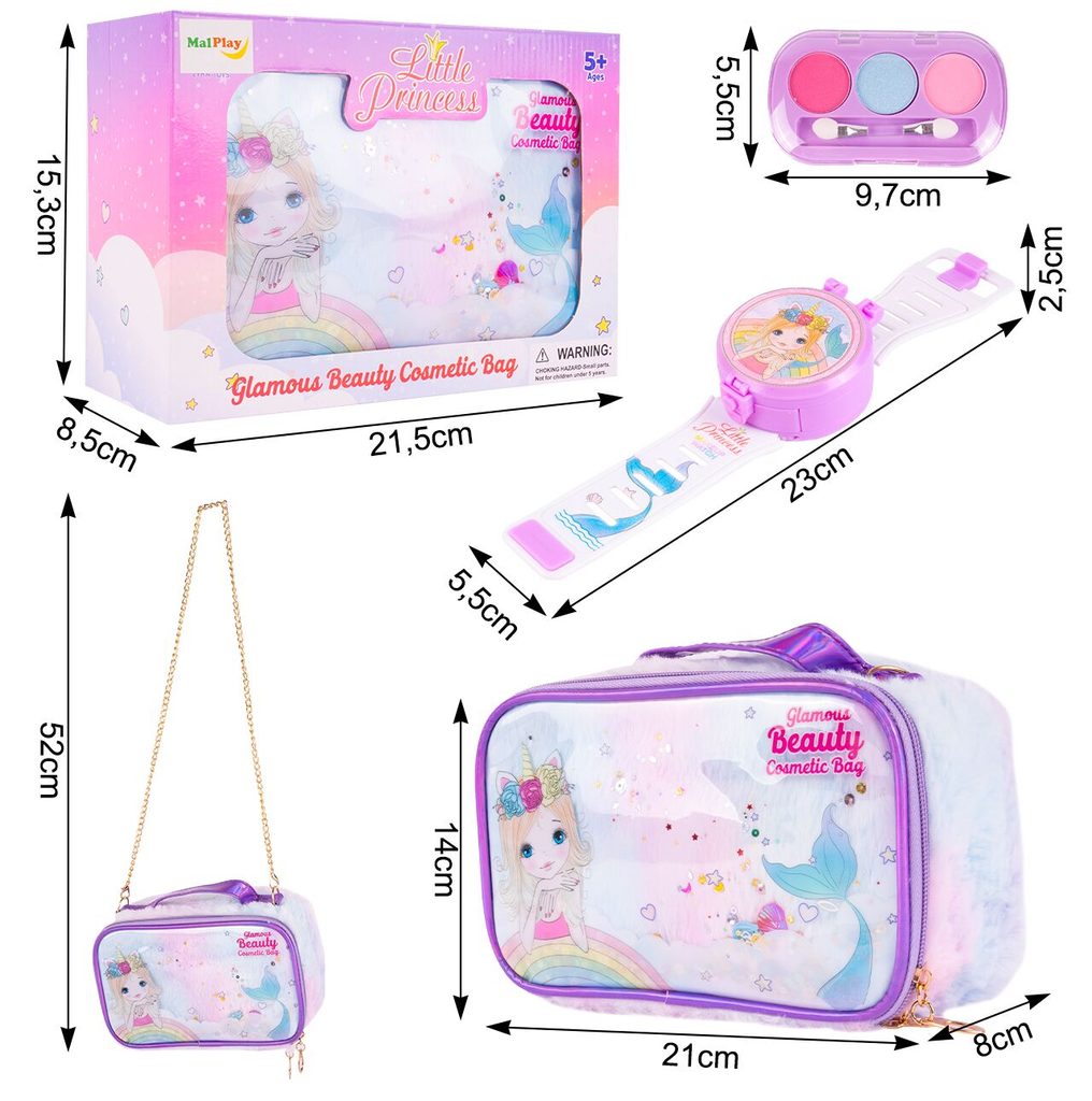 Kompletní sada dětského líčení v otevírací taštičce přes rameno Glamour Beauty je ideální hračkou pro každou malou princeznu, která zde najde vše potřebné pro líčení. Součástí setu jsou laky na nehty, rtěnky, oční stíny a mnoho dalšího příslušenství. Vše je vyrobeno z bezpečných materiálů. Make-up lze jednoduše odstranit vatovými tampónky namočenými v mýdlovém roztoku. Hračka je vyrobená z plastu v pestrobarevném provedení a určena pro děti od 3 let.