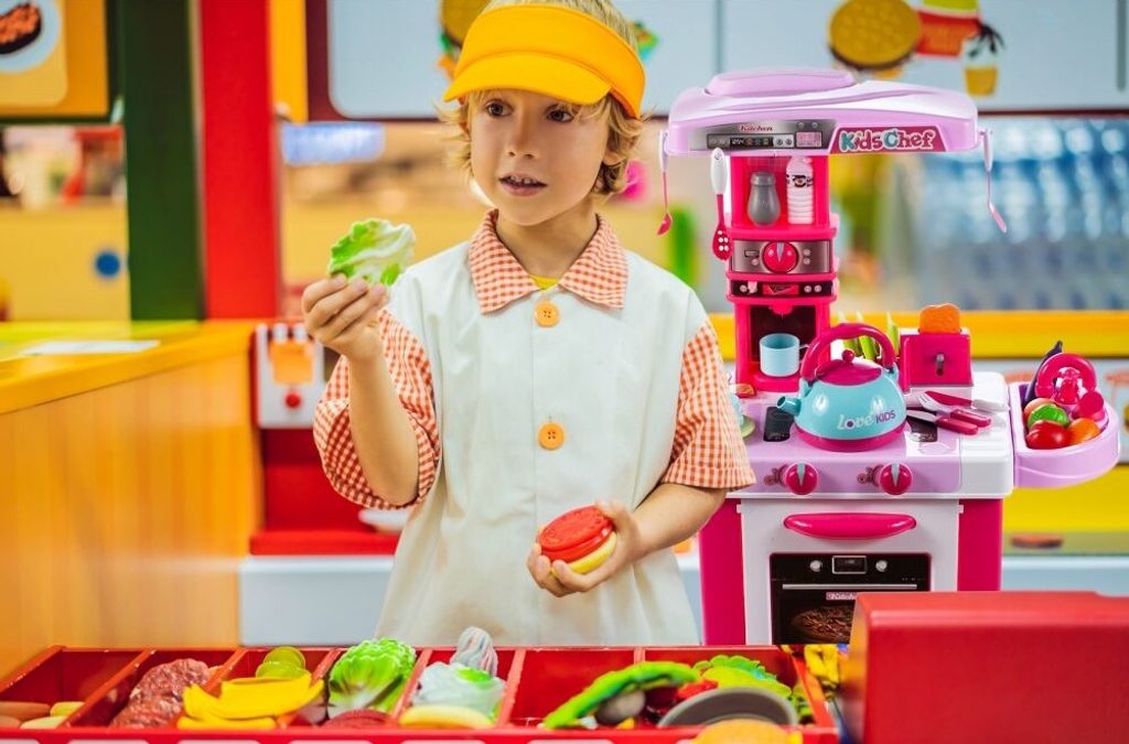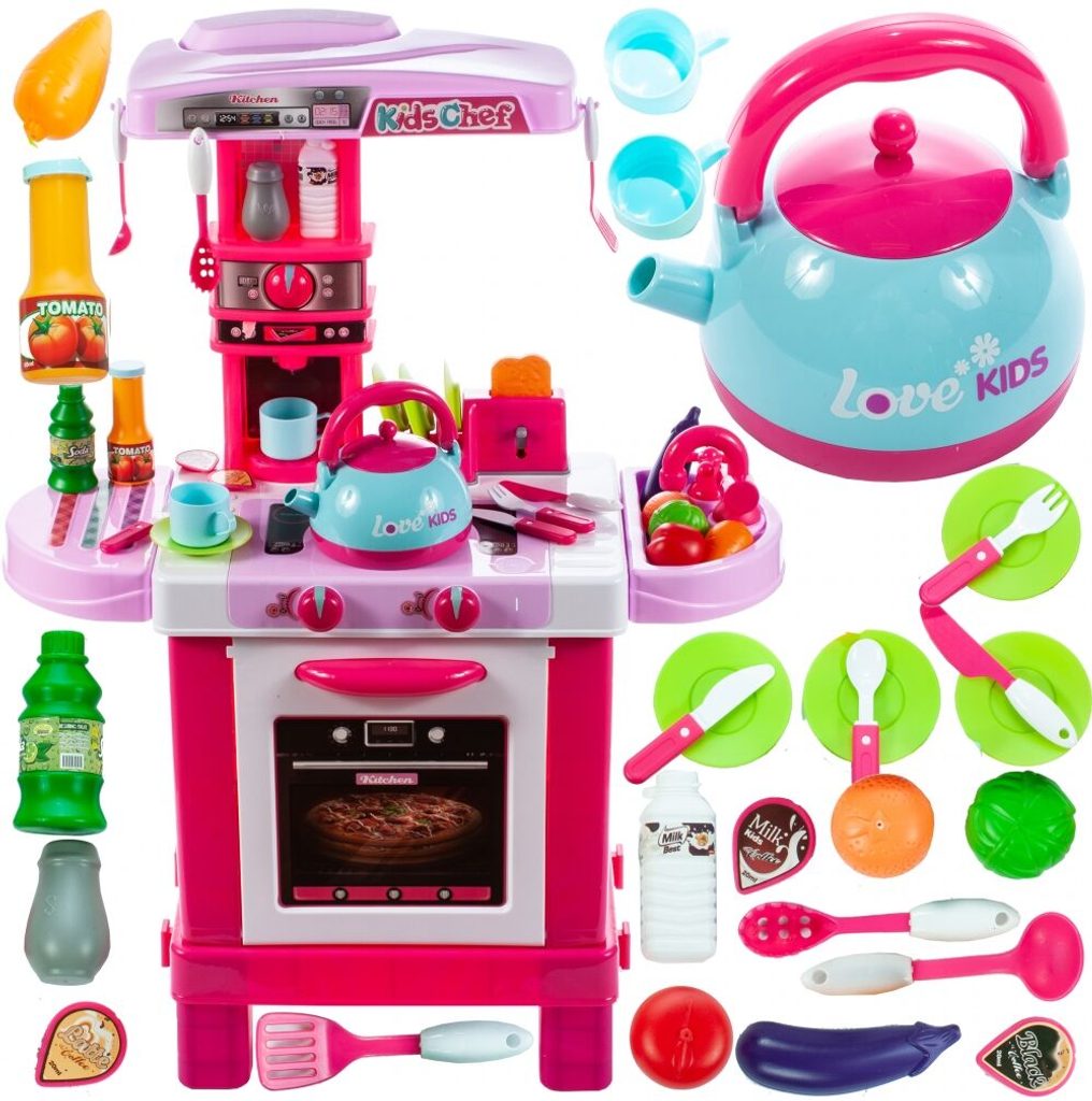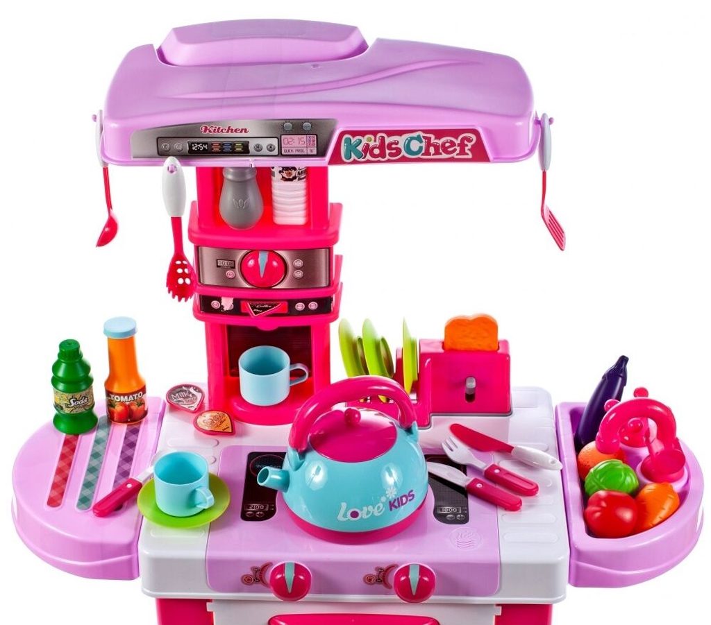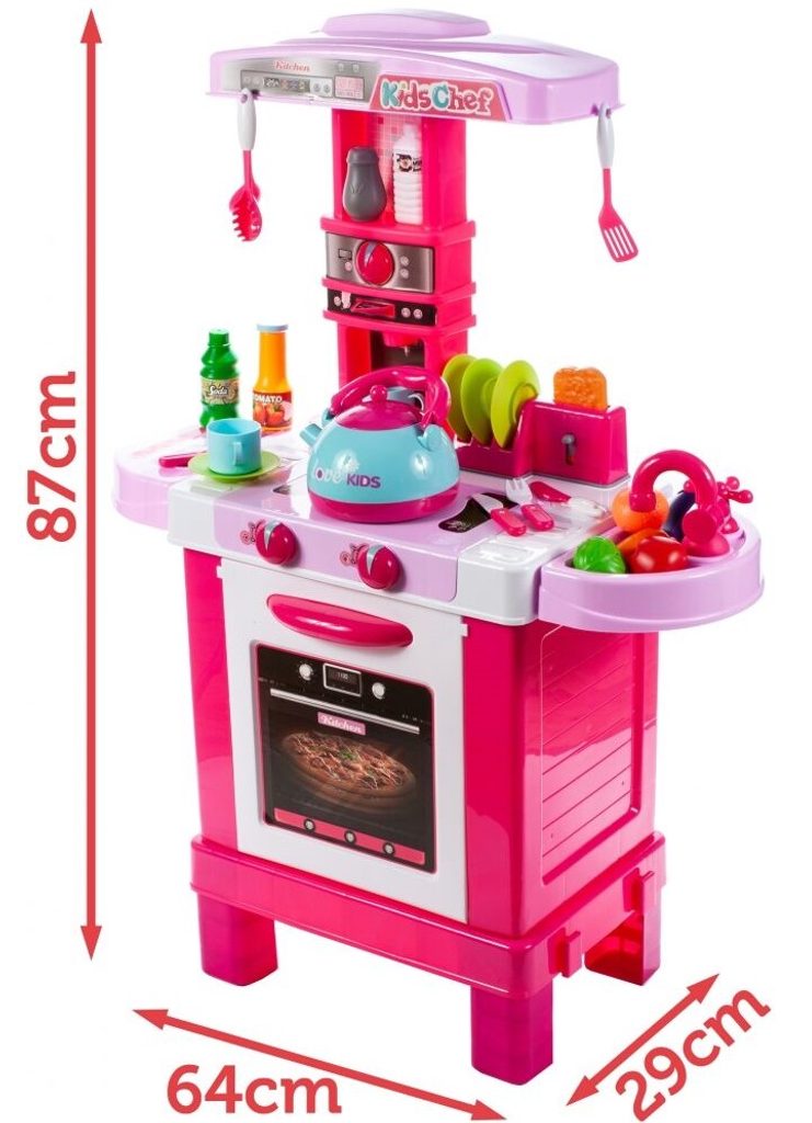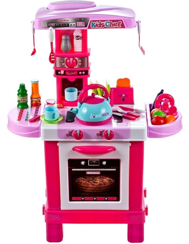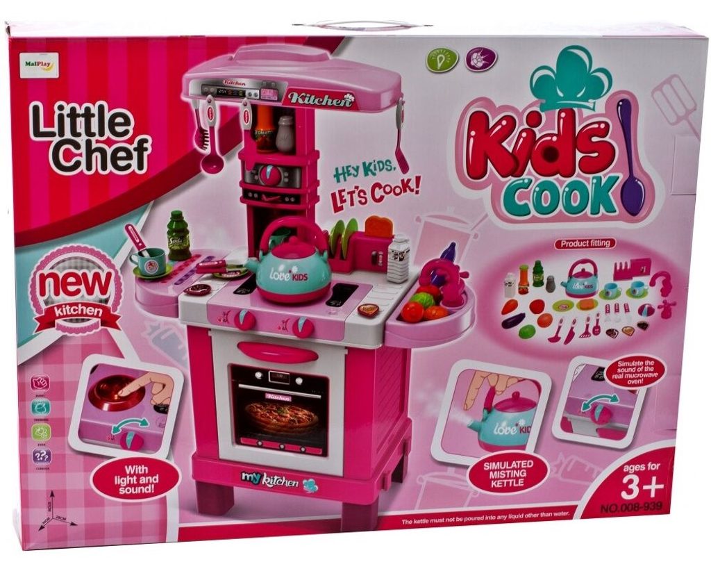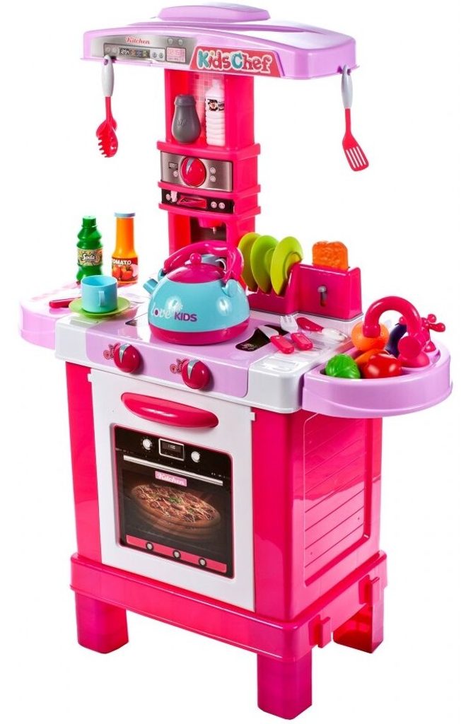Dětská kuchyňka Little Kids Chef s příslušenstvím je určena pro děti od 36 měsíců věku. Kuchyňka má velké množství příslušenství jako je toustovač, kávovar, kuchyňské nářadí, příbory, imitace potravin a zeleniny, hrnečky a mnoho dalších. Čajová konvice obsažená v sadě dokonale napodobuje skutečnou. Stačí nalít vodu do konvice, postavit ji na sporák a otočit knoflíkem. Po chvíli začne z konvice vycházet pára. Pod sporákem je umístěna otevírací trouba. Je vyrobena z kvalitního plastu v pestrobarevném provedení.