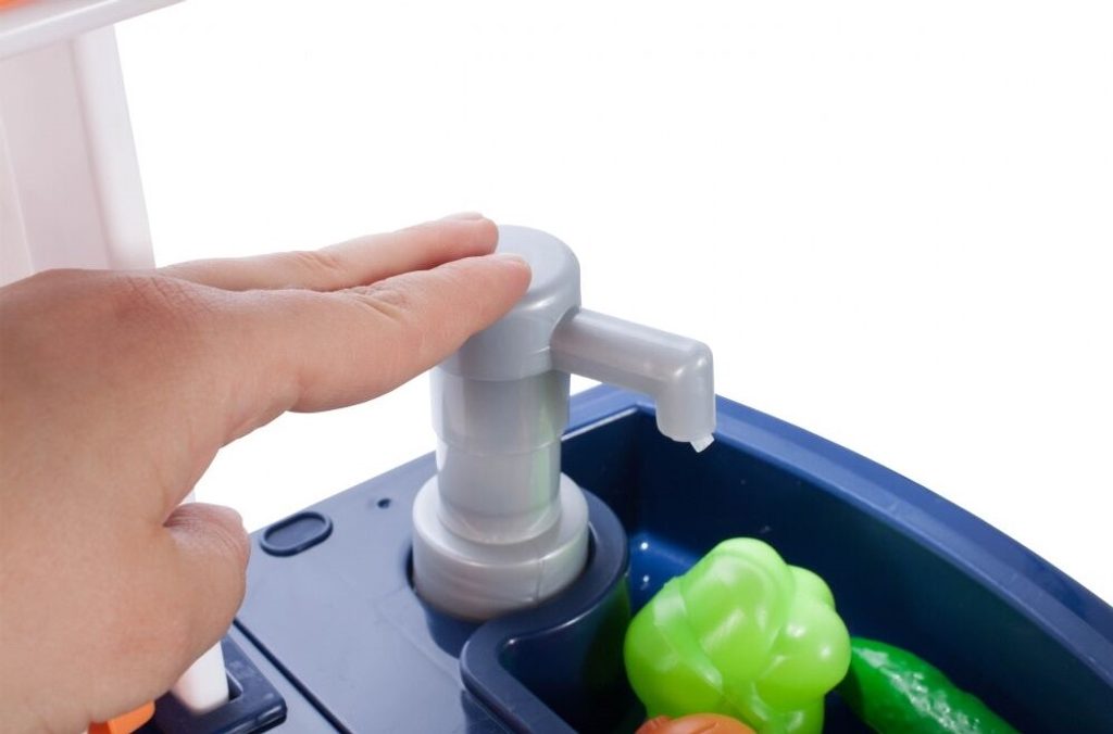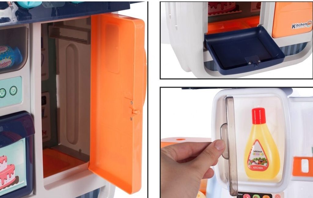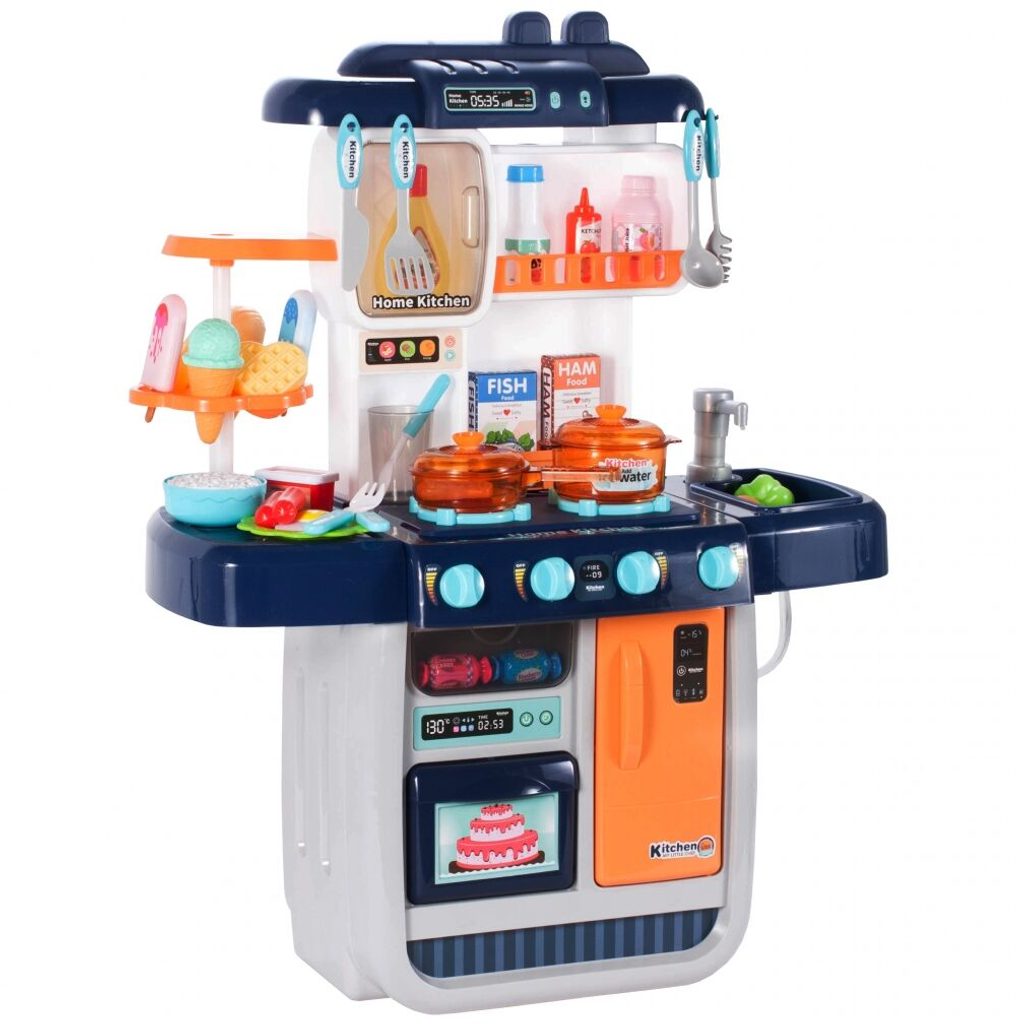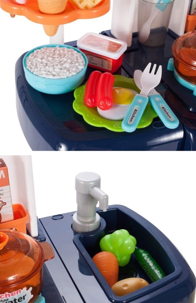 Interaktivní dětská kuchyňka Home Kitchen pro nejmenší děti se studenou párou a tekoucí vodou je určena pro děti od 36 měsíců věku. Je vybavena příslušenstvím jako jsou příbory, hrnce s poklicí, imitace potravin a mnoho dalších. Levý hořák způsobuje po nalití malého množství vody efekt studené páry takže vaření bude opravdu jako skutečné. Po nalití vody do dřezu a zmáčknutí speciálního tlačítka začne téct voda a děti mohou mýt nádobí jako v reálné kuchyni. Vaše dítě se určitě s touto velkou kuchyňkou nudit nebude. Vpředu je umístěna otevírací lednice a trouba. Je vyrobena z plastu v pestrobarevném provedení.