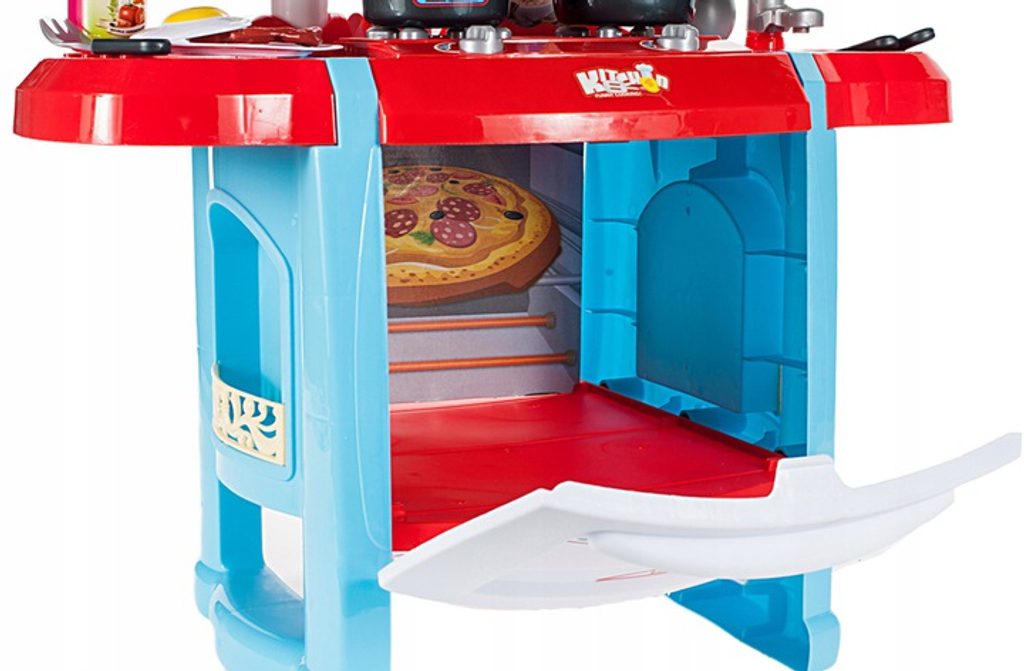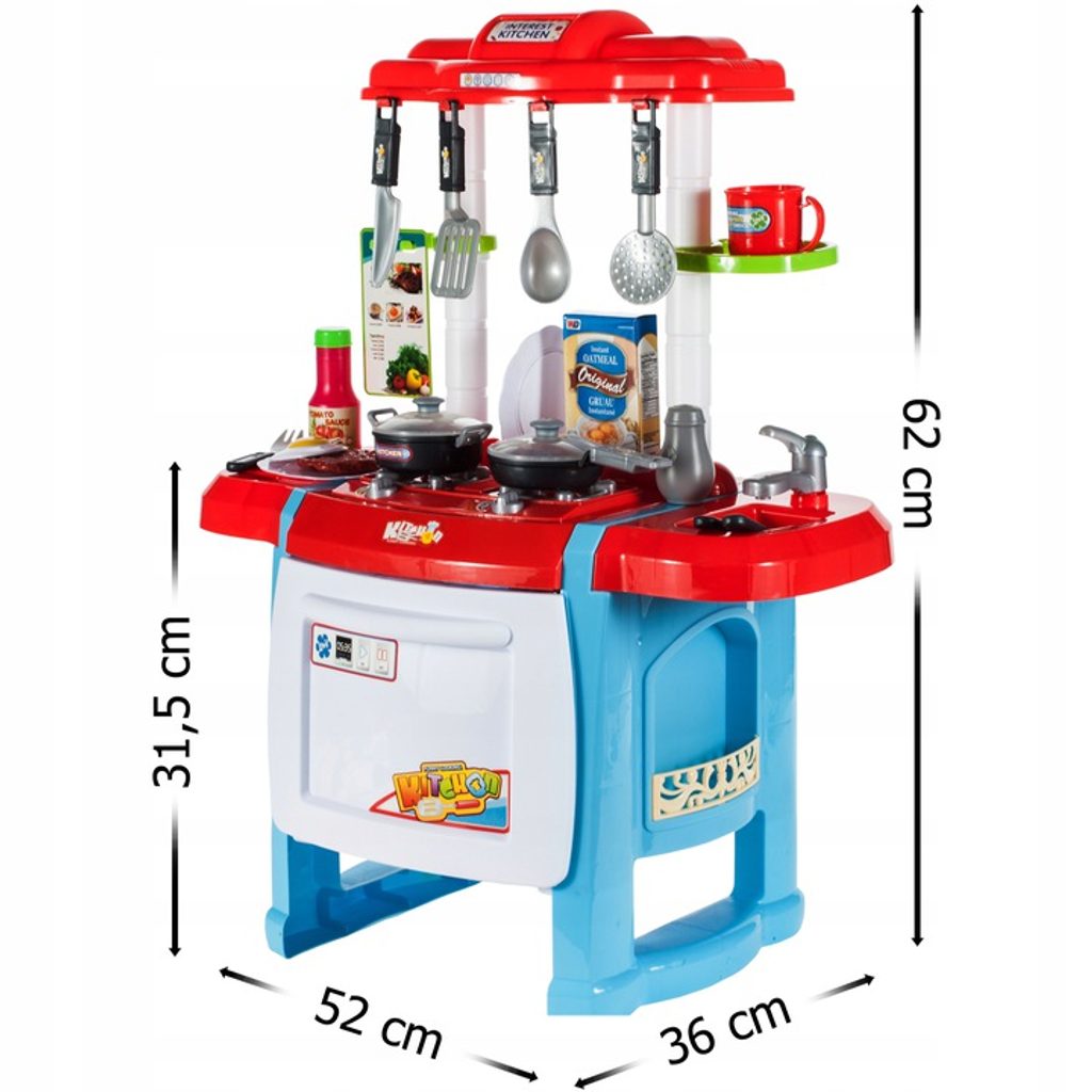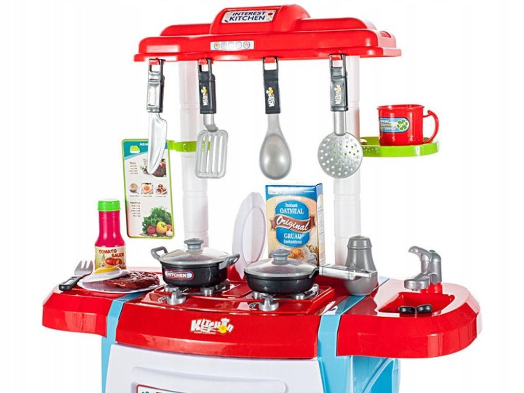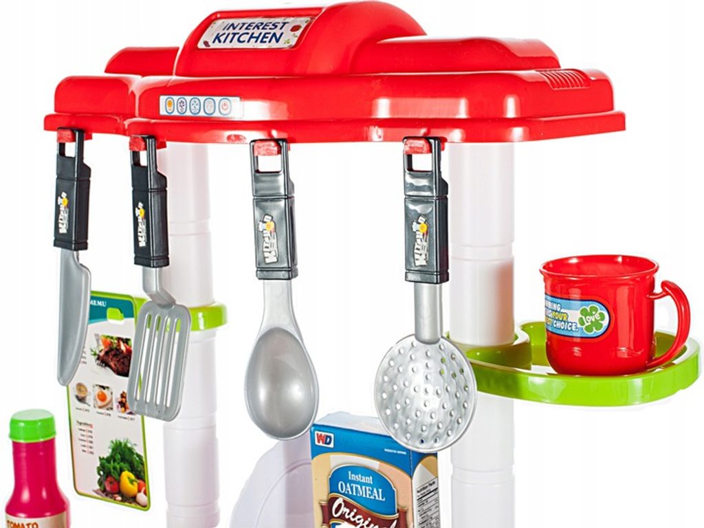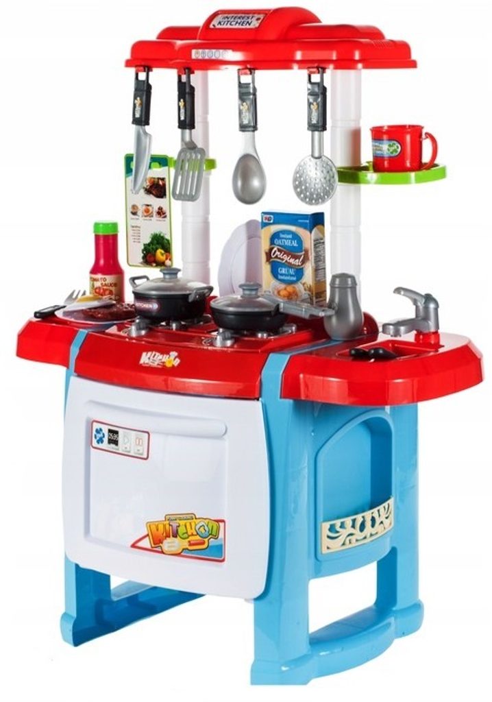 Interaktivní dětská kuchyňka Interest Kitchen se zvukovými a světelnými efekty je určena pro děti od 3 let věku. Je vybavena příslušenstvím  jako jsou příbory, talíře, hrnce, imitace potravin a mnoho dalších. Vaše dítě se určitě s touto velkou kuchyňkou nudit nebude. Trouba kuchyňky je otevírací. Po otočení vypínačů se rozsvítí hořáky a spustí zvuk napodobující smažení a bublání. Je vyrobena z plastu v pestrobarevném provedení.