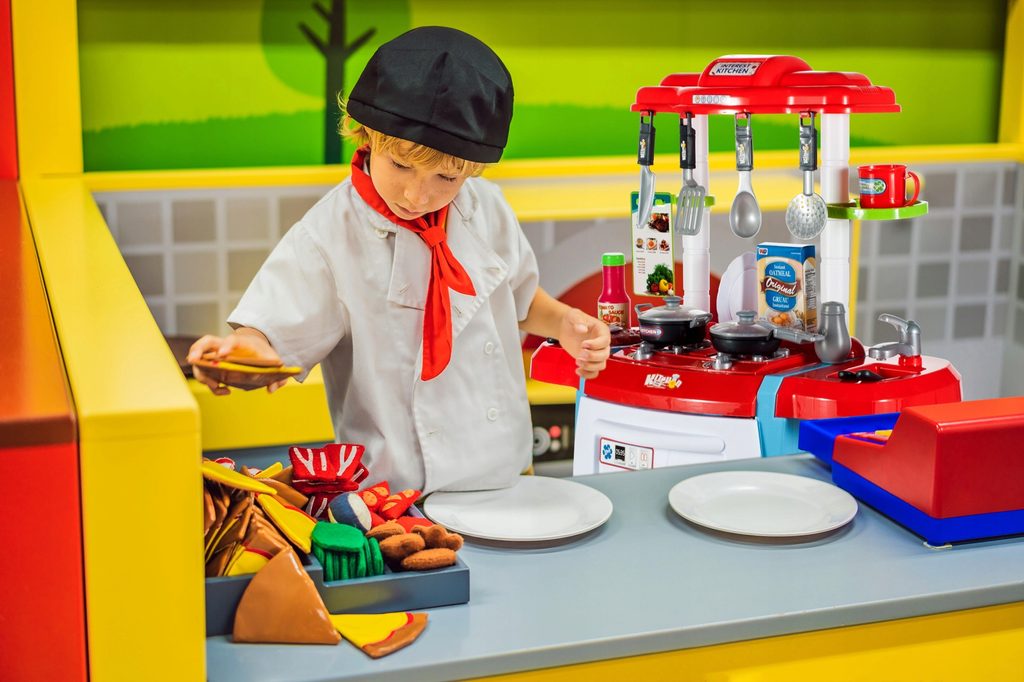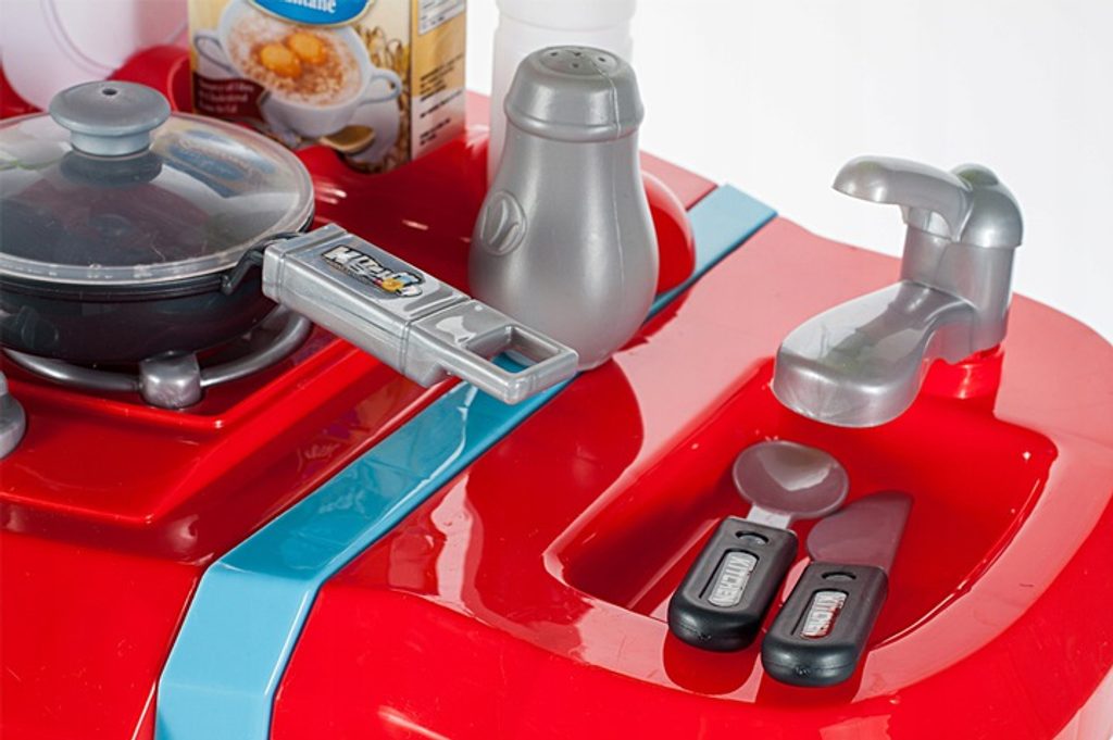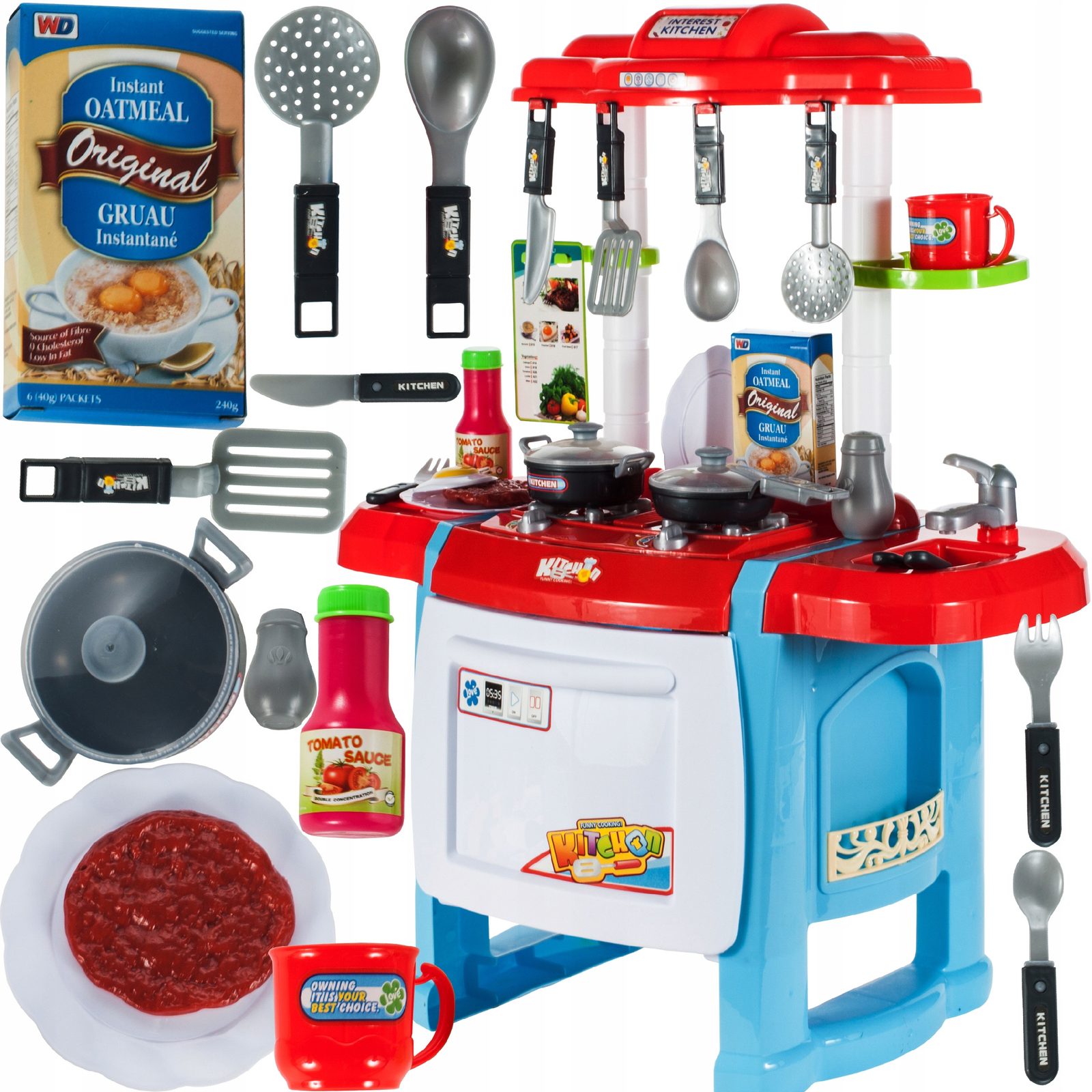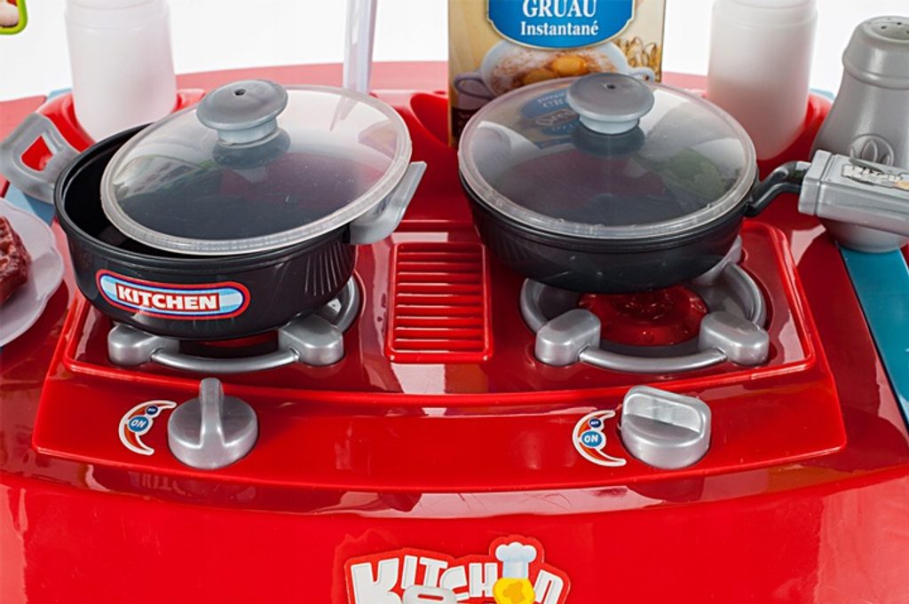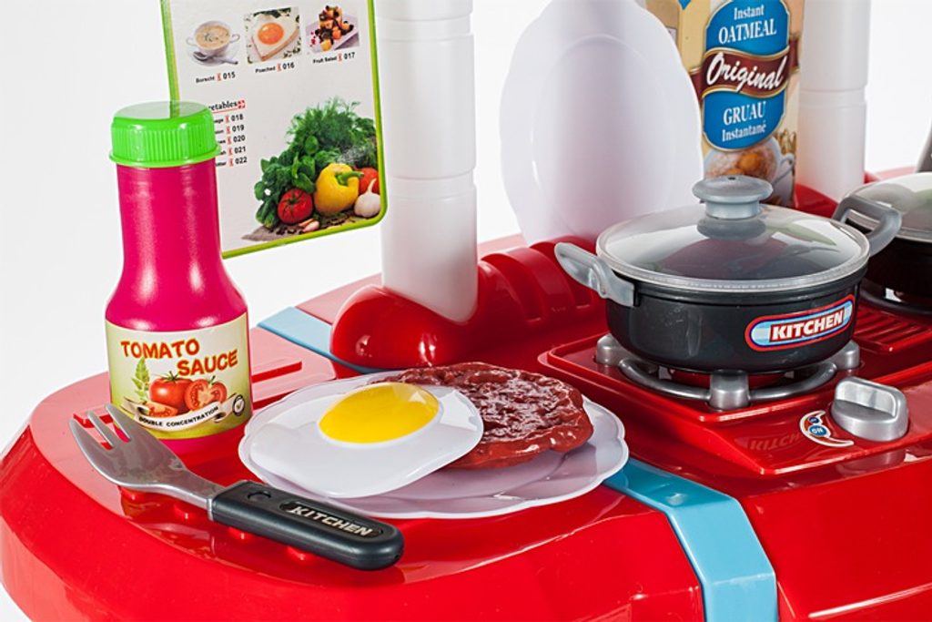 Interaktivní dětská kuchyňka Interest Kitchen se zvukovými a světelnými efekty je určena pro děti od 3 let věku. Je vybavena příslušenstvím  jako jsou příbory, talíře, hrnce, imitace potravin a mnoho dalších. Vaše dítě se určitě s touto velkou kuchyňkou nudit nebude. Trouba kuchyňky je otevírací. Po otočení vypínačů se rozsvítí hořáky a spustí zvuk napodobující smažení a bublání. Je vyrobena z plastu v pestrobarevném provedení.