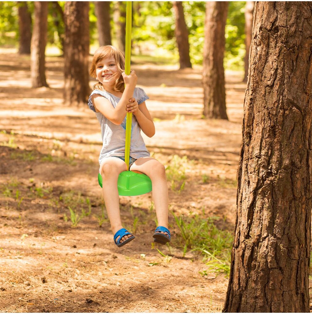 Dětská kulatá houpačka King Sport je určena pro děti od 3 let věku. Sedátko  je vyrobeno z protiskluzového materiálu a je odolné proti povětrnostním vlivům. Délku závěsu lze upravit až do 210 cm. Nosnost houpačky je 25 kg.