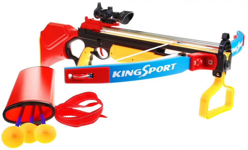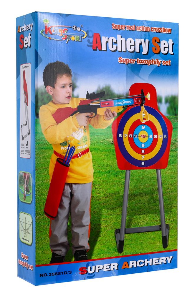Dětská kuše Sports King se 3 šípy je skvělou zábavou pro děti i dospělé. Dětská kuše je velmi snadno použitelná, stačí umístit šíp dovnitř, napnout vlasec, namířit a vystřelit. Sada ja vybavena velkým terčem na stojanu. Výška terče se dá nastavit. Hra s kuší učí přesnosti a soustředění, je to také skvělý trénink pro svaly ramen a zad.