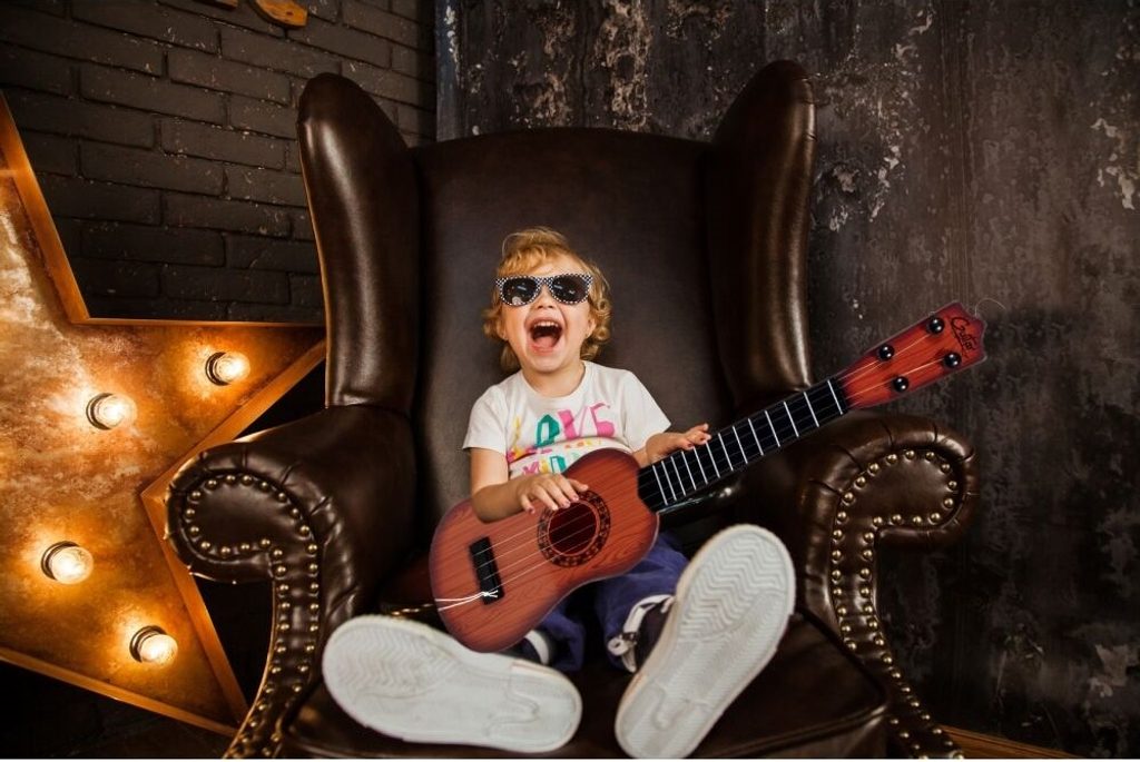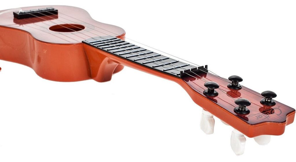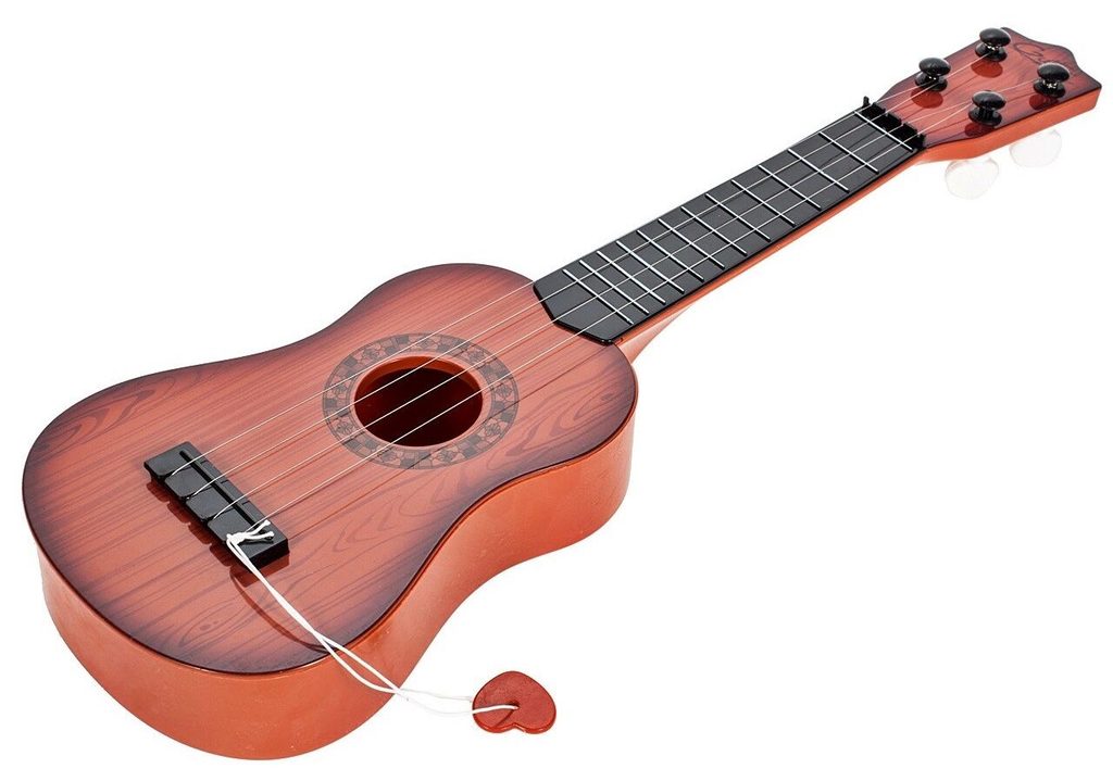 Dětská kytara  pro nejmenší Party Guitar je reálnou kopií kytary pro dospělé a je ideální hračkou pro nauku hry na tento hudební nástroj. Má 4 kovové struny, na krku kytary jsou potom 4 napínáky strun. Součástí balení je také trsátko. Je vyrobena z plastu a kovu v pestrobarevném provedení. Hračka je určena pro děti od 36 měsíců věku.